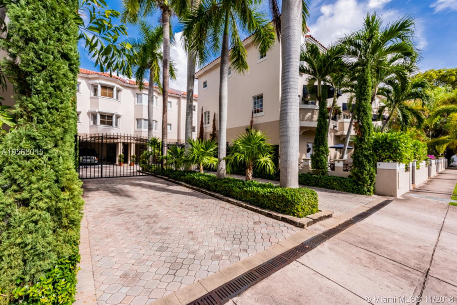 Gorgeous, Immaculate & Updated 3-Story Townhouse in Private & Gated Community, "Gables Court Townhomes" situated in the heart of Coral Gables! Features Private, back patio ideal for entertaining & BBQ. Plenty of upgrades thru-out; Tiled 1st & 2nd floors & Fairly new, laminate flooring on 3rd level. Plantation shutters all around, Nest thermostat & cameras, LED lights, Tankless water heater & New PGT Impact windows, doors & skylight. Open, Eat-in kitchen features Granite tops, Wooden cabinets & Stainless Steel Appliances. All 3 bathrooms are remodeled. Travertine floors & walls on both bathrooms upstairs. Spacious, custom closets. Private 2-car carport. Centrally located..Walking distance to Miracle Mile & Coral Gables Prep. Minutes from shopping & fine dining. Low Maint fee. Call LA.