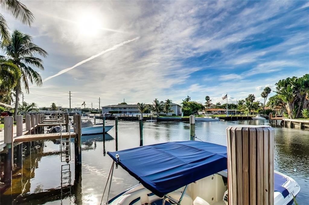 Very rare! Gated waterfront, ocean access, one fixed bridge (US1) unit overlooking wide water with 31' exclusive use boat slip off back patio. Pet friendly! Up to 2 60lb dogs! High ceilings, window treatments, gourmet kitchen with 4-seat bar, wood cabinets with granite counter tops. Very spacious 3/2.5 with full 2-car garage. Retractable awning on back patio for outdoor living area. Impact windows and doors. Heated community pool only 1 townhouse down the dock. Minutes to Fort Lauderdale and beaches. Please see virtual walk-through tour.