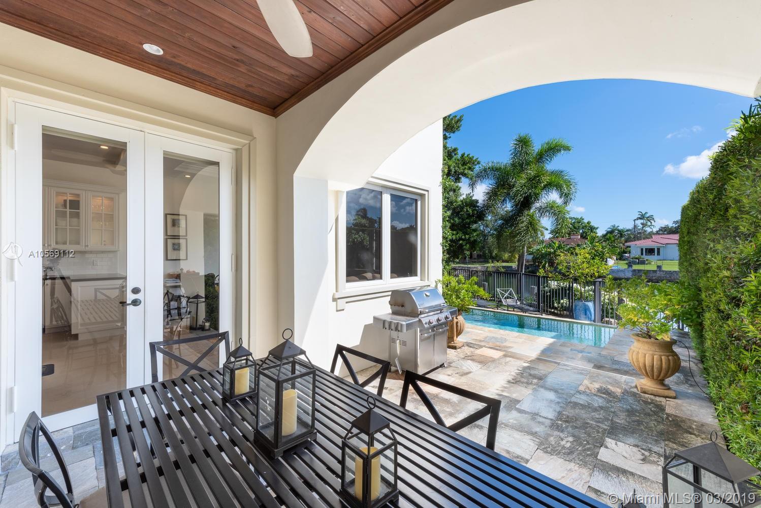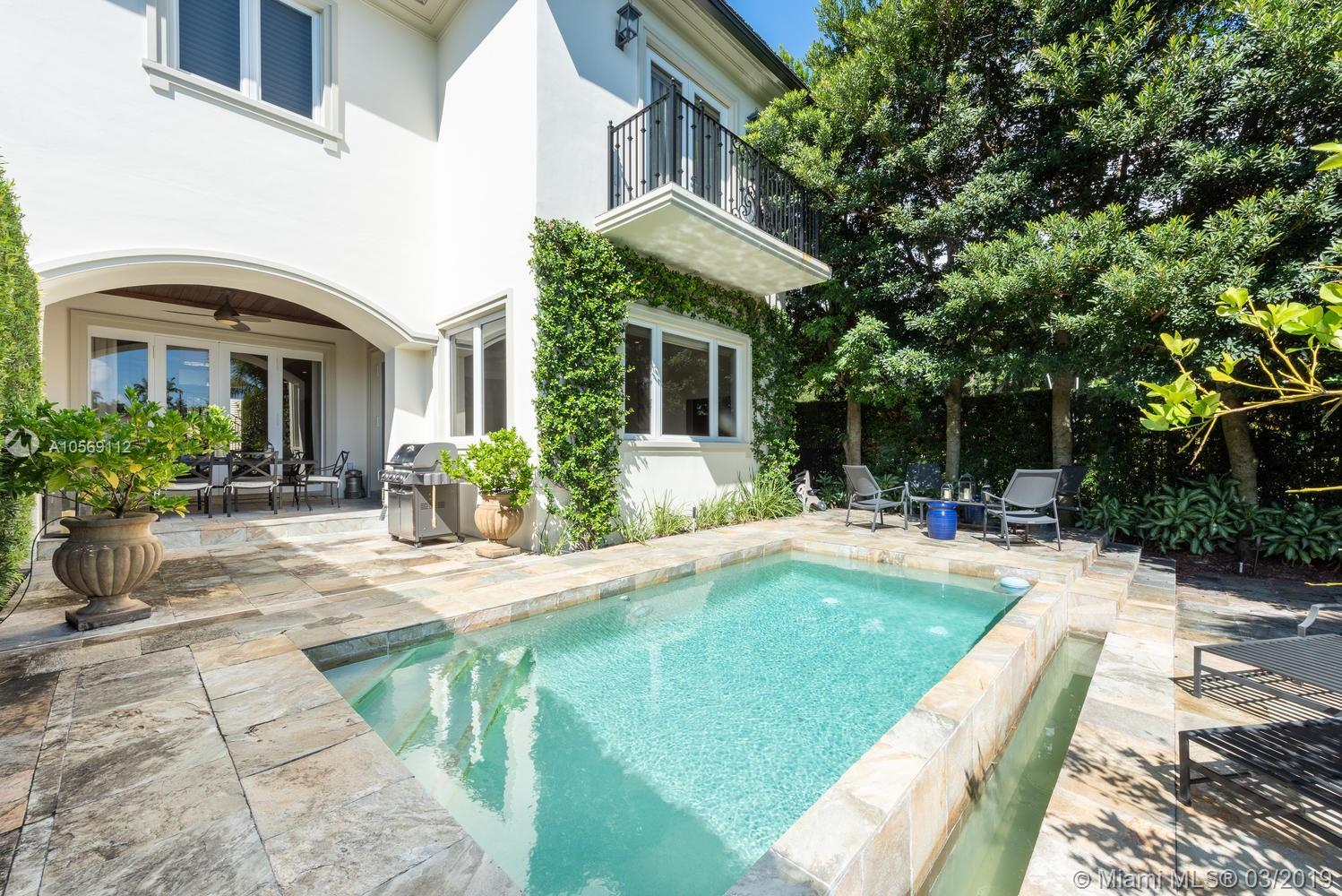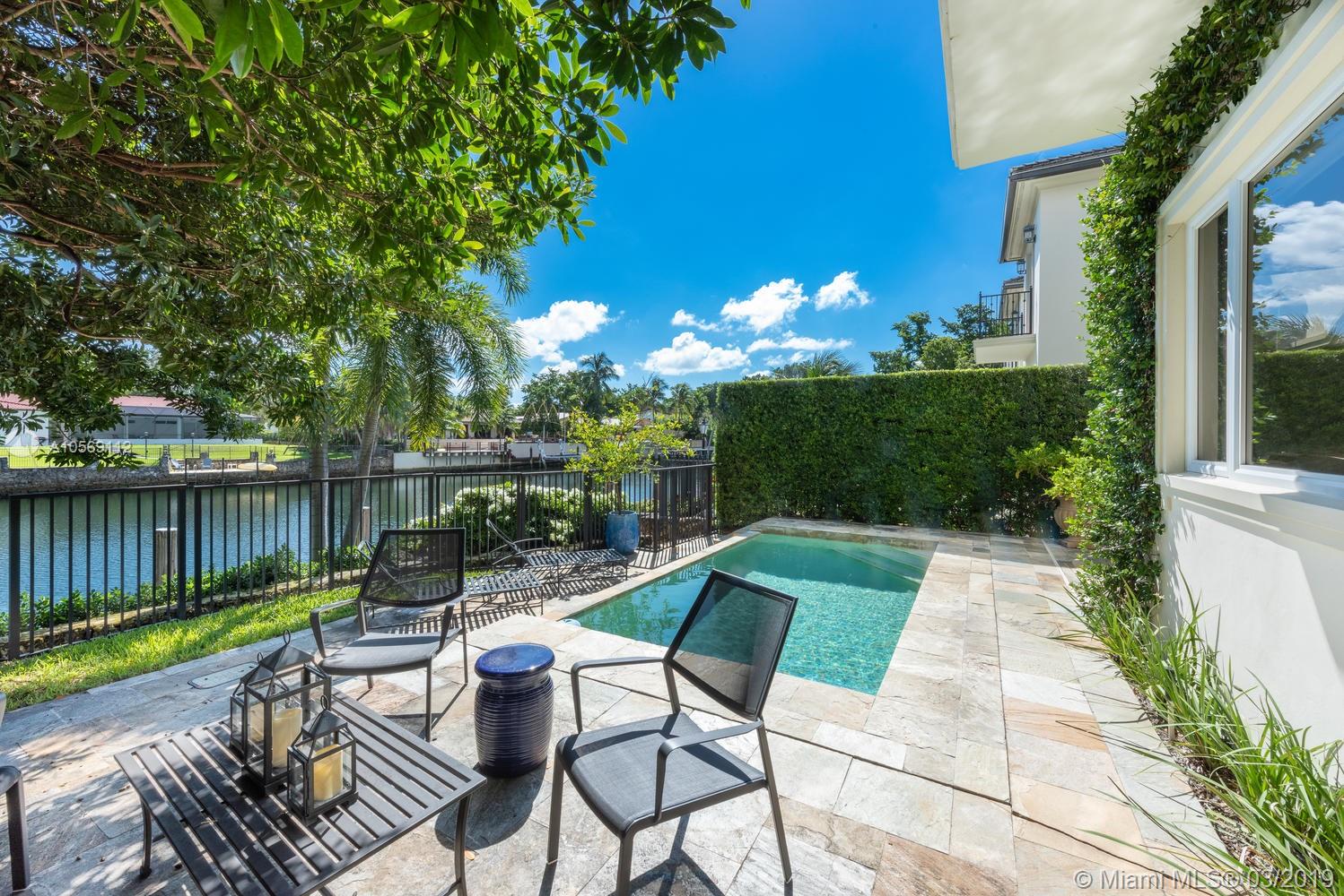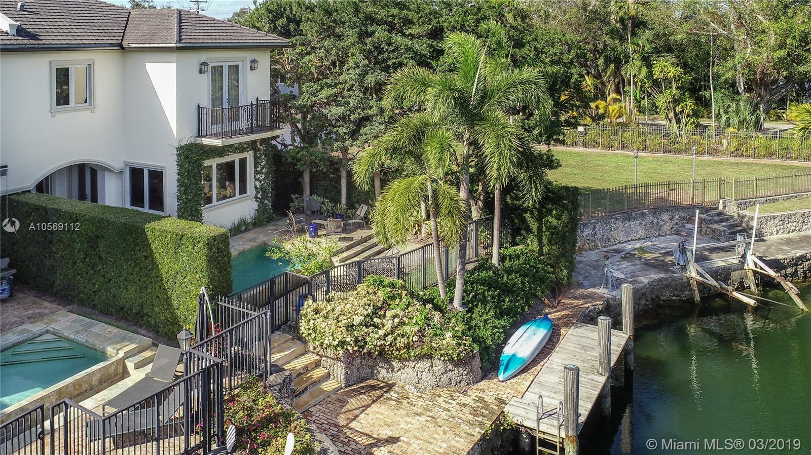 Beautifully landscaped & gated with private garage offers 4 bed/ 4.5 bath w/ designer finishes throughout. Formal living and dining rooms plus great room feature honed travertine floors, abundant natural light, Lutron smart home system & elevator. Gourmet Kitchen w/ leathered granite countertops, top of the line appliances & gas range. Master bedroom suite w/ wood floors, large walk-in closet, separate sitting area, private balcony overlooking waterway. Master Bath features Carrera marble, double sinks w/ separate tub & shower. Entertain poolside w/covered patio & private dock. Maintenance Fee includes all exterior insurance including windstorm & flood as well as lawn & pool maintenance.