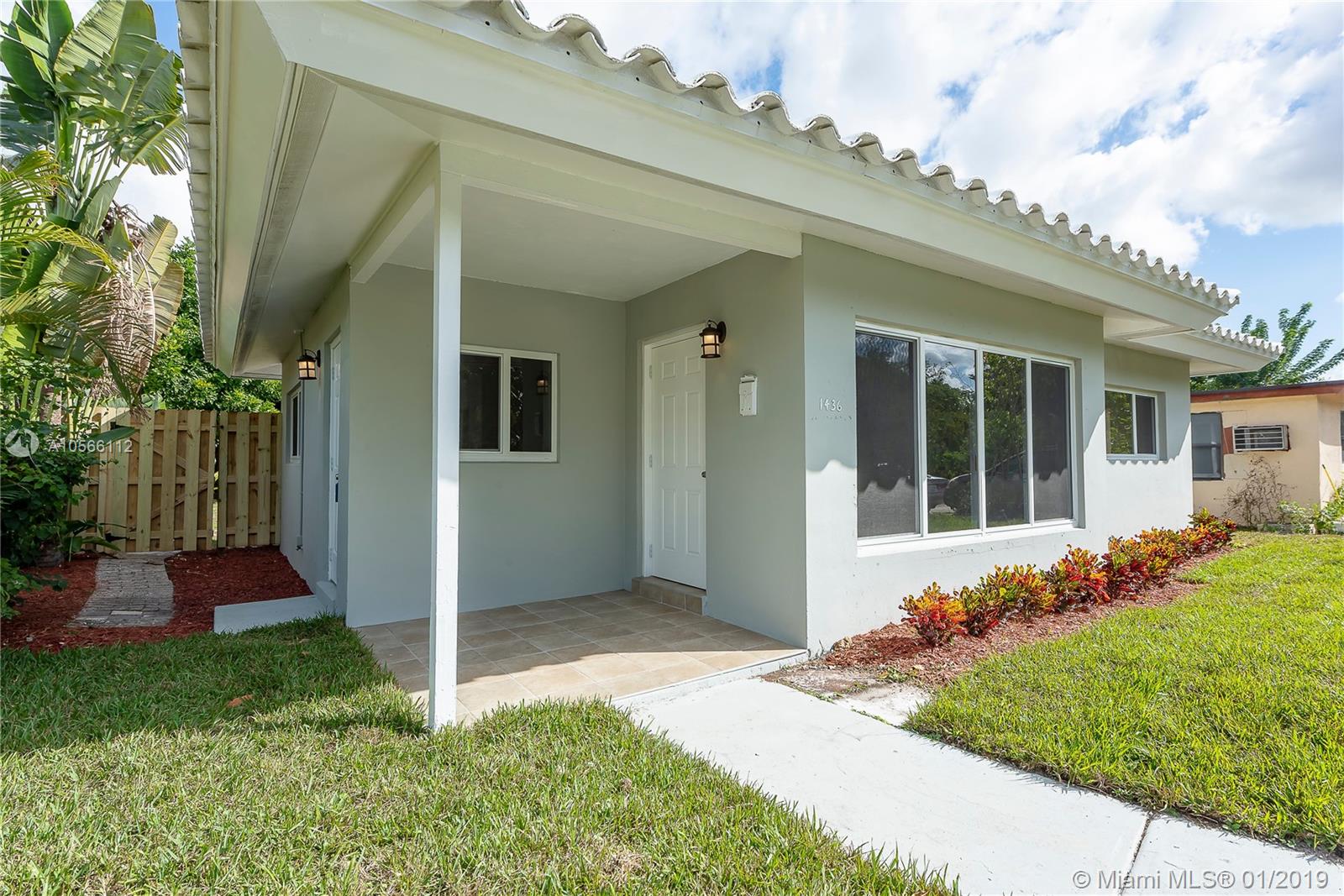 Beautiful fresh Florida stile Home, Completely updated, Remodeled kitchen with bright colors, white quartz countertops and new stainless still appliances, living area with wood burning fireplace. floor has Tile through-out House is in Excellent condition with brand new impact windows and doors. Bedrooms with impact windows and new mirror closets doors, bathroom was redone completely it has combination of shower-tub, Huge fenced backyard and room for a pool. the fence was also recently installed. Laundry room with the hook up for washer. Beautiful new landscaping with auto-sprinkles
