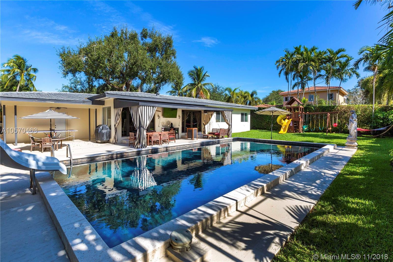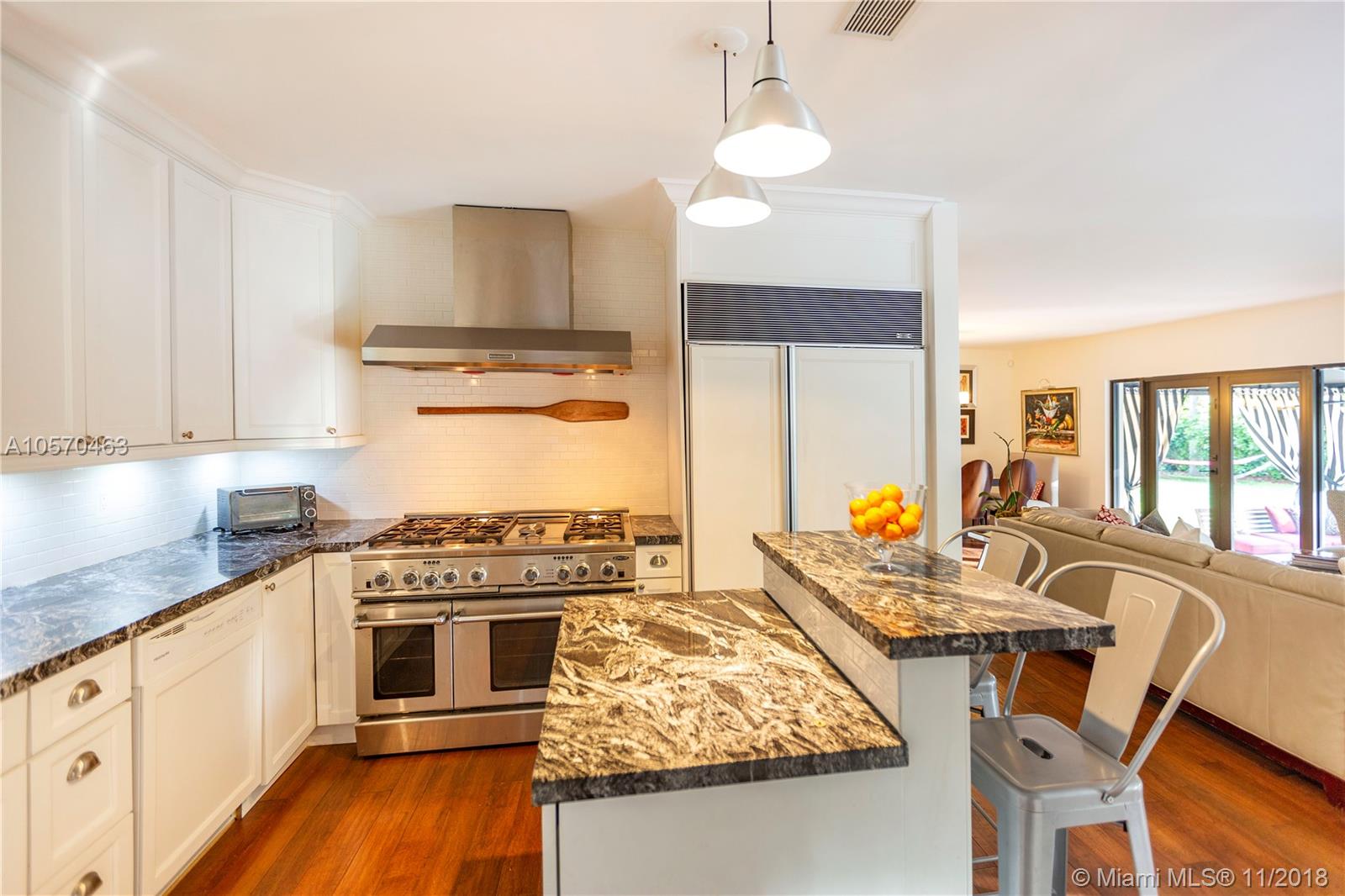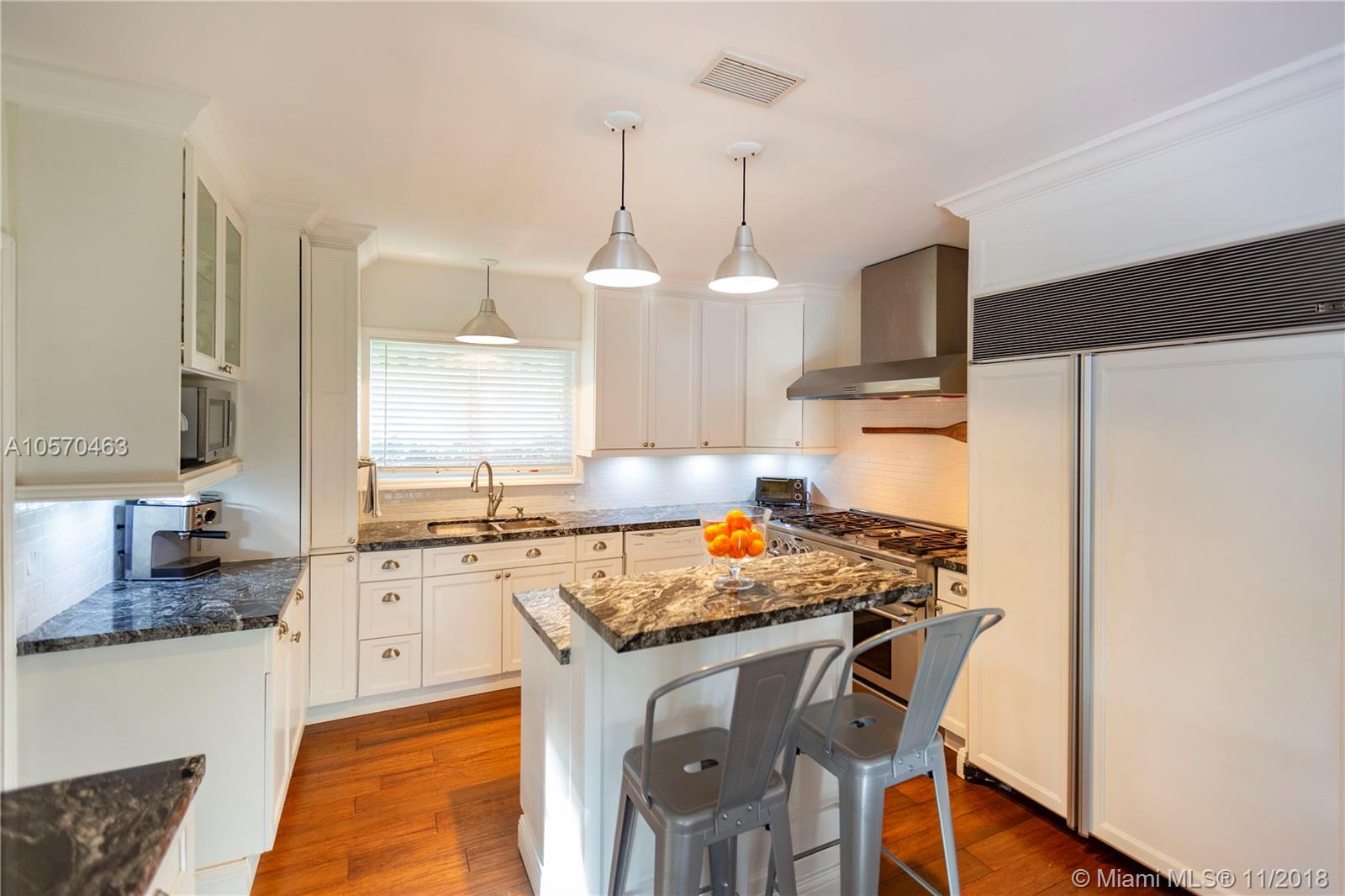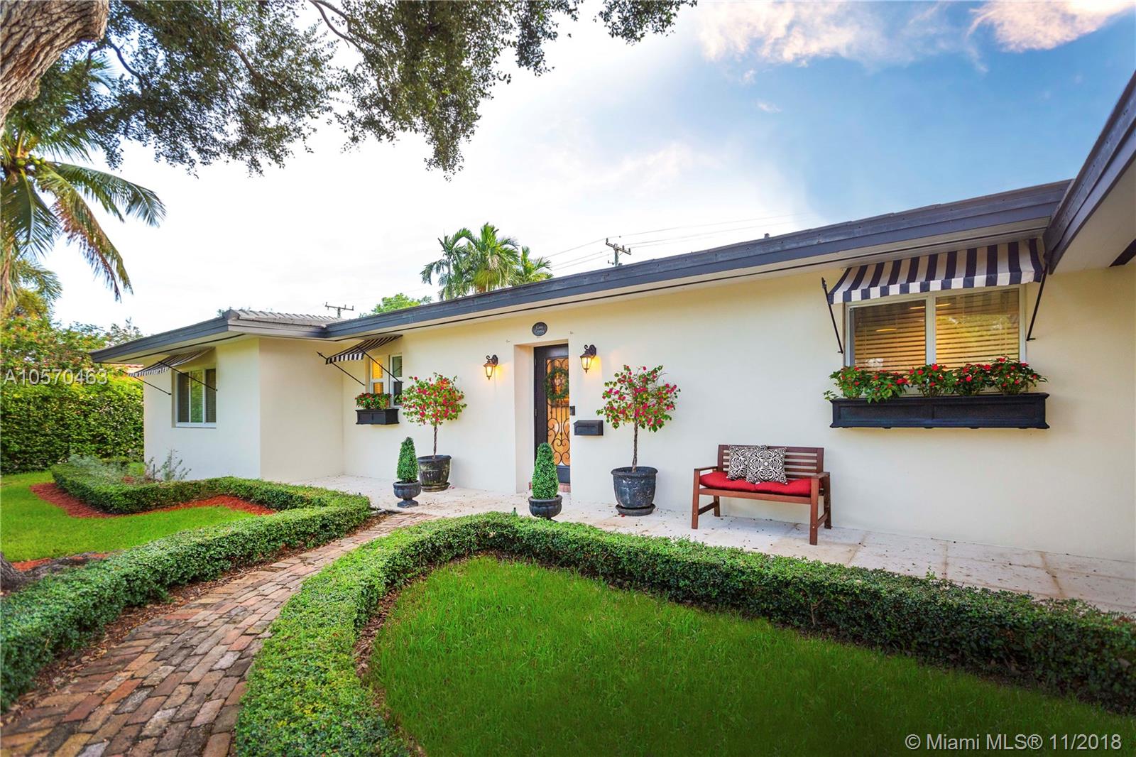Stunning Retreat on a quiet St. In the middle of the Gables. Completely updated and incredibly charming, this 3-bedroom, 2.5-Bath Ranch offers you space, elegance and comfort, within walking distance of the Riviera Golf Course, the Coral Gables Library and the Youth Center. Impact Windows and Doors, Gas Stove, Sub Zero, Marble Counter-tops, Hard wood cabinetry, Hard wood Floors and a fabulous covered patio overlooking the 20x40 Black Marcite pool that absorbs the sun’s heat and extends swimming season year-round. This home is perfect for entertaining or living in stay-cation mode. Wont Last.