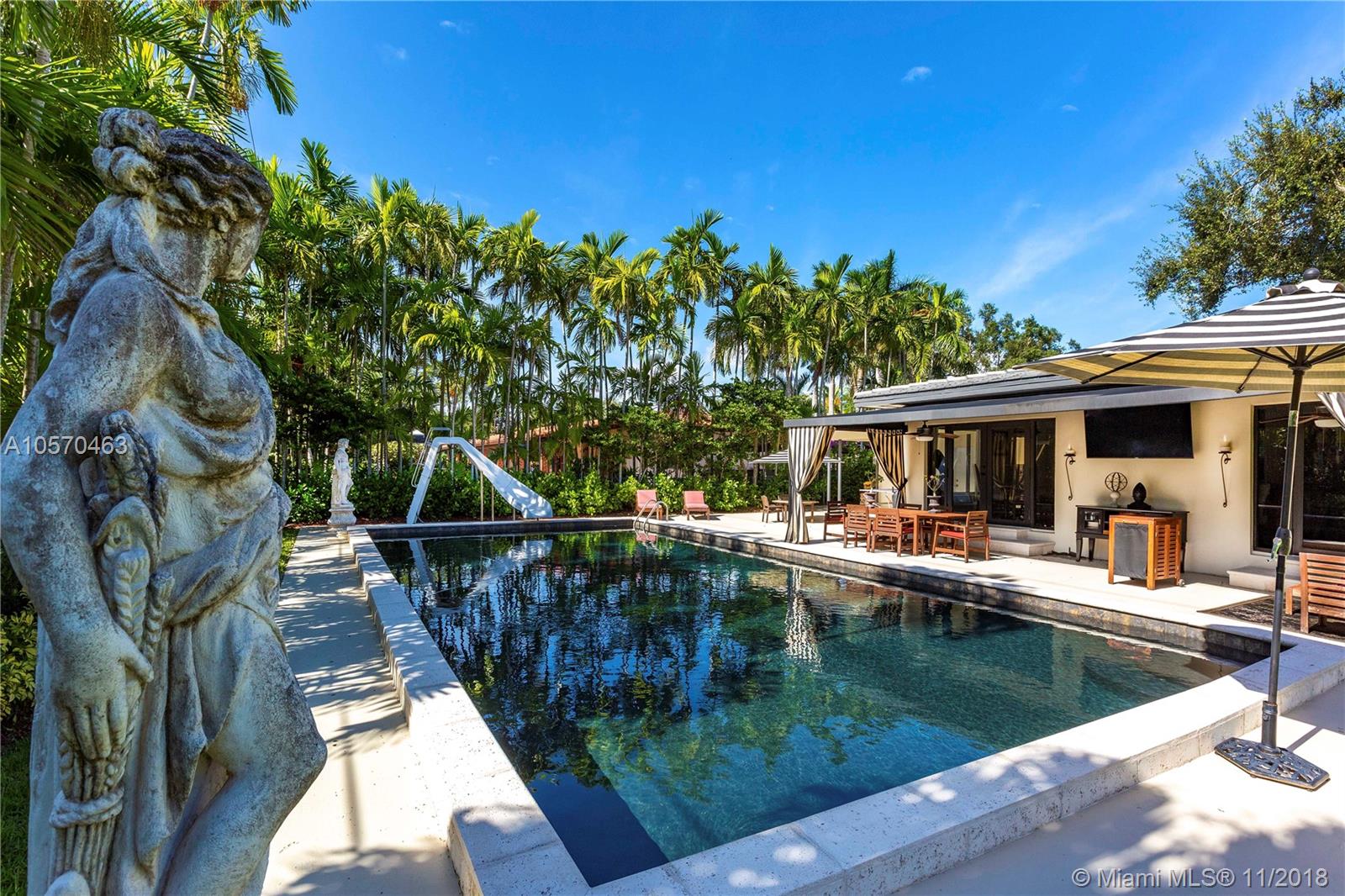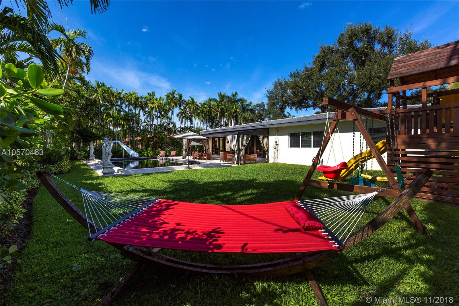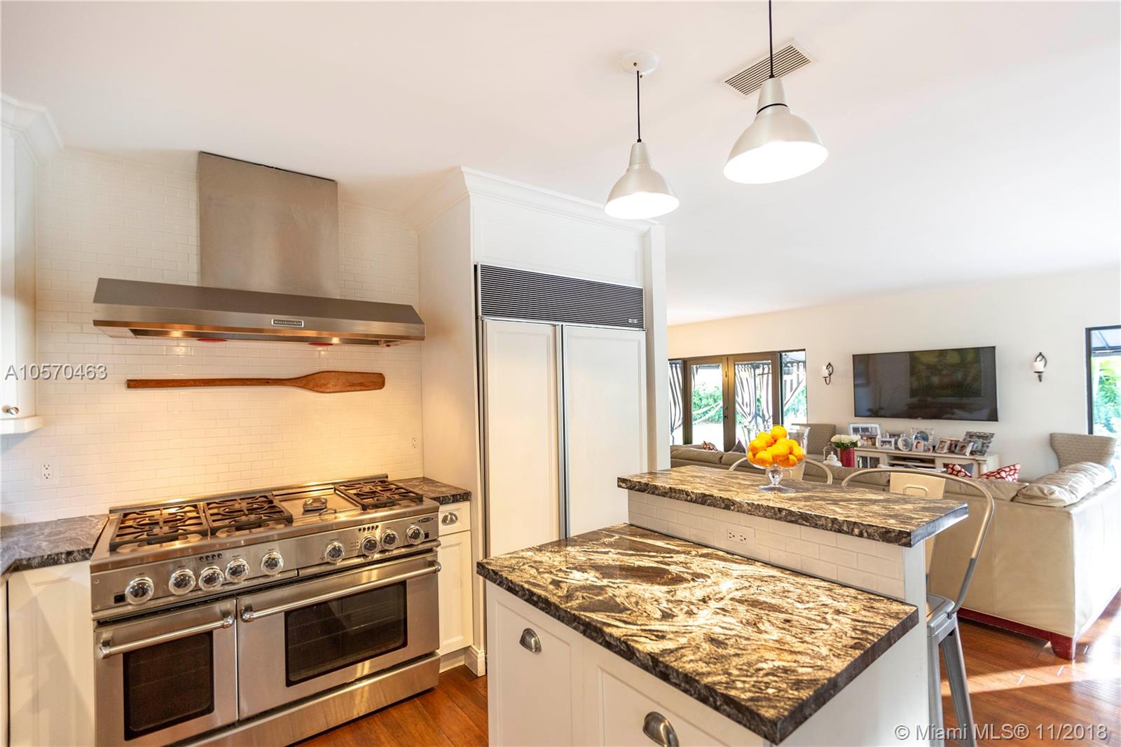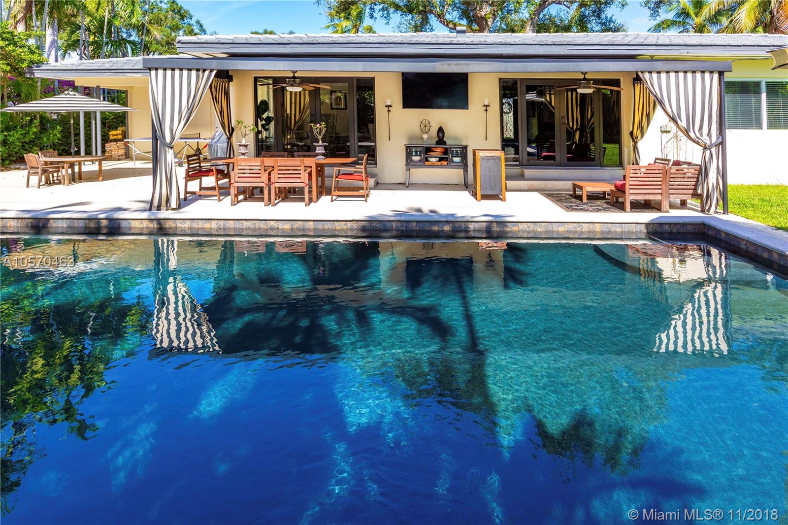 Stunning Retreat on a quiet St. In the middle of the Gables. Completely updated and incredibly charming, this 3-bedroom, 2.5-Bath Ranch offers you space, elegance and comfort, within walking distance of the Riviera Golf Course, the Coral Gables Library and the Youth Center. Impact Windows and Doors, Gas Stove, Sub Zero, Marble Counter-tops, Hard wood cabinetry, Hard wood Floors and a fabulous covered patio overlooking the 20x40 Black Marcite pool that absorbs the sun’s heat and extends swimming season year-round. This home is perfect for entertaining or living in stay-cation mode. Wont Last.