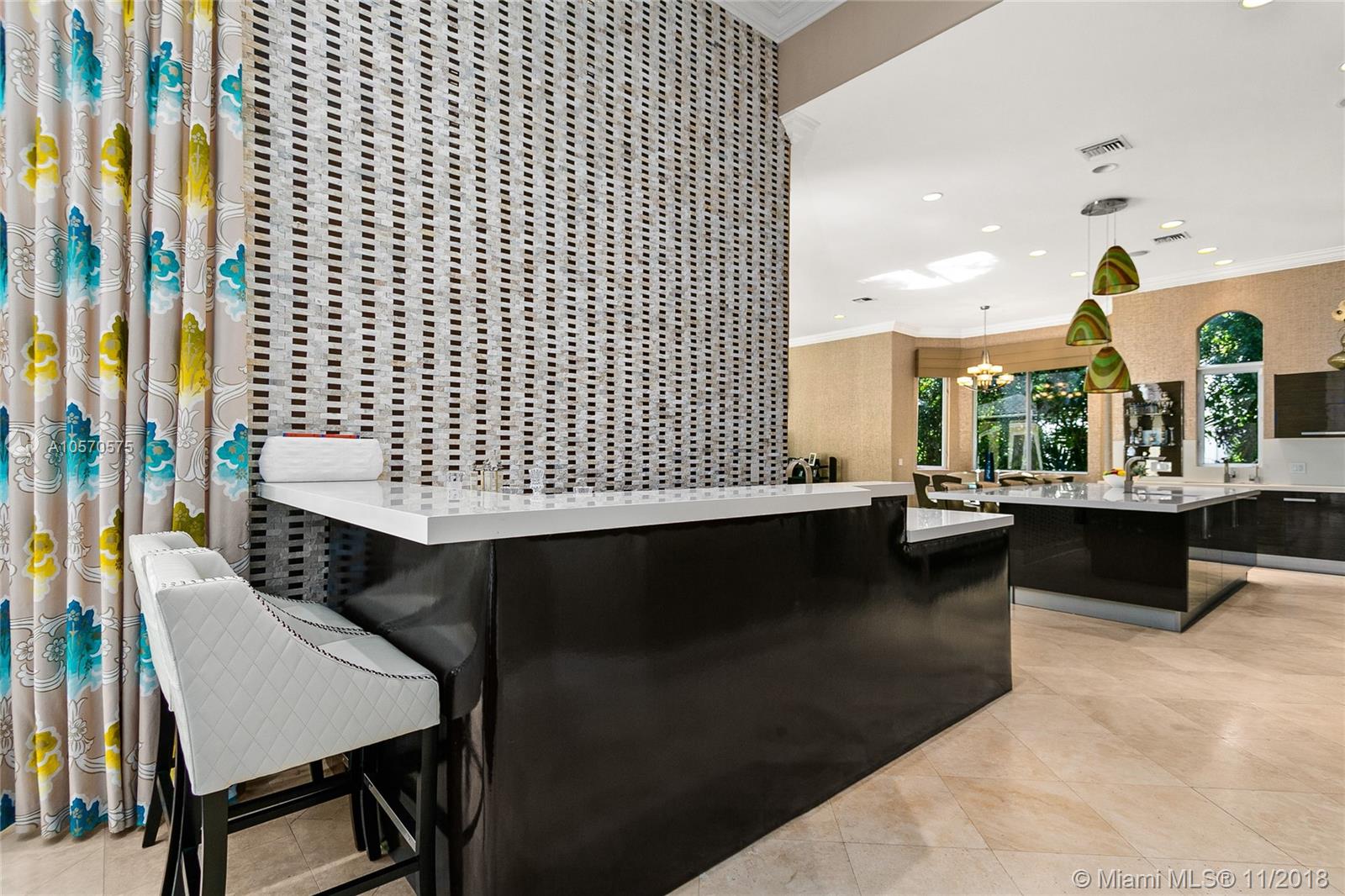 Spectacular one story home located on a gorgeous deep gated acre in N. Pinecrest. Stunning foyer and living room hi-volume ceilings throughout home. Lavish master bedroom with sitting area & deluxe master bathroom with dual sinks, bidet. Master bedroom has views to the pool & garden. Chefs gourmet open kitchen with top of the line appliances opens to spacious Family room. Wet Bar, gas fireplace. Lush private landscaping surround pool, spa, covered outdoor area. Basketball court & running track. Impact windows/doors, camera system. 5 ensuite bedrooms + additional office! Low traffic, child friendly street. Wired for Generator.
