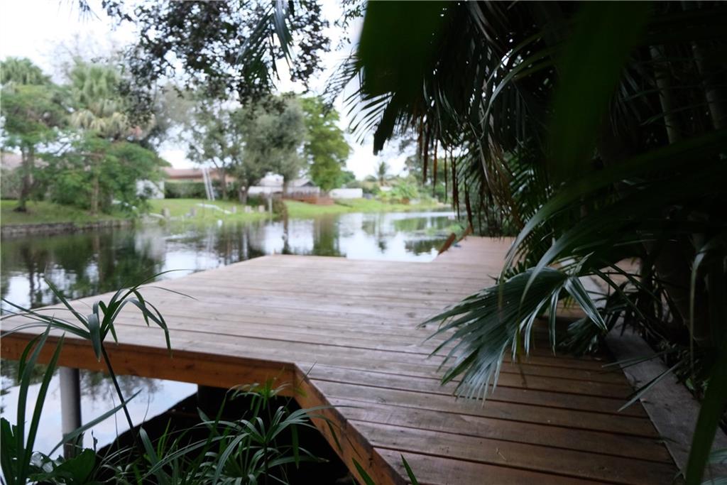 Nature Lover's Paradise on the water in sought after Palm Aire Village! Home is perfect for entertaining inside and out! Lush, tropical oasis plus a screen room with a custom pond. New HVAC in 2016! Brand new washer and dryer. Alarm system, water filter system and lots of open space inside! Fish off of your private dock or use the boat lift to conveniently load and unload your watercraft. Do you have a green thumb? There is a green house tucked neatly in the side yard. Love trees, flowers and local wildlife? Watch from your screened in porch as they frolic in your back yard paradise. Large kitchen, split floor plan and lots of natural light. Central location, close to parks and highways. Sprinkler is fed from canal saving you $. Make this rare & unique paradise your home today!