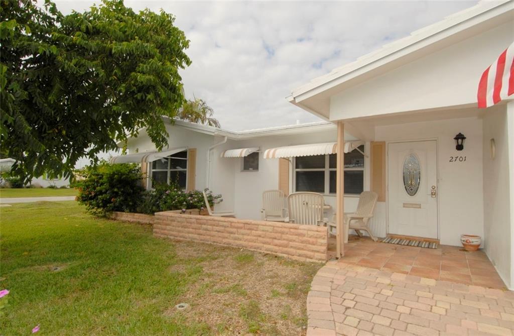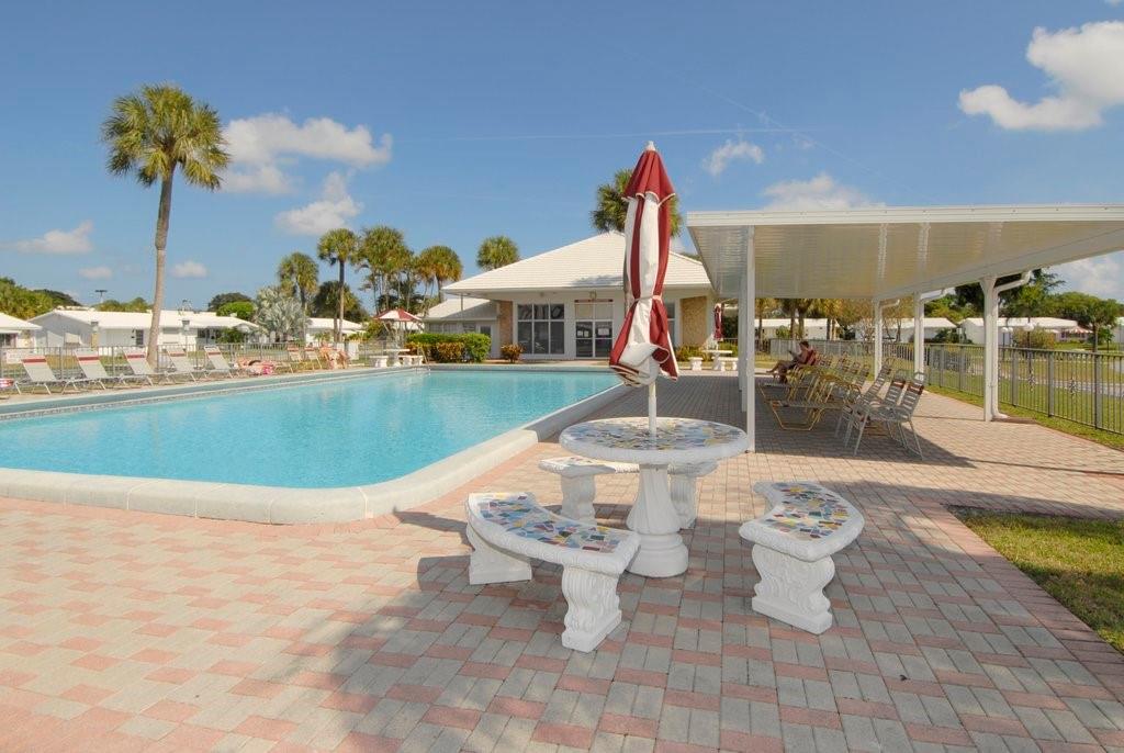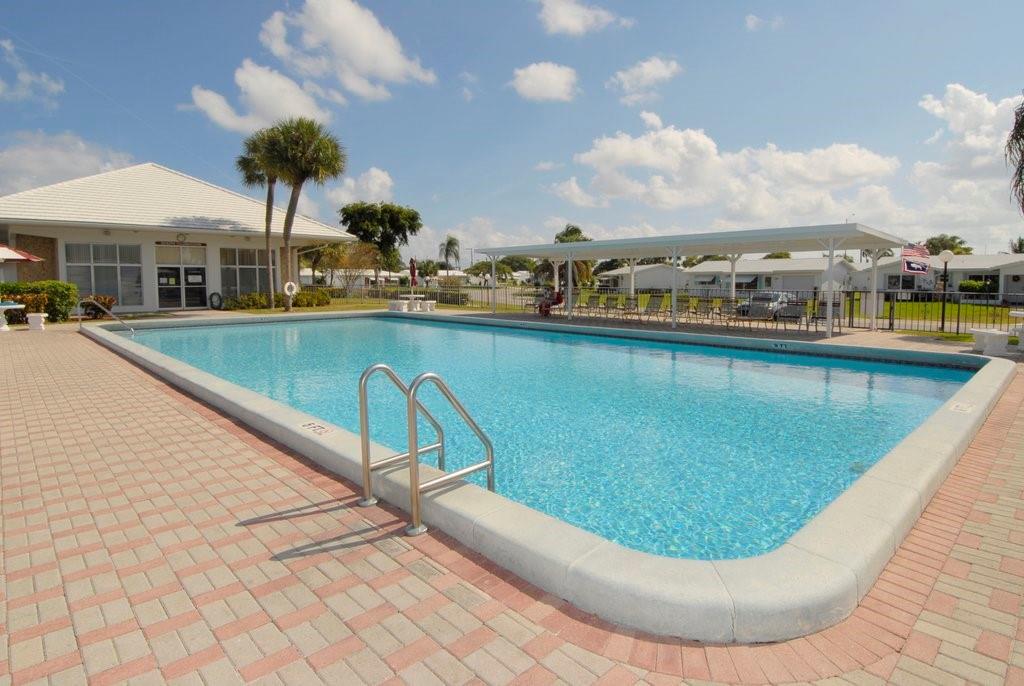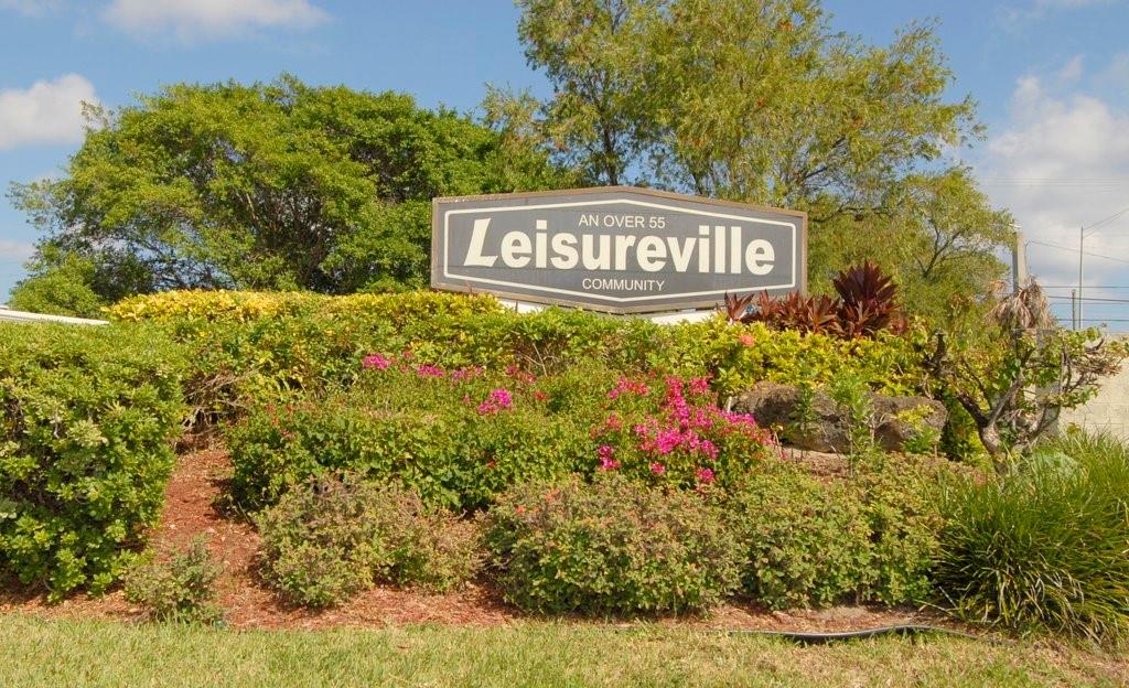 Private, Corner lot renovated with 2/2 with new roof in 2004. NO LAND LEASE. Free golf for owners. NEW Air-conditioner 2016. Gourmet kitchen with new cabinetry, corian countertops, NEW Samsung Stainless refrigerator, NEW upright washer and dryer, Newer doors, and all tiled flooring. Pets ok. Large front and rear patios for entertaining. Double wide Pavers driveway. Leisureville is a 55+ community and has two swimming pools, two clubhouses, a nine hole golf course, community bus. Maintenance includes painting the exterior of the house, cleaning and painting the roof, lawn maintenance, water, an onsite manager. Close to beach, I95, shopping and entertainment.