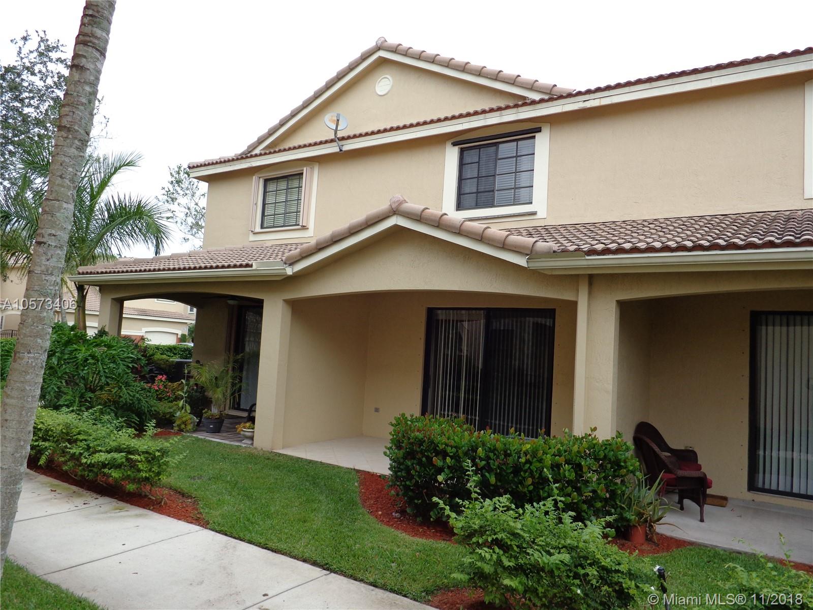 DESIRABLE TOWN HOME AT COURTYARD NEXT TO FALCON COVE, CYPRESS BAY HIGH SCHOOL, AND WESTON LIBRARY. 3 BEDROOMS, 2 FULL BATHS UPSTAIRS AND GUEST HALF BATHROOM DOWN STAIRS. TWO BEDROOMS CONECTED THROUGH A JACK AN JILL, PERFECT FOR SIBLINGS. MINT CONDITION, READY TO MOVE IN. NEUTRAL COLOR DIAGONAL TILE IN FIRST FLOOR. UPGRADED CARPET STAIRS AND SECOND FLOOR. NEW SS APPLIANCES AT THE KITCHEN. NEW FULL SIZE WASHER AND DRYER. LIGHT AND BRIGHT OPEN FIRST FLOOR. SLIDING DOOR HEADS FROM LIVING AREA TO A COVERED BACONY ERFECT FOR BBQ AND ENTERTAINTMENT FAMILY AREA. WELL PRICED TO SELL QUICKLY. COMO TO SEE IT, YOU WILL LOVE IT!!IT WON'T LAST!!