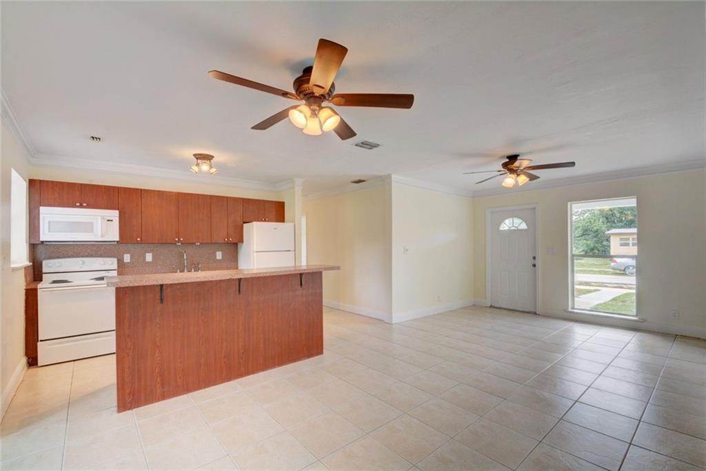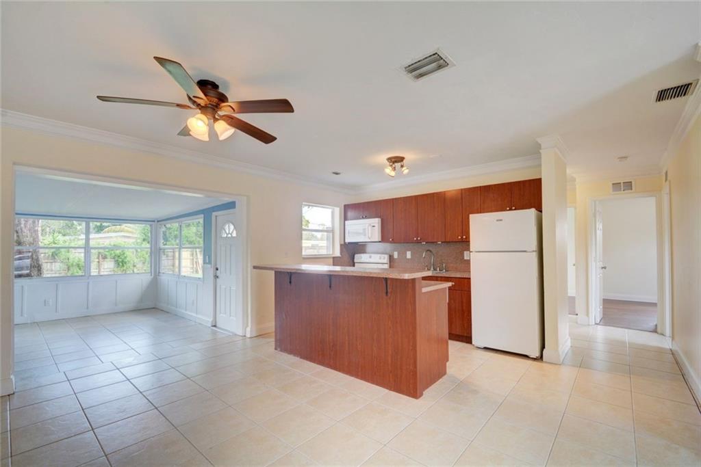 Welcome Home! Open living area with a large backyard. This Fort Lauderdale home boasts 4 bedroom and 1 bathroom, open kitchen, title floors through the living areas and wood laminate flooring in all four bedrooms. Home feature crown molding, newer appliances including washer and dryer, newer hot water heater, A/C and electric panel are newer. Backyard is completely fenced in. Great location close to highways, Wilton Manors, beaches, downtown, restaurants and shops.