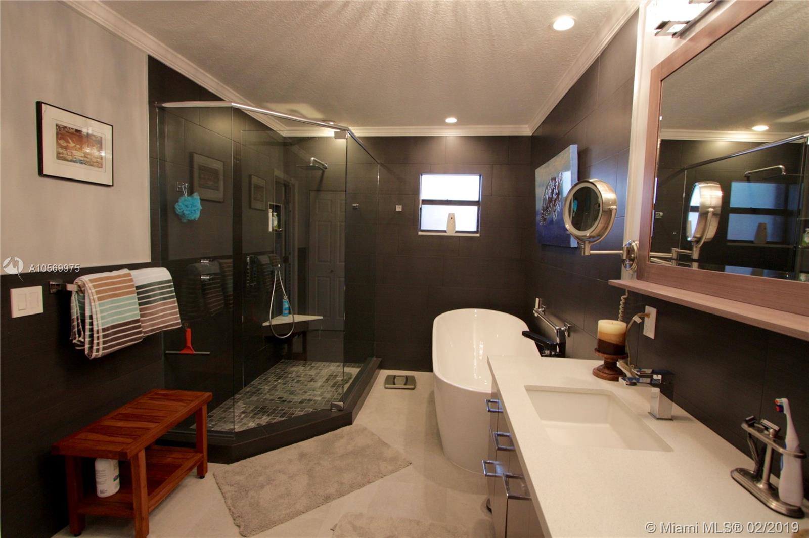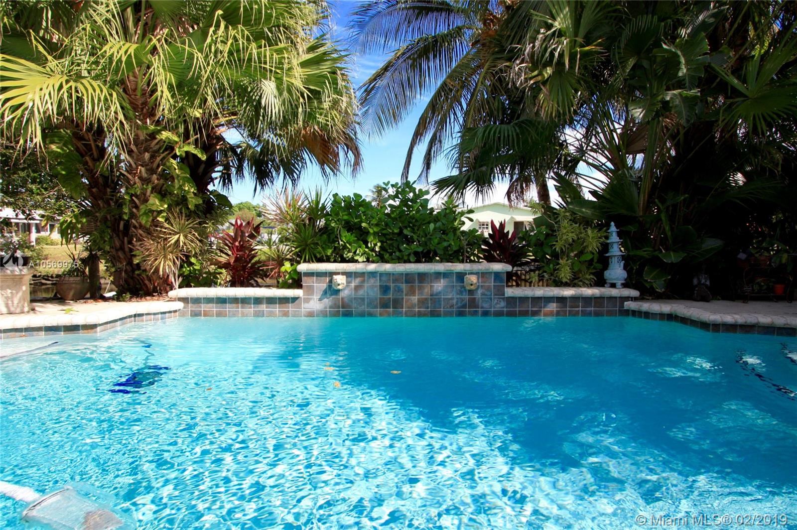 Gorgeous waterfront home with pool and ocean access. Split bedroom layout and huge master suite. Newly remodeled master bath has Italian tile, Toto WASHLET toilet, freestanding Neptune bubble tub and dual sinks. Huge walk-in closet has California Closets. Open gourmet kitchen has wood cabinets, granite counters, stainless steel appliances including wine cooler. Lots of nice details throughout home like crown molding, wood-scraped tiles, designer ceiling fans. Multiple French doors open to enclosed, screened lanai. Heated pool has waterfall and salt water chlorination. Newer 60’ seawall and 40’ permitted, composite wood dock. Ocean access with one fixed bridge. Accordion hurricane shutters, portable generator, alarm system, speakers, sprinkler system, new roof in 2006. Large 2-car garage.