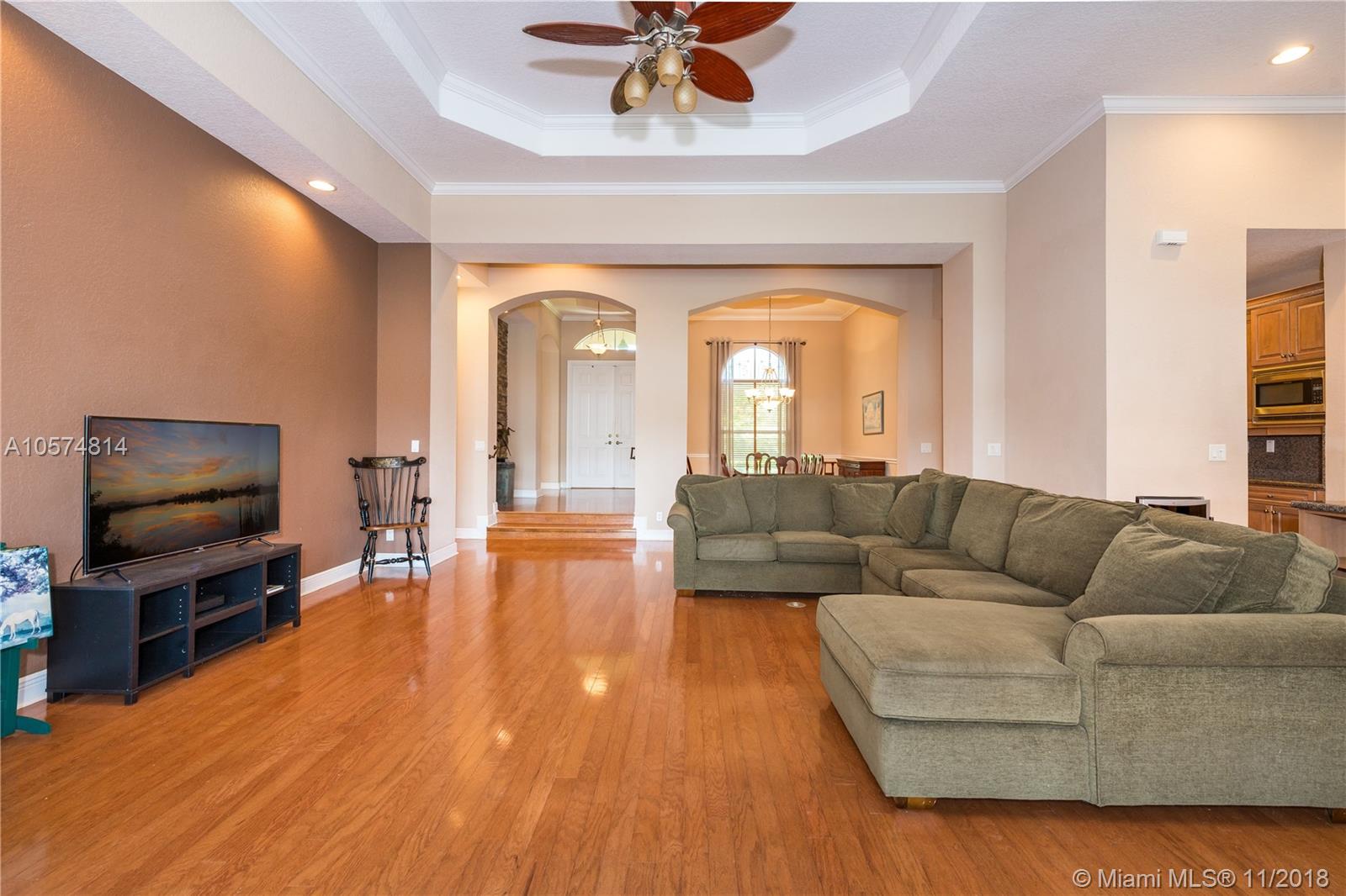 Perfectly priced by this motivated seller. Large 5 bedroom home in Davie's well established gated community of Saddlebrook. Open concept with HUGE great room with BIG open kitchen. Split bedrooms. Gorgeous kitchen with all the extras. Grand master retreat with sitting area and sizable private bath. Beautiful hard wood flooring. 2 NEW AC'S. Exterior features saltwater pool with spa. Covered patio and pergola to enjoy the beautiful sunsets on the pristine lake. Builder's acre with plenty of room to roam. Hurricane protection. Wonderful schools and easy access to shopping and highways.