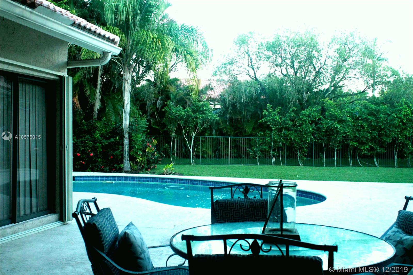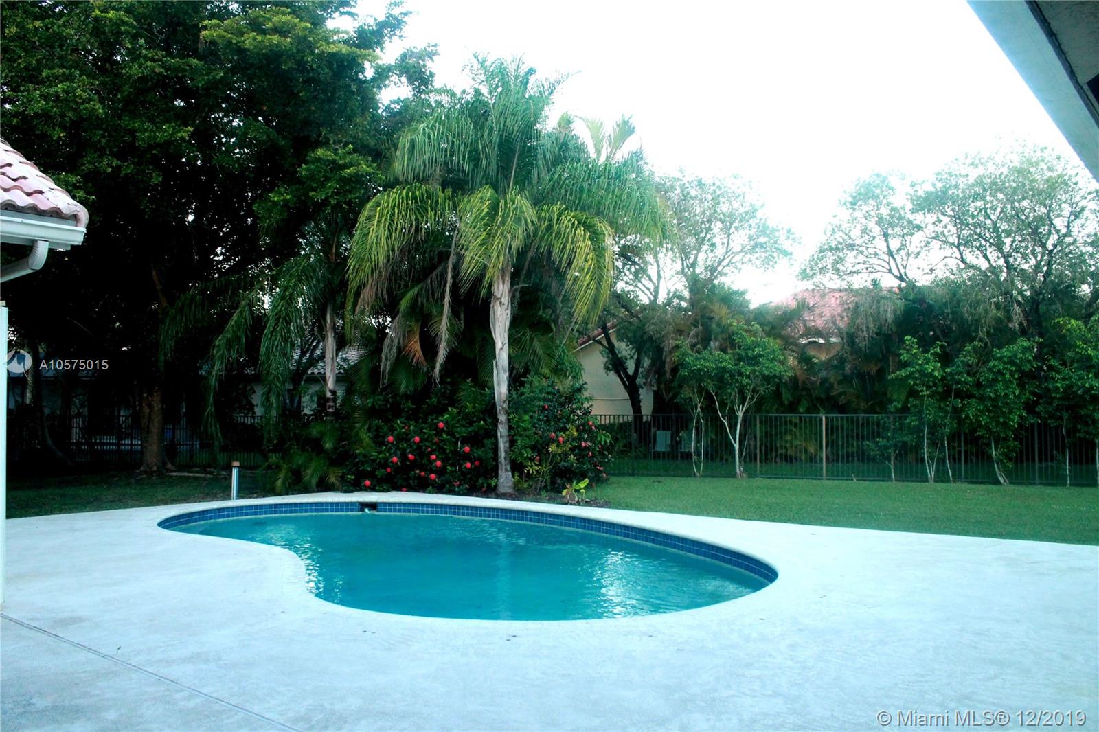 Remarkable 5/3.5 Single Story Pool Home in the heart of Weston! Open entrance overlooks the pool, large living room and family room. Stunning granite kitchen, stainless steel appliances, huge patio with many trees, and a large playing area, sparkling pool, accordion shutters, gated community; right near Peace Mound park. Hurry-must see!