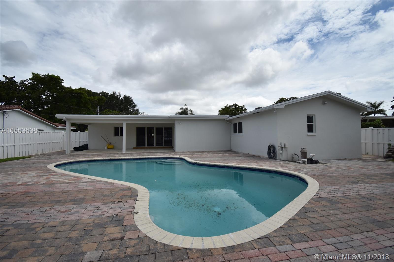 Renovated home in 2018 ALL renovations with city and county permits, 4 Bedrooms, 3 Bathrooms, and 2 car garage, large lot with a paver back yard, large pool with cover porch, open new kitchen, with acrylic floor to ceiling cabinets, quartz counters and new appliances, new plumbing all around the house, gorgeous modern new bathrooms, new pool pump, new sprinkles pump, open living areas, impact windows and doors. Don't missed this spectacular home in a great street in Hollywood Hills.