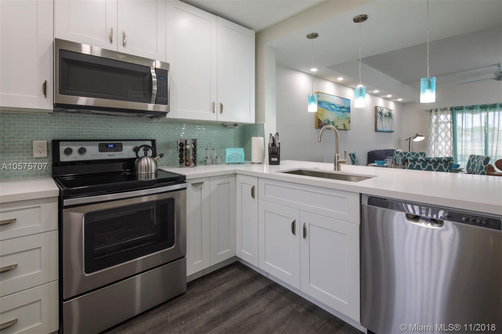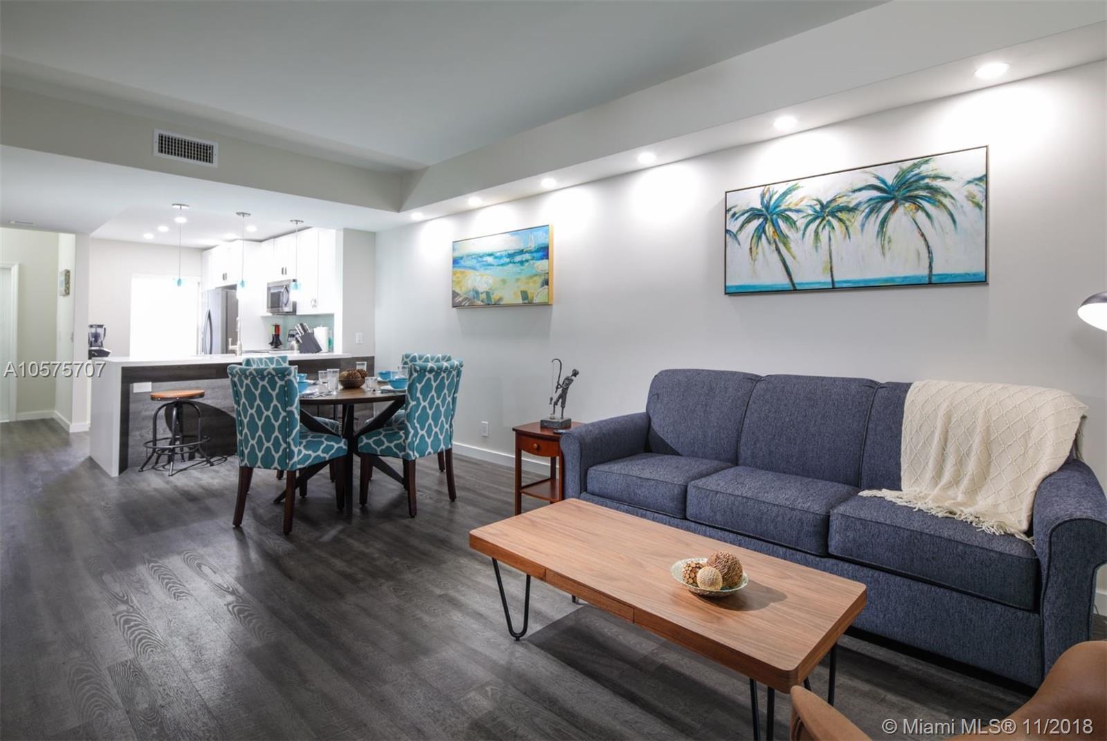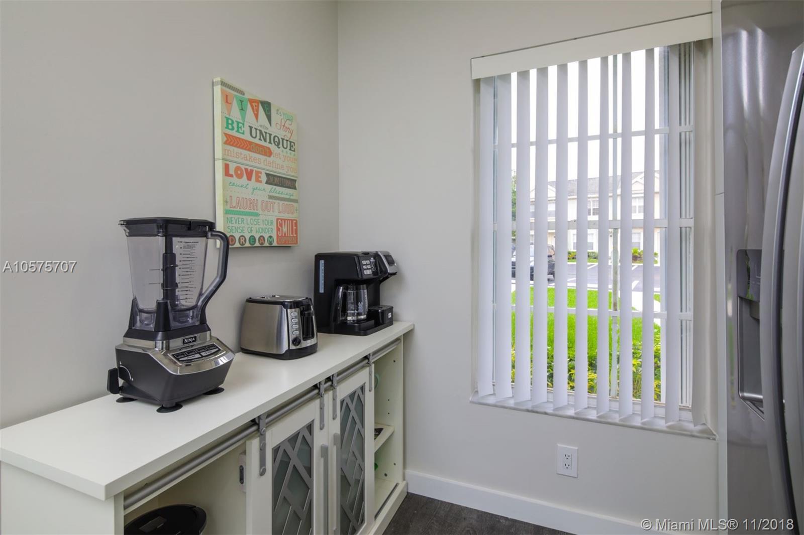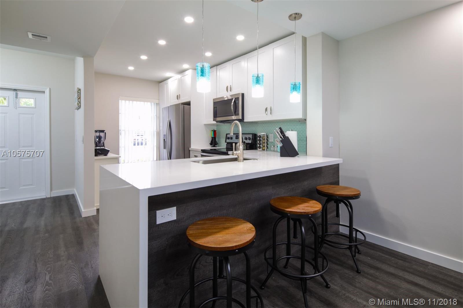 46 Key West is a stylish and beautifully renovated 2 bedroom, 2.5 bath condominium located in the coveted Coconuts area of Weston. Ownership comes with membership to the Bonaventure Country Club. The completely updated kitchen is a chef’s joy with ample storage. Stainless steel appliances and pristine white cabinets showcase the ice-blue tile backsplash and pendant lights over the sink. This lower level of 46 Key West is complete with a convenient half bath and the stacked washer and dryer. Exit the rear sliding glass door and find a covered brick patio, complete with a bistro dining table for two.Upstairs you have 2 master bedrooms with spacious closets.