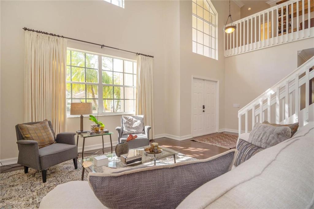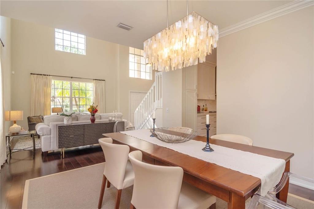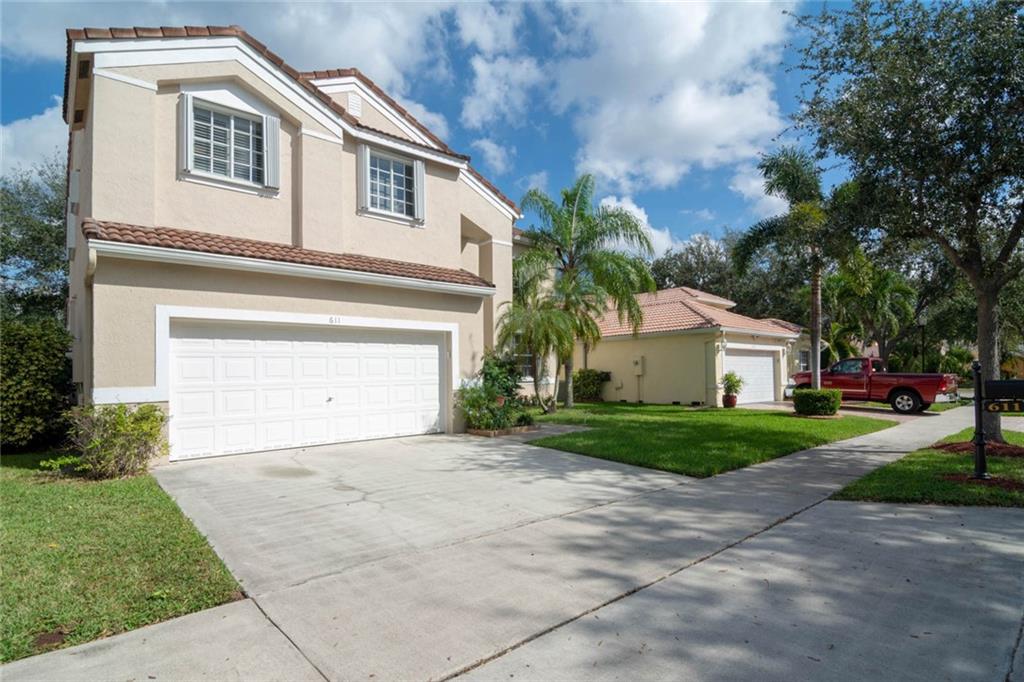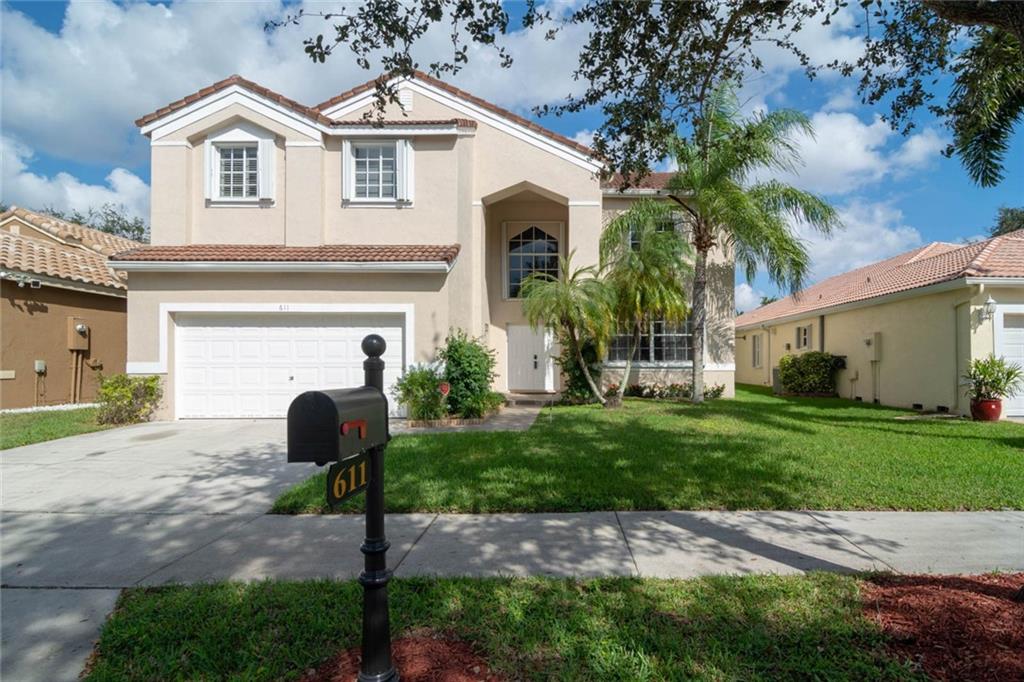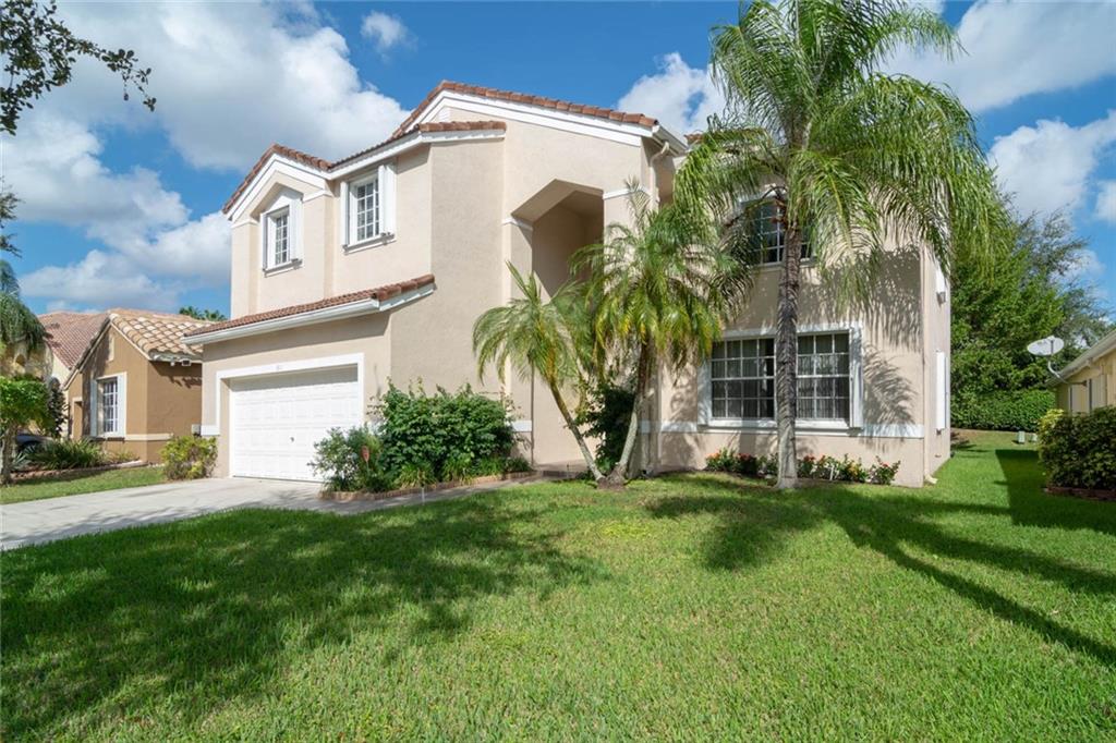 This is the one you've been waiting for! True 5 bedroom with 3 1/2 bathrooms, in pristine condition. Wood floors throughout. All appliances included. Quartz countertops in kitchen with designer backsplash. Custom breakfront with lighting and electric outlets provides space for all your china, silverware and small appliances. Master bedroom has large walk-in closet with closet cabinetry. Dual sinks in master bath plus roman tub and shower. Upgraded plumbing fixtures. Crown molding throughout. Two linen closets upstairs provide ample storage. Upstairs landing serves as a perfect office space if needed. Second bathroom also has dual sinks and custom tiling. Two bedrooms upstairs have carpeting, the rest have wood floors. Screened patio. Hurricane panels. Community pool and playground.