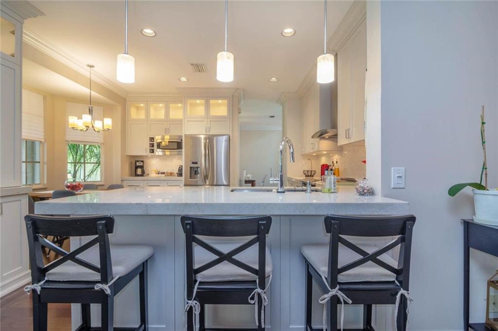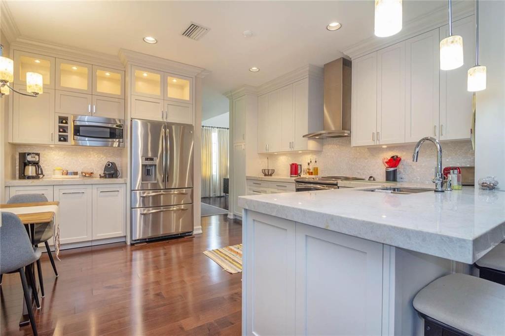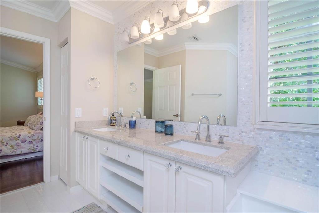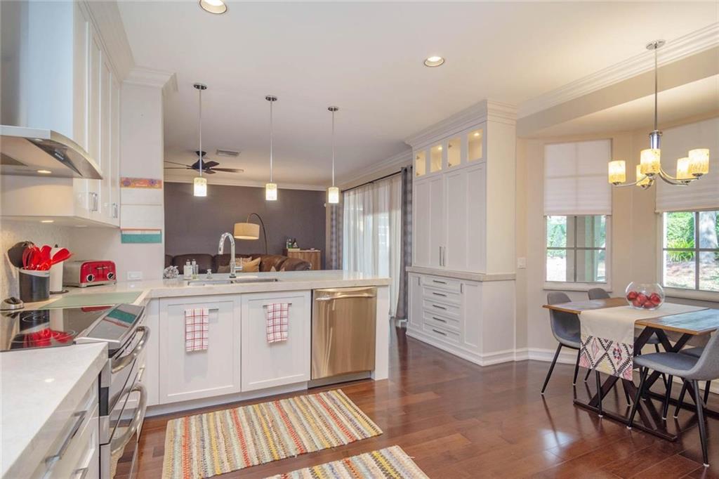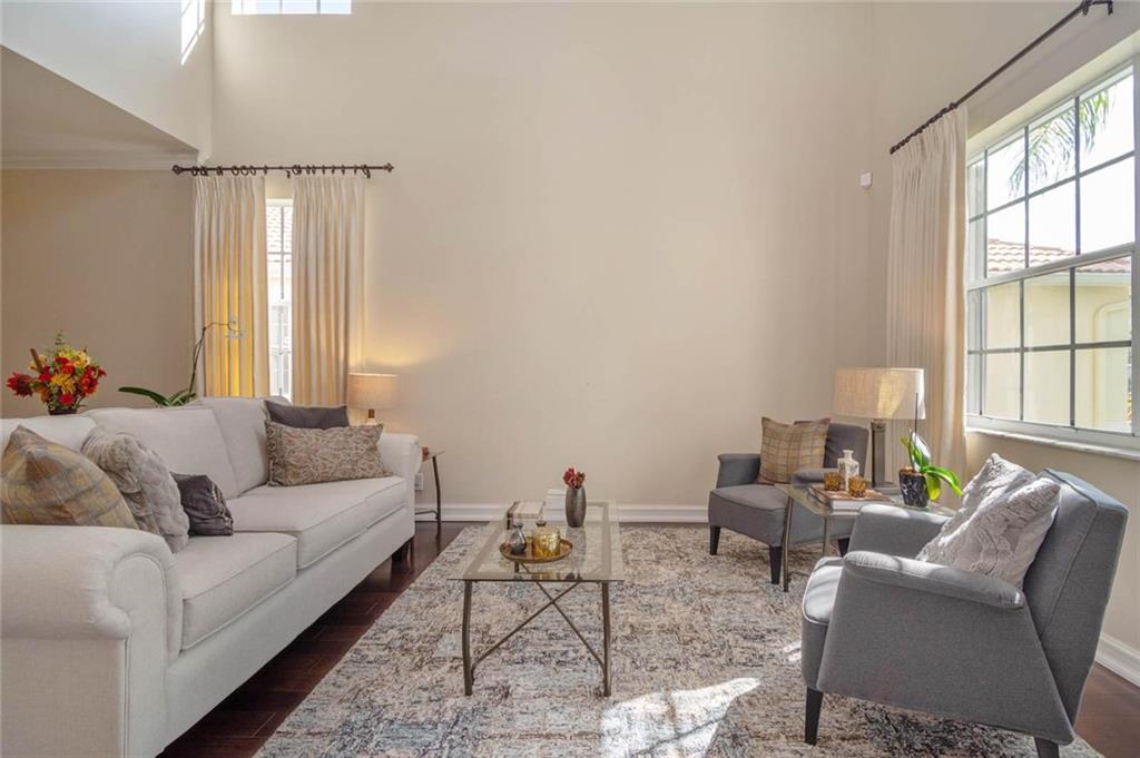This is the one you've been waiting for! True 5 bedroom with 3 1/2 bathrooms, in pristine condition. Wood floors throughout. All appliances included. Quartz countertops in kitchen with designer backsplash. Custom breakfront with lighting and electric outlets provides space for all your china, silverware and small appliances. Master bedroom has large walk-in closet with closet cabinetry. Dual sinks in master bath plus roman tub and shower. Upgraded plumbing fixtures. Crown molding throughout. Two linen closets upstairs provide ample storage. Upstairs landing serves as a perfect office space if needed. Second bathroom also has dual sinks and custom tiling. Two bedrooms upstairs have carpeting, the rest have wood floors. Screened patio. Hurricane panels. Community pool and playground.
