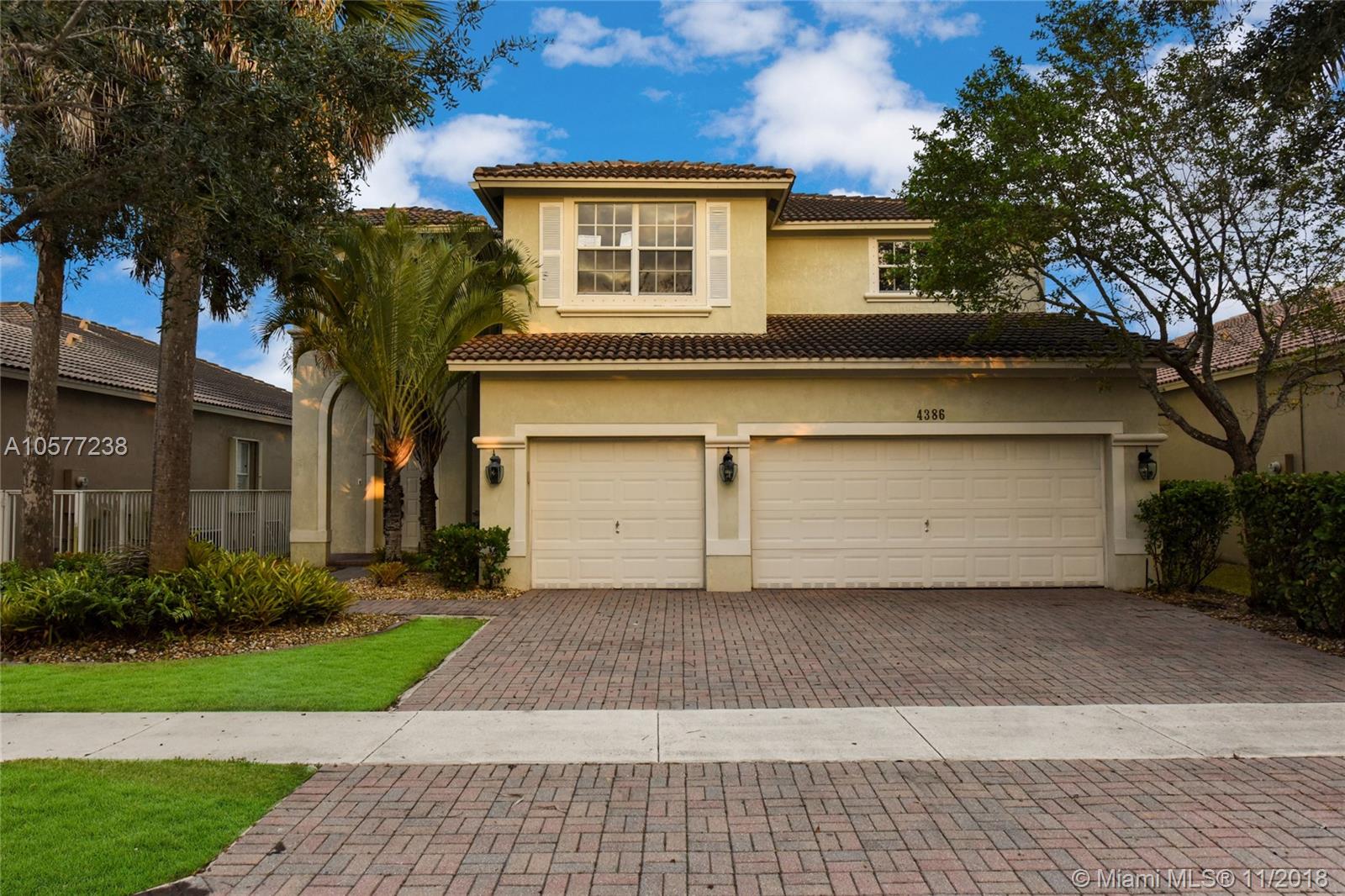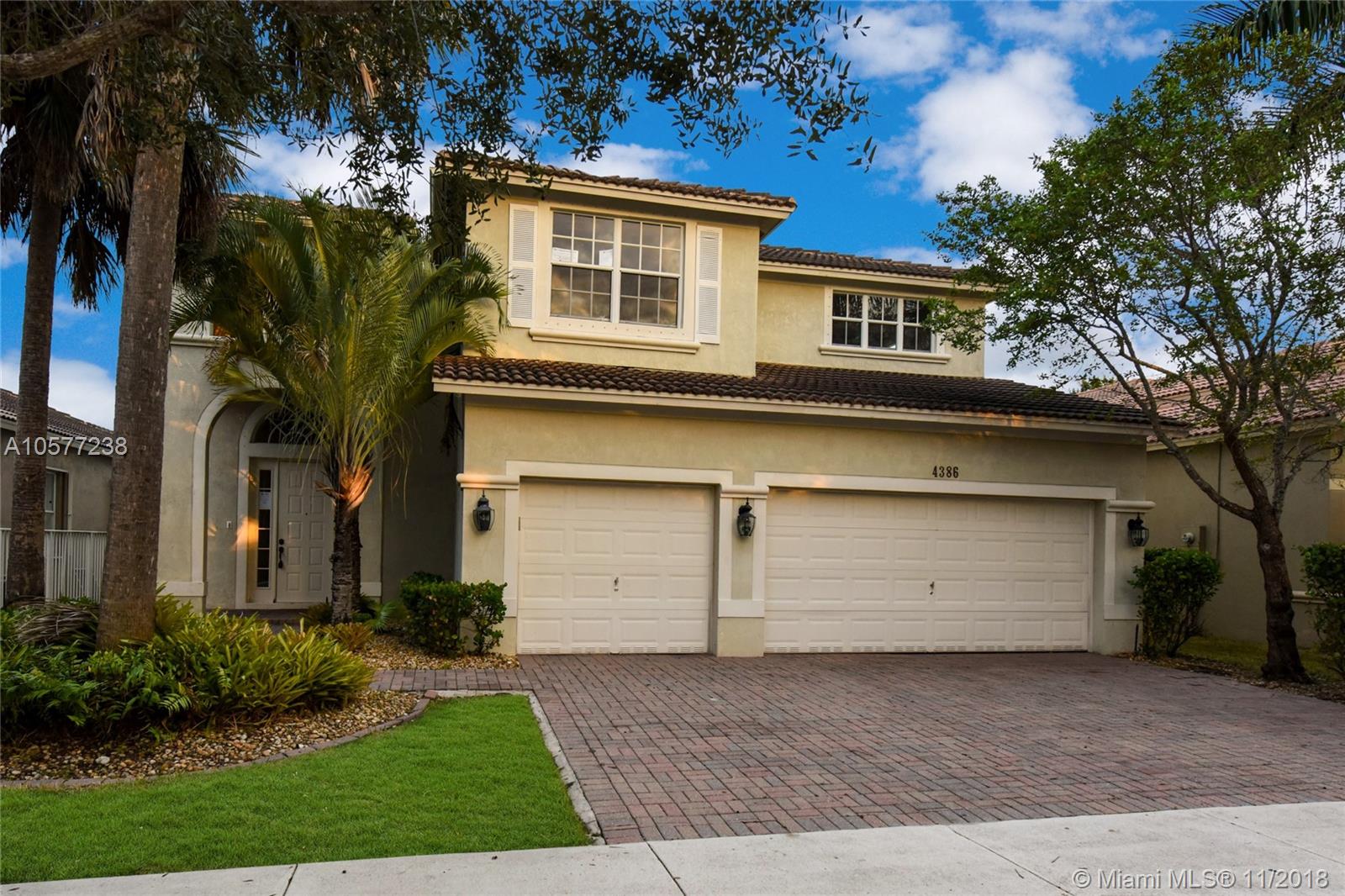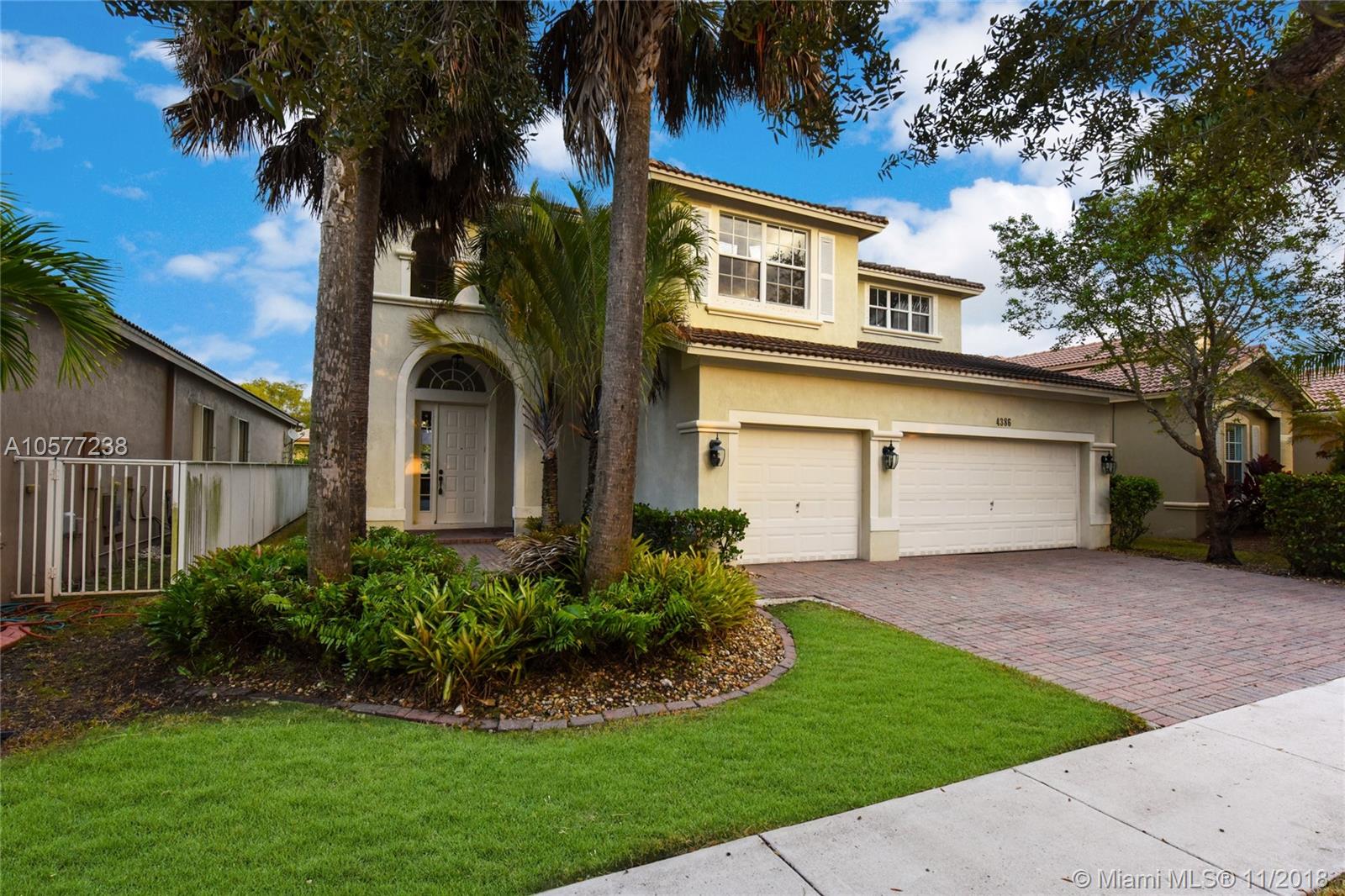 Remarkable 5 bedroom, 4 bathroom house located in the prestigious gated community Isles at Weston. This property is one you will be sure to love! Features include an amazing layout, tall ceilings, large kitchen and dining room, spacious bedrooms, over-sized 3 car garage, laundry room with laundry tub, ample storage space throughout, bar area, beautiful master suite with walk-in closets and gorgeous master bath, great backyard with covered patio and a pleasant lake view! The community offers awesome amenities including a social room, billiard room, kids playroom, fitness center, resort style pool area as well as basketball and tennis courts all within clubhouse vicinity. Great property for any family as it is just moments away from top schools and Weston Regional Park!