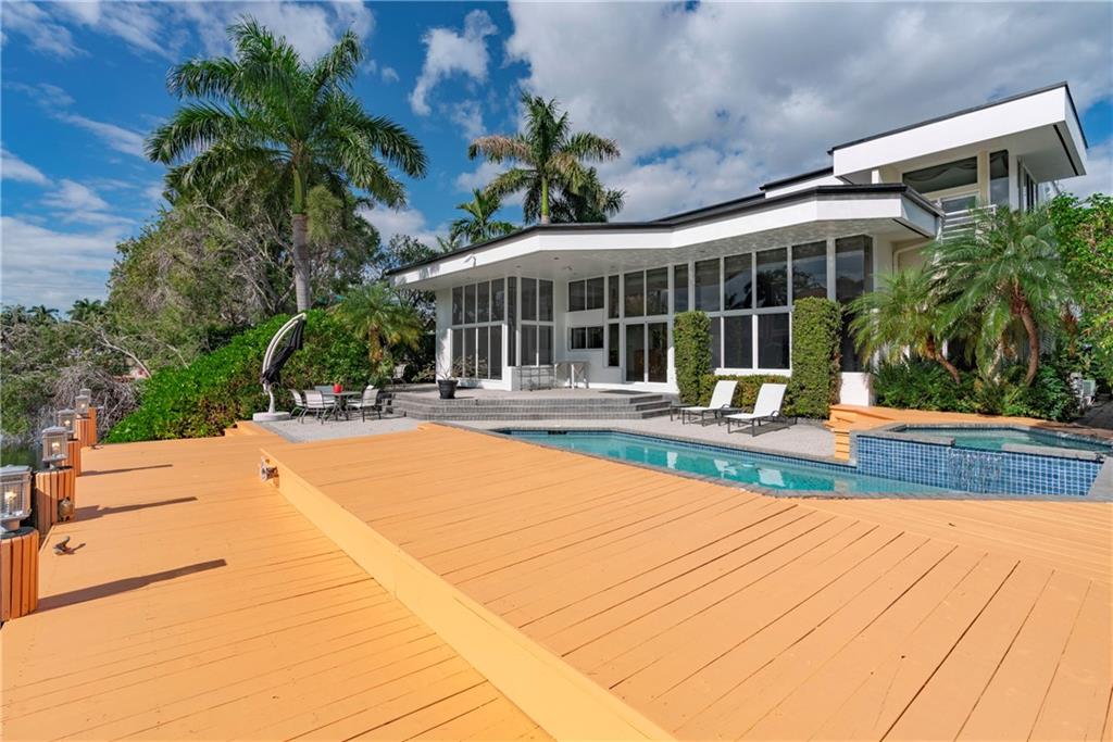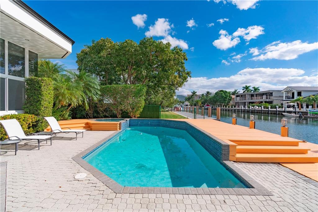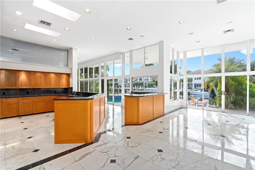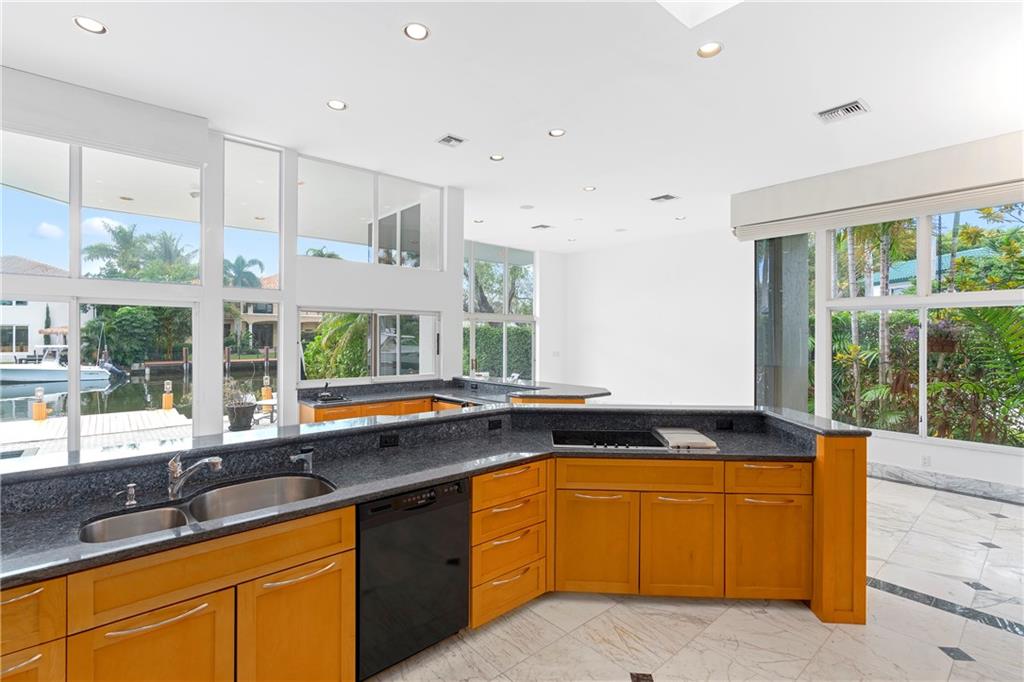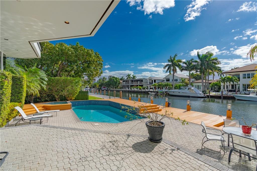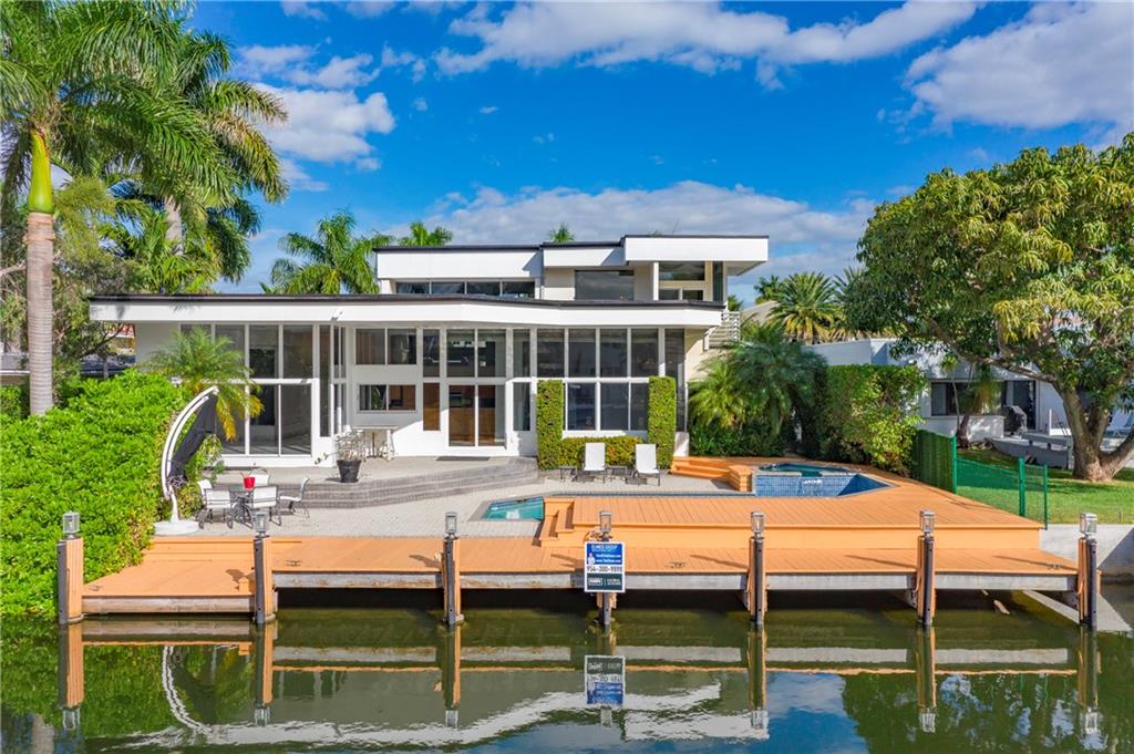 Gorgeous contemporary home w/fabulous finishes, details & features. 76' of deep water frontage, newer dock, just moments by boat to the Intracoastal. Bright & open floor plan, high ceilings, floor to ceiling windows w/water views & wet bar make this wonderful home perfect for entertaining! Gourmet kitchen that opens to the family room, dining room. Staff quarters. Granite & marble floors. Air conditioned garage. Lush tropical landscaping & outdoor lighting. Whole house 45kw generator with aluminum cover. Outstanding Las Olas/Seven Isles location ~ guard house with patrol. Walking distance to the beach, dining & nightlife.