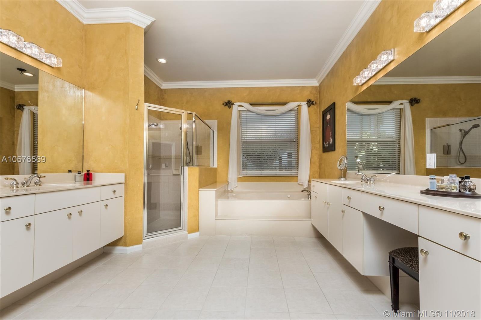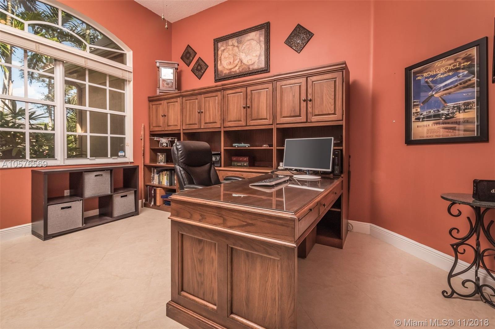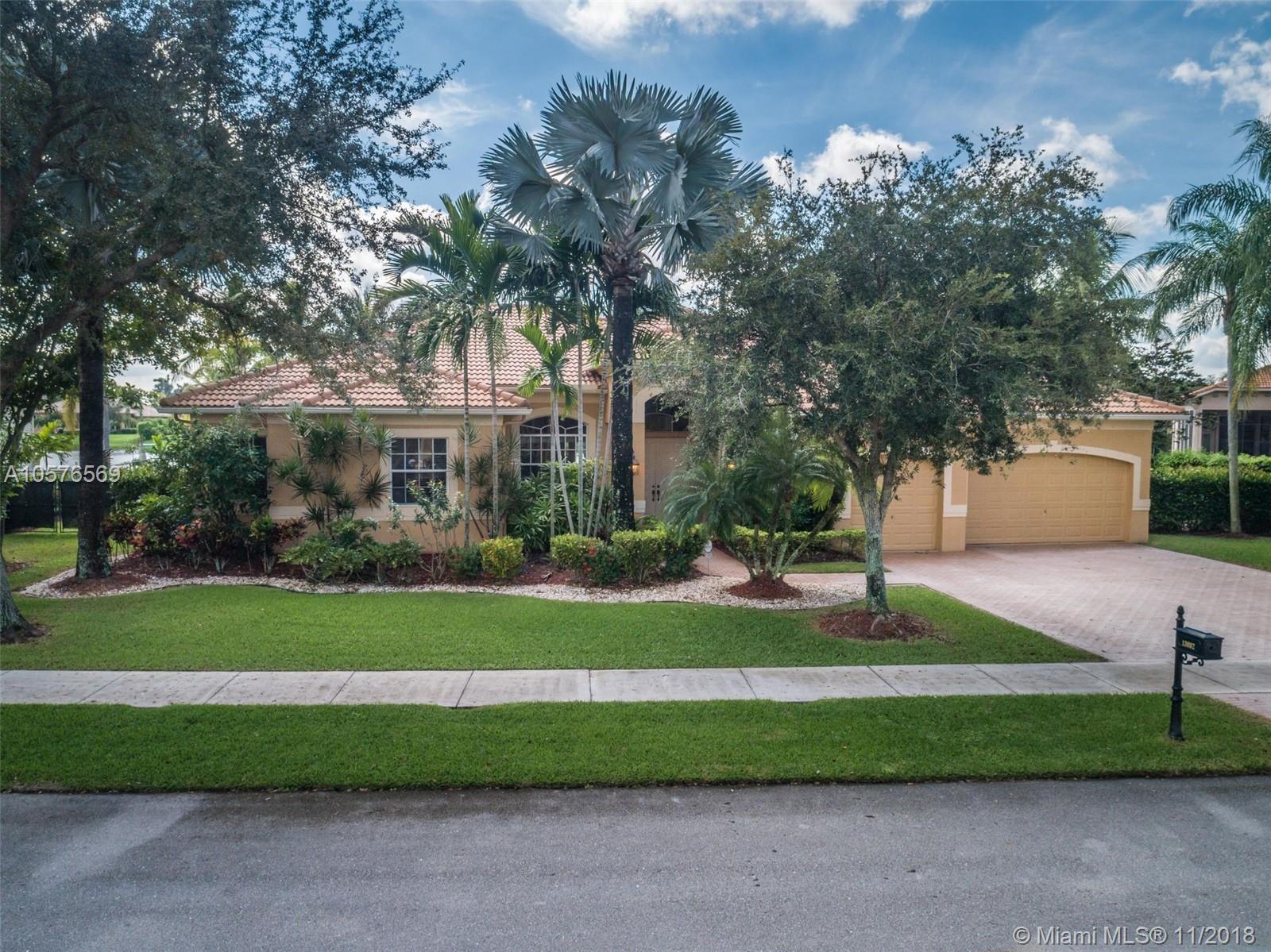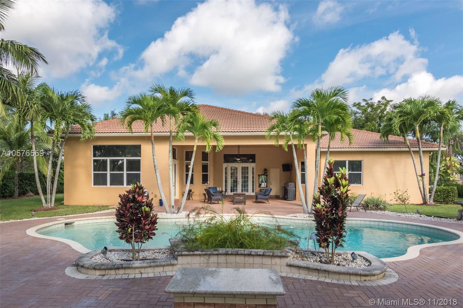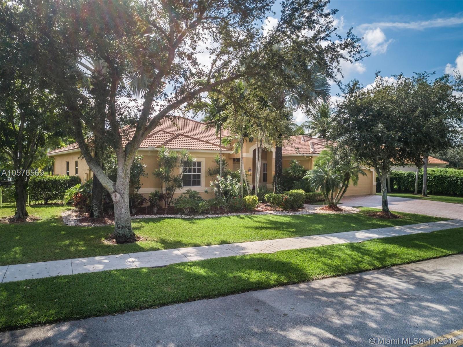 Imagination Farms is a west Davie outstanding community. On the NE corner of I75 and Griffin Rd, major highway access is a huge bonus. "A retreat in the burbs" is situated on a 43,308sf waterfront lot. Imagine your family enjoying this amazing space. Inside, find updates like elegant crown and chair rail moldings, oversized baseboards, neutral porcelain tile and real wood flooring, granite tops/backsplash, newer stainless appliances, cabinetry in pantry and a master closet. Salt system pool with new pump and waterfall. Also alarm, water filtration system, wall unit, all ceiling fans, light fixtures, garage openers and pool equipment stay. Natural light is abundant. Just feels like HOME. Office furniture is negotiable. Take a moment, view the video and photos of this inviting home.