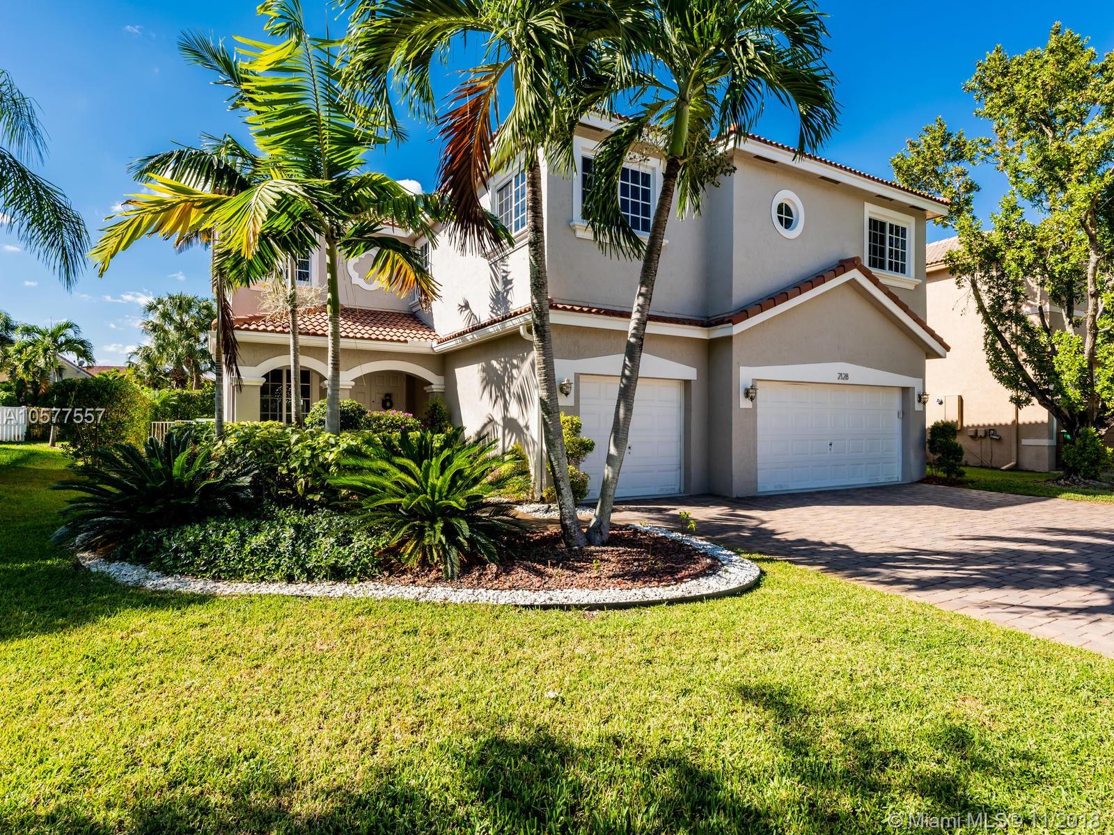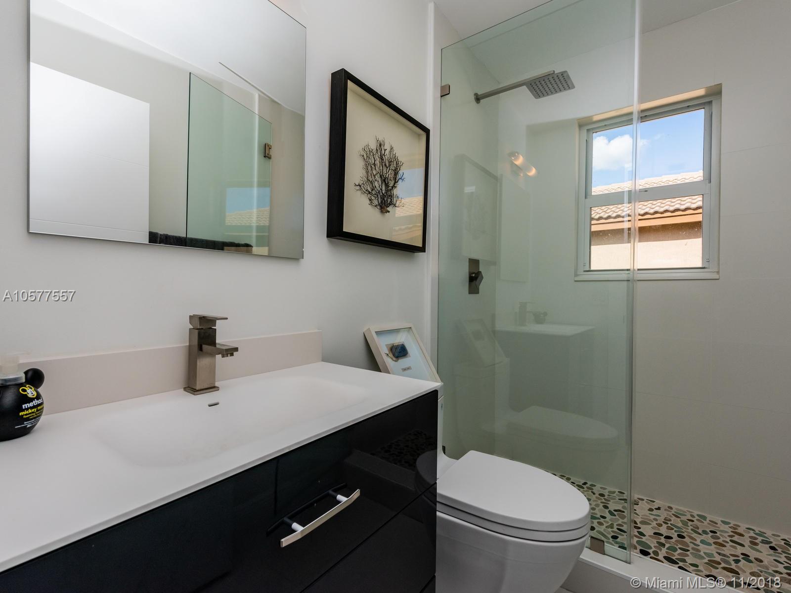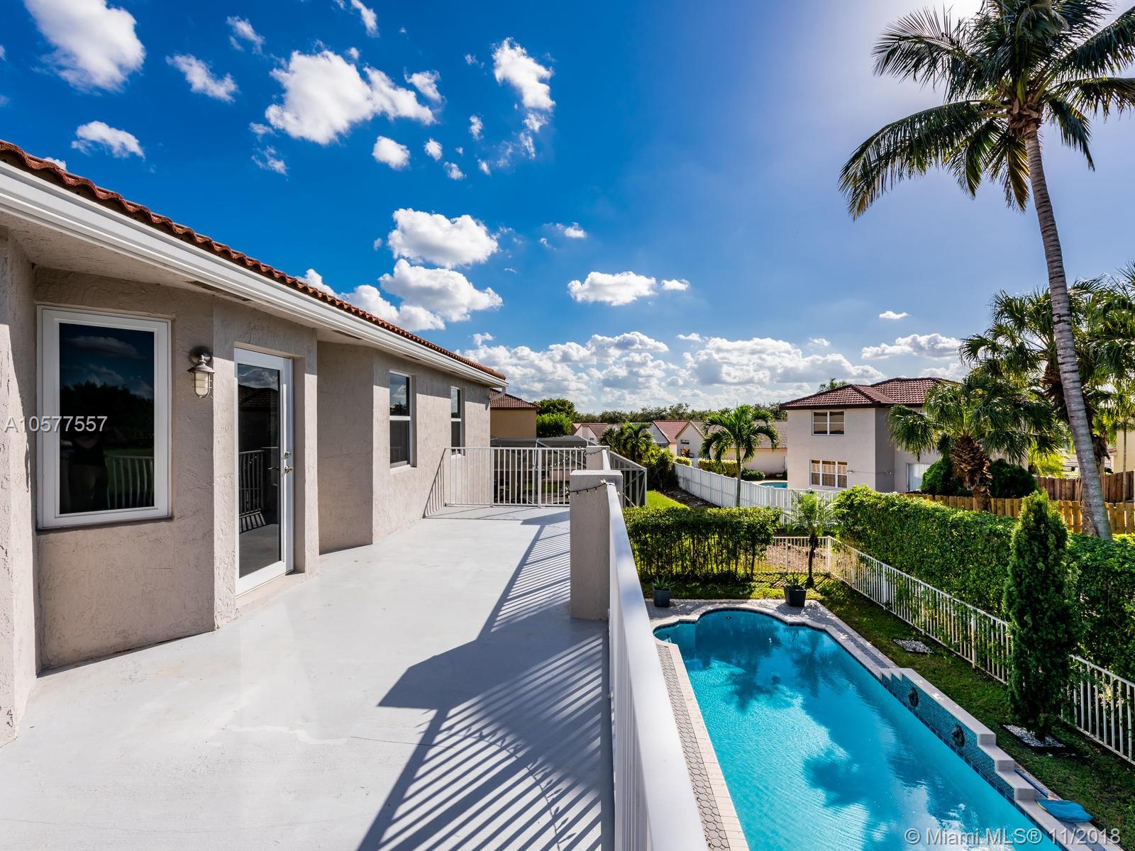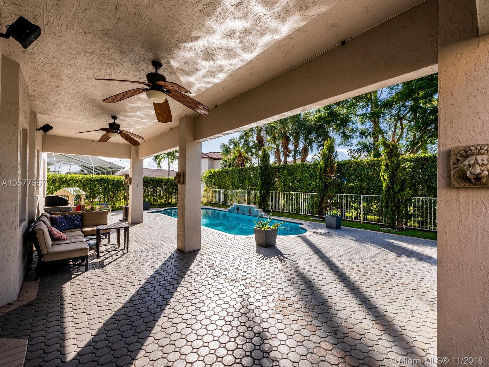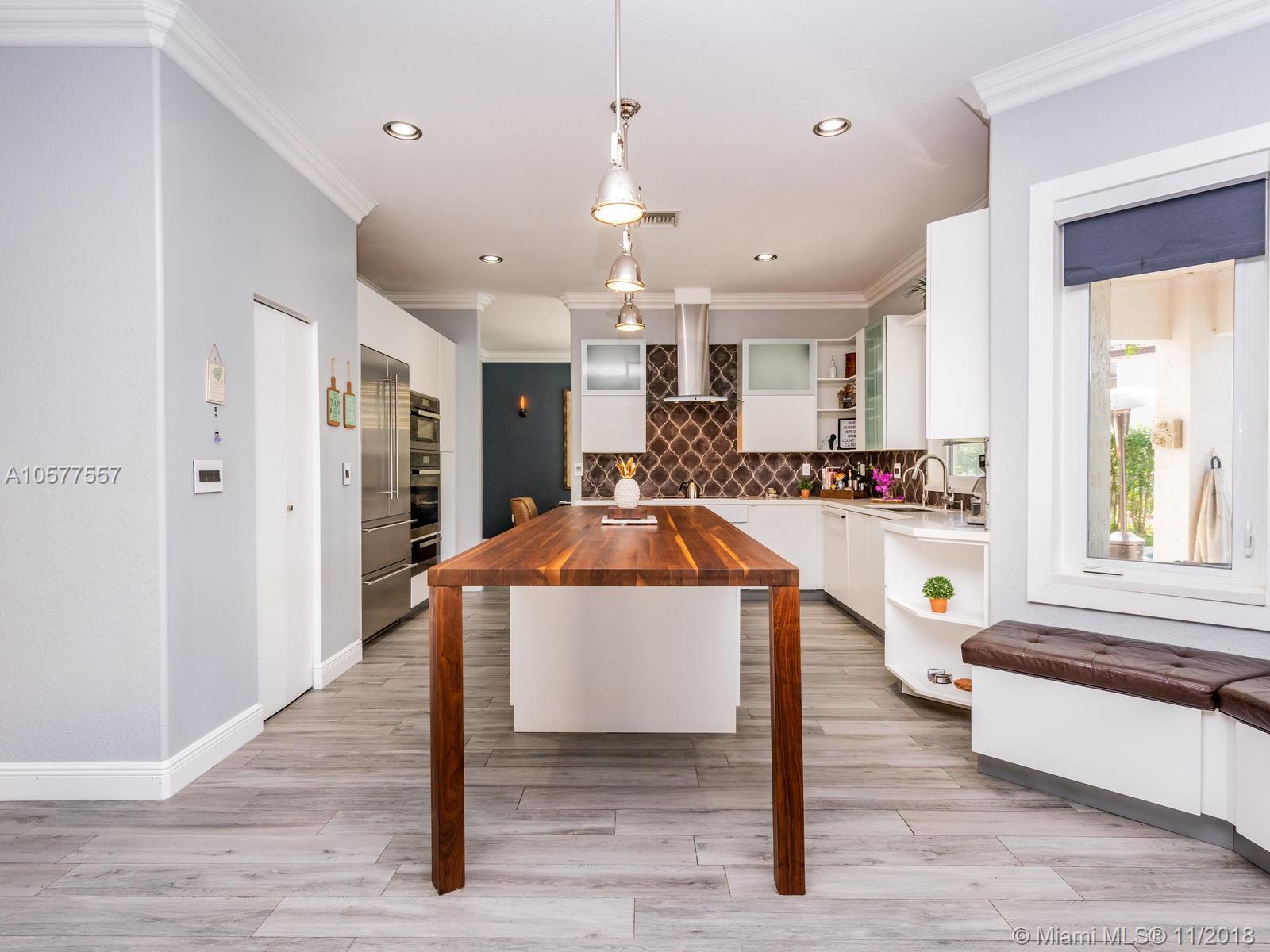 This gorgeous home is a Gem! Completely renovated inside out. Starting with all High Impact doors and windows, New paver driveway to all porcelain wood look tiles downstairs & hardwood floors on the stairs and upstairs. All new appliances, including 2 AC & water heaters. Remodeled Kitchen with white wood cabinets, Butcher Block center island and quartz counters. Top of the line kitchen appliances including Induction cooktop stove & beverage dispenser. All newly remodeled bathrooms and all closets with cabinetry. Oversized loft will accommodate 7th bedroom. Large master bedroom with sitting area and private balcony. Master Bath has a steam teak shower. Newly diamond bright pool with salt chlorinating system. Outdoor built-in grill/pizza oven & more. The home also backs up to a greenbelt.
