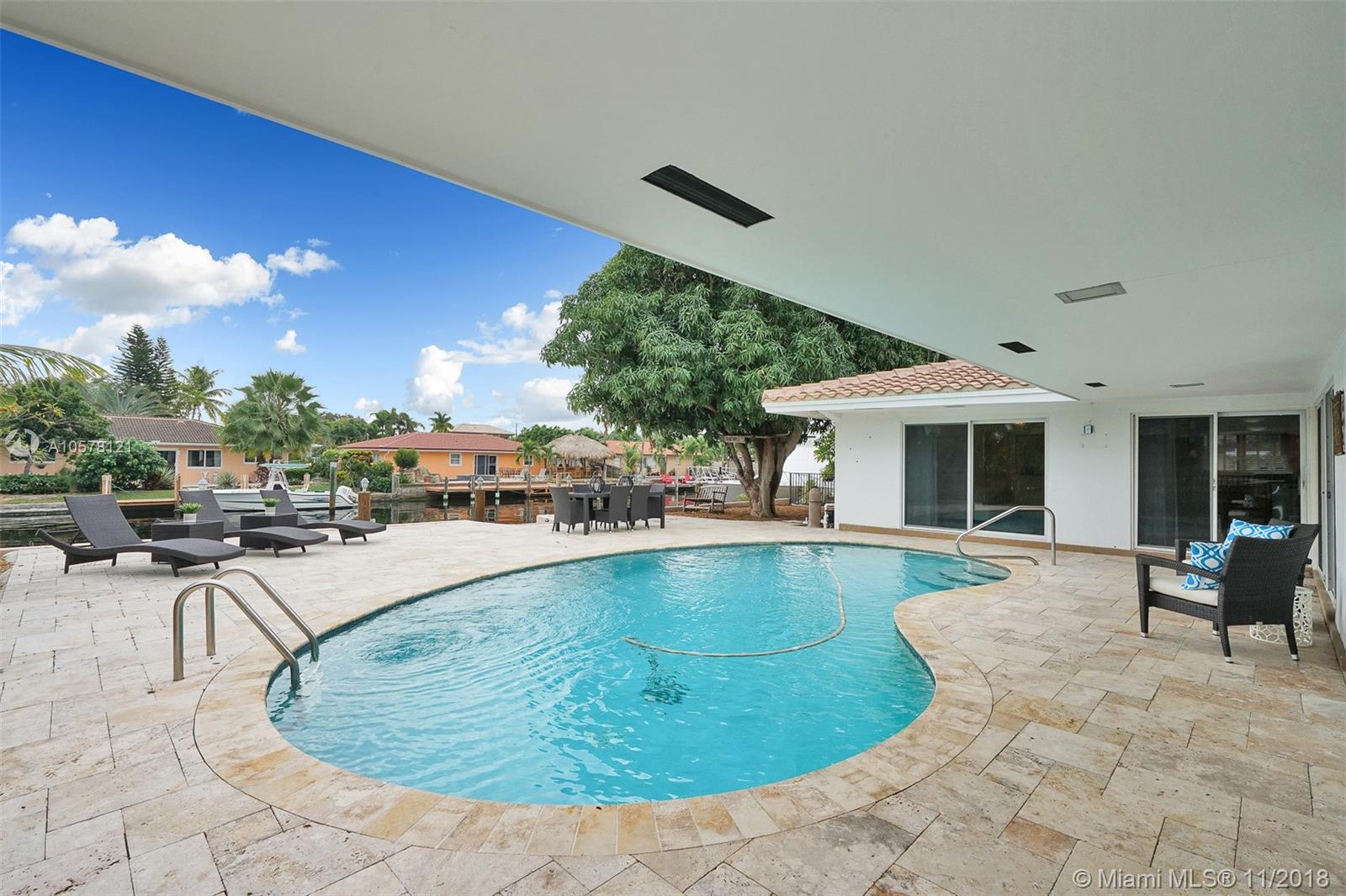 GORGEOUS WATERFRONT 3BED/3BATH POOL HOME, FULL 2 CAR GARAGE WITH DEEP WATER-NO FIXED BRIDGES IN POMPANO ISLES! IMPACT GLASS WINDOWS & DOORS! RENOVATED CHEFS KITCHEN FEATURES WOOD CABINETRY, GRANITE COUNTER TOPS, STAINLESS STEEL APPLIANCES-WOLFE INDUCTION COOK TOP, BUILT-IN KITCHEN AID 42' REFRIGERATOR, KITCHEN AID OVEN AND DISHWASHER & STAINLESS STEEL EXHAUST FAN INSTALLED 02/2017. OPEN,SPLIT BEDROOM FLOOR PLAN W/ TONS OF NATURAL LIGHT. TILE FLOORING THROUGHOUT. HOME SITS ON 75' OF WATER FRONTAGE. CANAL WIDTH 80', 65' x 8' WIDE DOCK. LARGE OUTDOOR DECK GREAT FOR ENTERTAINING. ULTRA EFFICIENT HYBRID HEAT PUMP 50 GAL WATER HEATER 2016. AC 2014, NEW WHIRLPOOL TUB 2016 AND STACK-ABLE WASHER/DRYER! DIRECT OCEAN ACCESS IN JUST MINUTES!