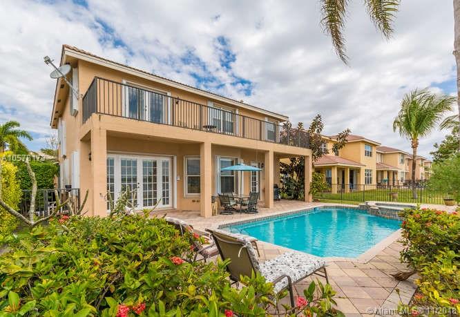 Stunning 5 bedroom plus loft single family home in Sunset Falls. This elegant Miranda Model home features his and hers master bathrooms, master bedroom with balcony and amazing lake view. In-laws bedroom on the first floor, cabana bath, 3 car garage, driveway for 4 cars. One garage space can easily be converted into a home office. Accordion shutters. Close to the main entrance and within walking distance from the clubhouse. Come and enjoy the heated pool/Jacuzzi overlooking Broward County largest and most amazing lake view.