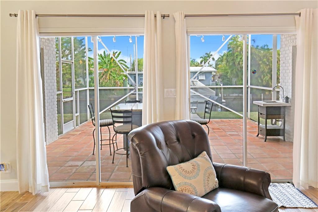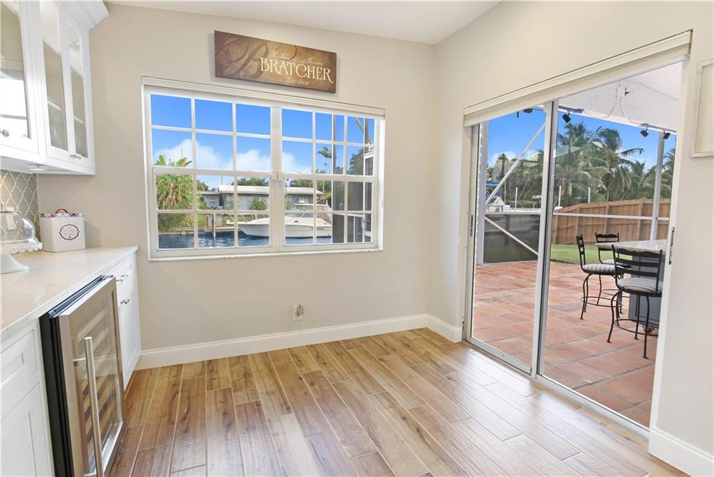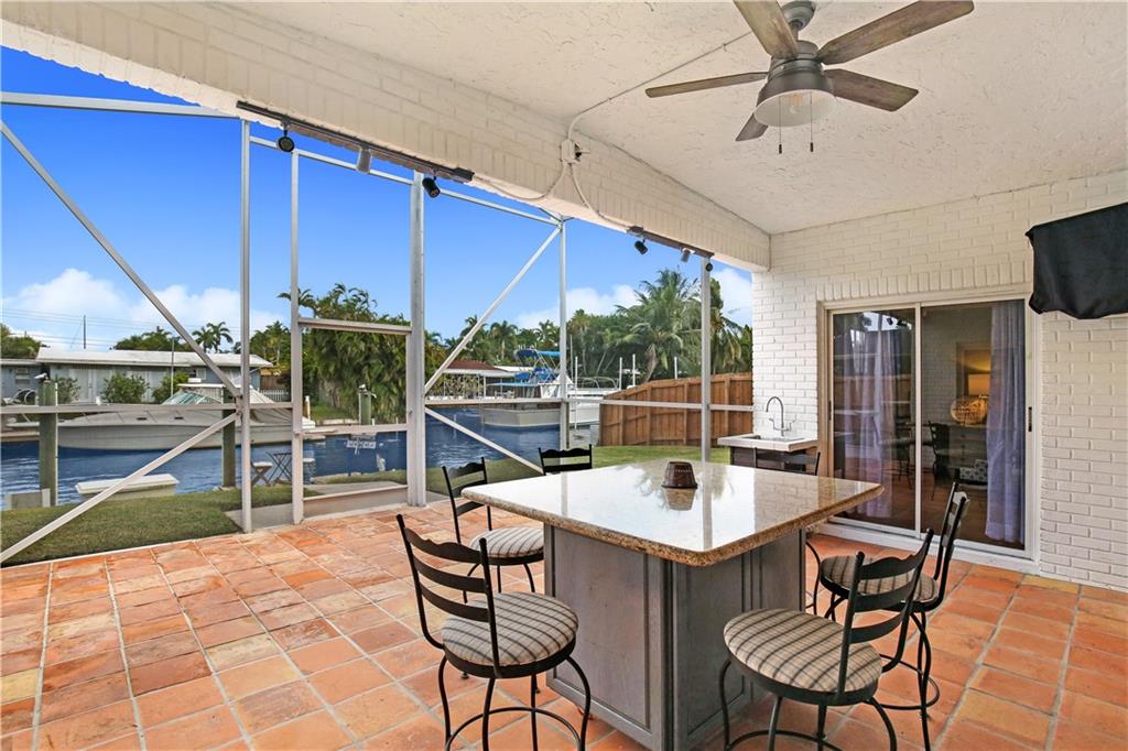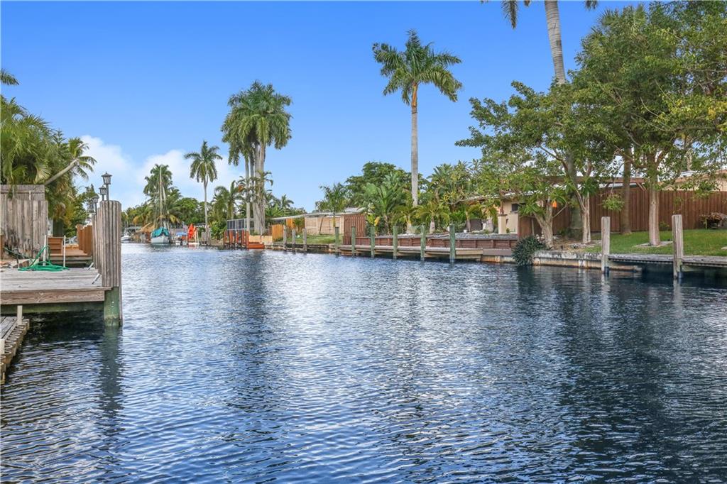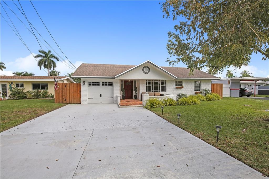 Stunning Lauderdale Isles home with timeless renovations. Beautifully updated 3BR/2BA with 60ft on deepwater/ocean access canal. Spacious floorplan with approx 2300 sq ft, vaulted ceilings, and new porcelain plank floors continuous throughout living areas and bedrooms. Dreamy, white open concept chef's kitchen with cooking island and counter seating, breakfast area, top stainless appliances, quartz counters, farmhouse sink, and recessed lighting. Sliding doors seamlessly blend interior with outdoor living. Generous master bedroom with walk-in closet, dual sinks and frameless shower. Screened east-facing patio for year-round entertaining and west facing patio to catch the sunset. Newly permitted garage door for 1CG with 4 driveway parking.