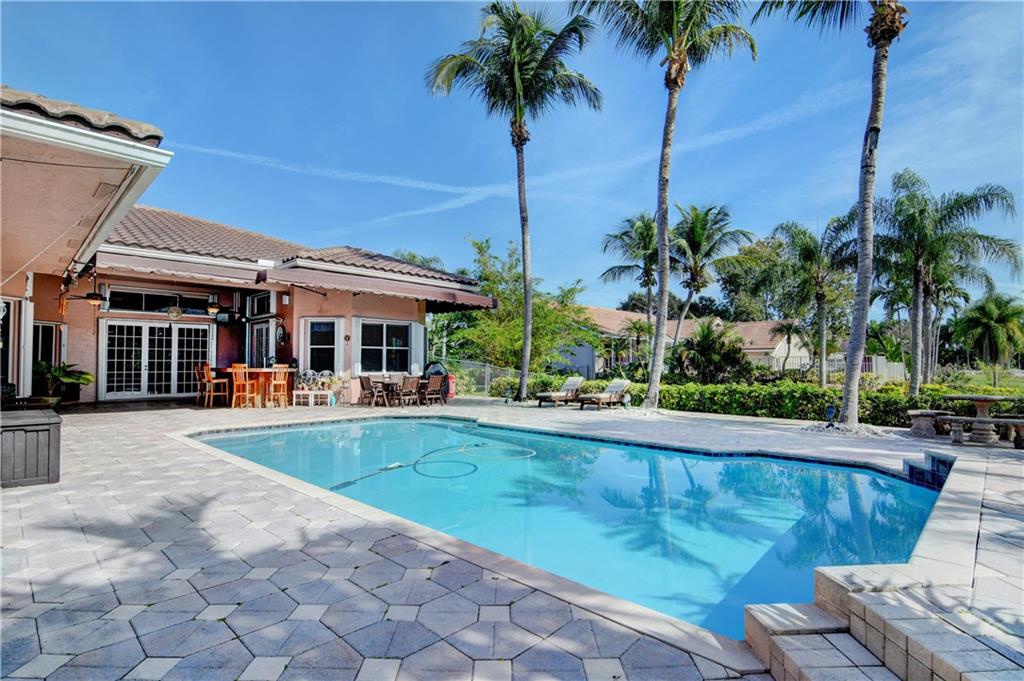 One of a kind Stunning Custom Built 5 bedroom 3 and 1/2 bath home on a 1.02 acre lot. No HOA. New roof and gutter system completed 2016. Home boasts huge outdoor patio/pool area. Oversized salt water pool was resurfaced with Diamond Brite and retiled with mosaics in 2018. Pool pump and filter replaced in 2018. Big open kitchen with stainless steel appliances includes double ovens and new cook top in 2018. Home is equipped with Reverse Osmosis water filtration system. Spacious living area with French doors leading to patio from either family room or living room. Updated LED high hats throughout home. Washer and dryer replaced in 2016 with 5 year extended warranty. Master bedroom has sitting area and french door leading to pool area, built in walk in closets and Acacia hardwood floors.