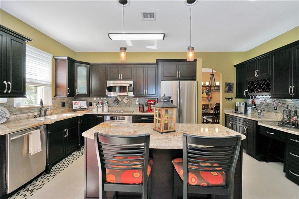 MAGAZINE BEAUTIFUL! FROM OUR DESIGNER COLLECTION! Totally remodeled and magnificent from top to bottom. 5 bedroom 2.5 baths of glam! The kitchen is a work of art, cabinets, built in wine bottle and glass holder built in, under and over counter lighting, granite, GE Profile appliances, island plus walk in pantry. All open to family room. Remodeled bathrooms, all done in today's colors. Gorgeous ceramic first floor, steps and second floor laminate. A/C 2 yrs. Master suite, his/her sink/whirlpool tub and separate shower. Large secondary bedrooms. Your own private back yard resort! Privacy fence, 7-8 person Spa, Fountain, Pergola, Raised flower beds, Fire bowl, Tiki Lamps. Covered patio w/grill area. Security system with cameras/monitor. 3 car driveway. Dream home in perfect condition.