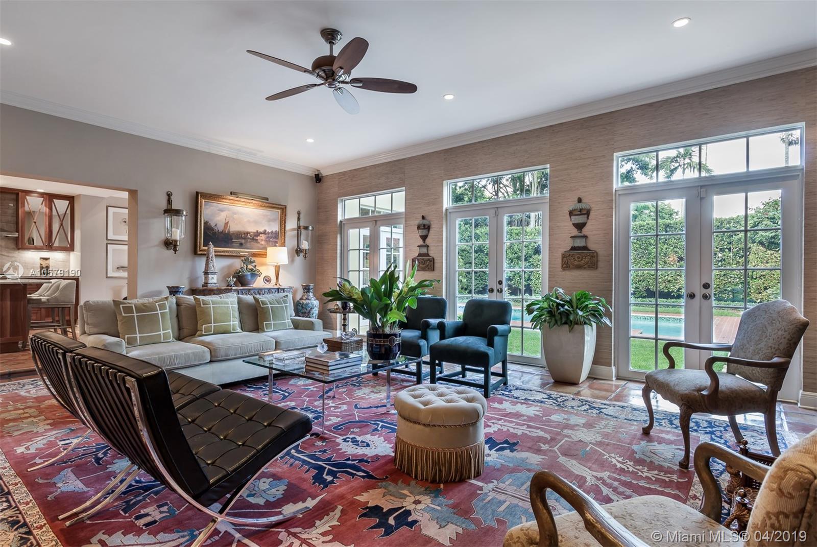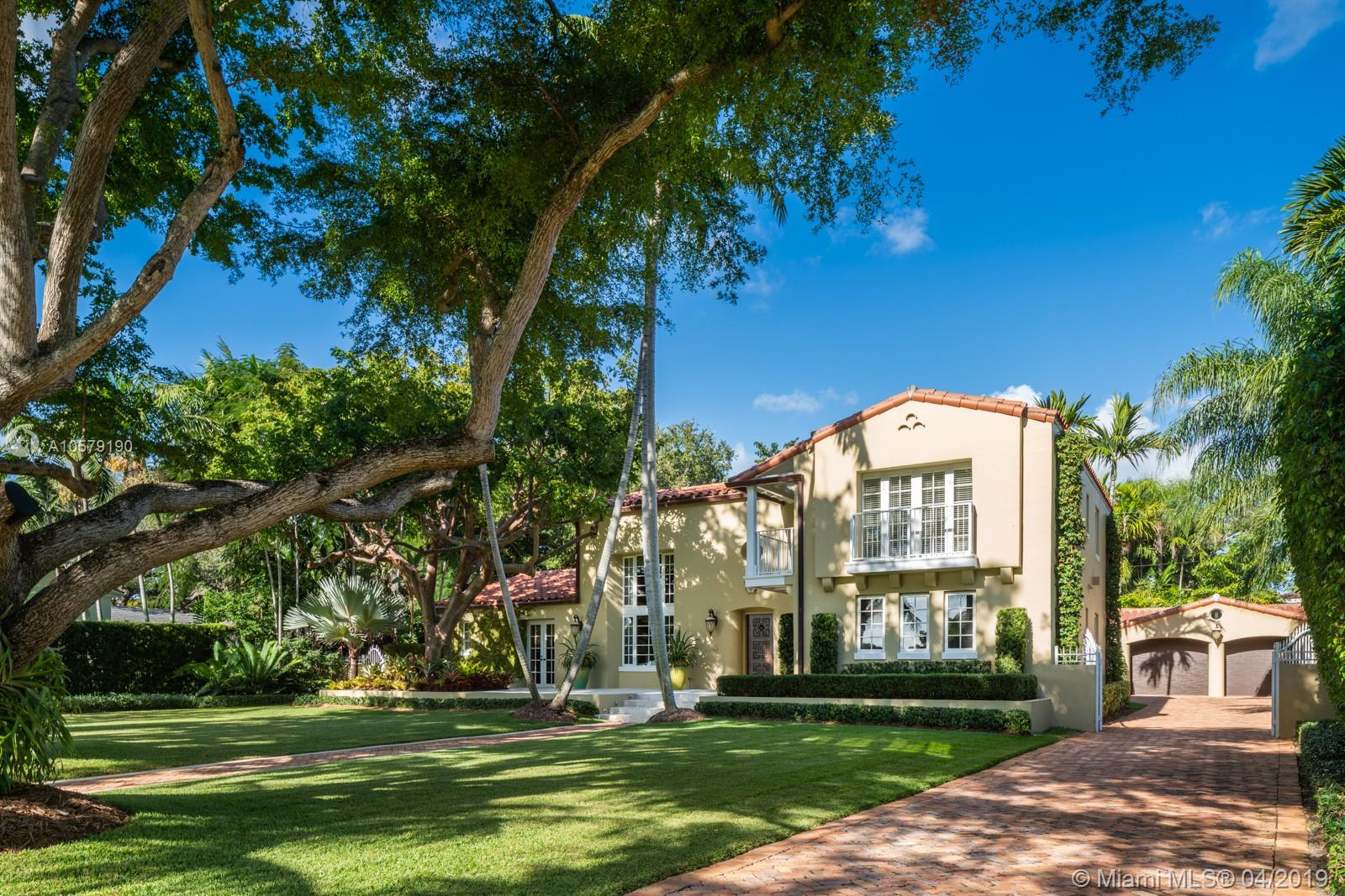 Historic 4,937 sq. ft. home originally designed in 1938 by noted architects Kiehnel & Elliott. This 4 bed/ 3.5 bath residence offers unobstructed views of the greens and Banyan trees of the Granada Golf Course. Natural light through massive windows in the living room enhances the 25 ft. vaulted ceiling with hand stenciled beams. Tromp l’’oeil walls surround you in the formal dining room. A cherry paneled library, large family room and breakfast room overlooking the large pool. This historic landmark property was renovated in 2015, crafted with quality finishes and details.Home also features kitchen with Sub-Zero and Wolf appliances, outdoor entertainment area, renovated 1 bedroom/bath guest house with vaulted ceiling, 2 car oversized air conditioned garage and a full house generator.