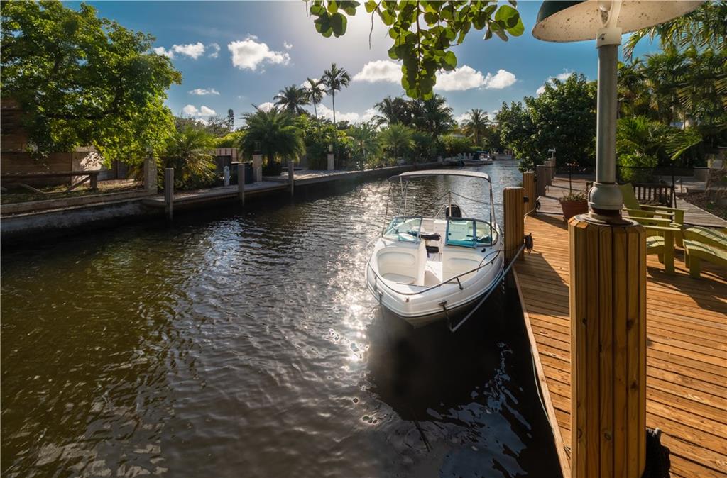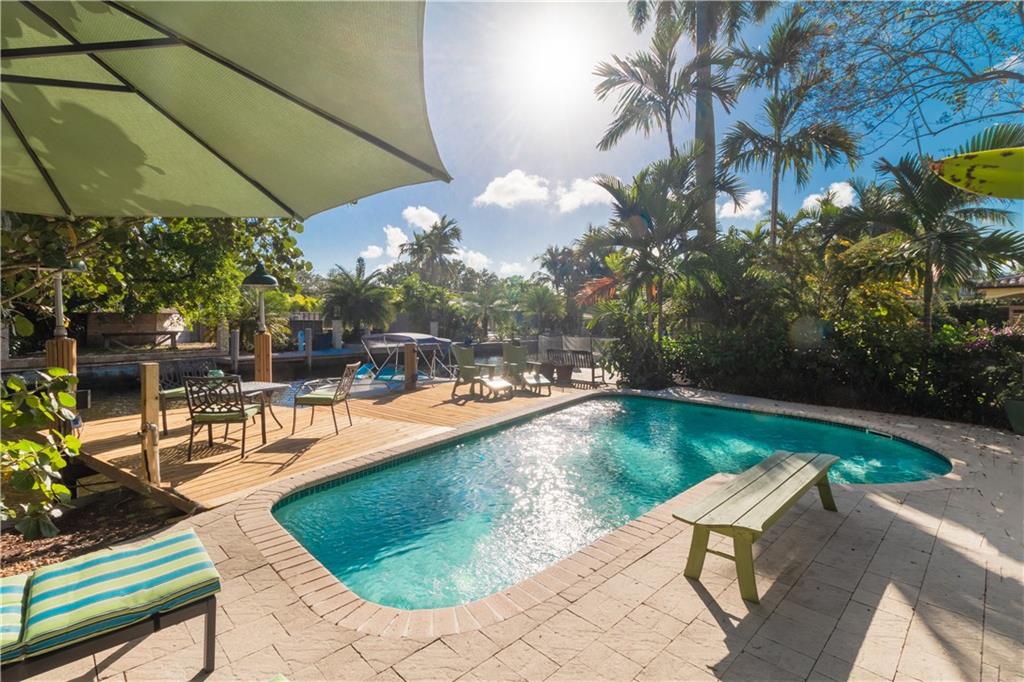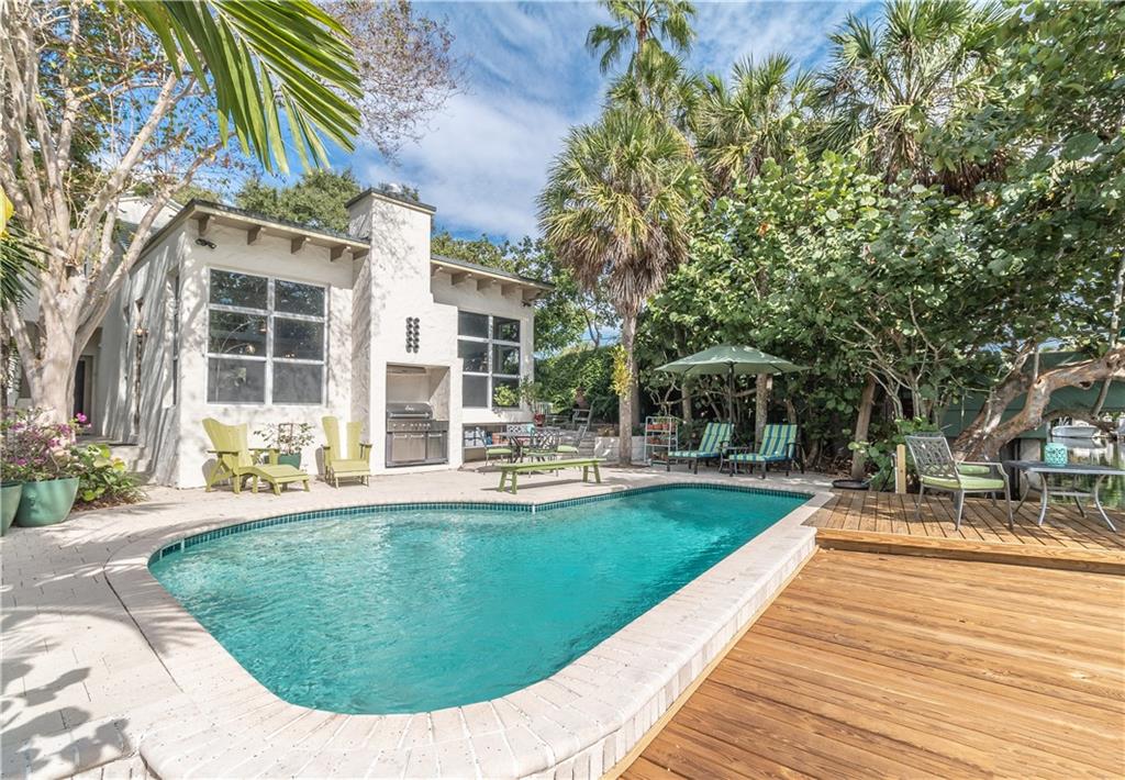 Rio Vista Charmer 4 Bedrooms 3.5 bathrooms, Corner Lot, On the Water, with a pool, boat dock and across the street from the park! Amazing location in desirable Rio Vista! This architect?s personal residence was well designed and built to last! Newer roof, hurricane impact windows, dual zone A/C, natural gas cooking and heating, lush landscaping, paved drive, unique features throughout, sun filled rooms from various windows and sky lights! Priced to sell!