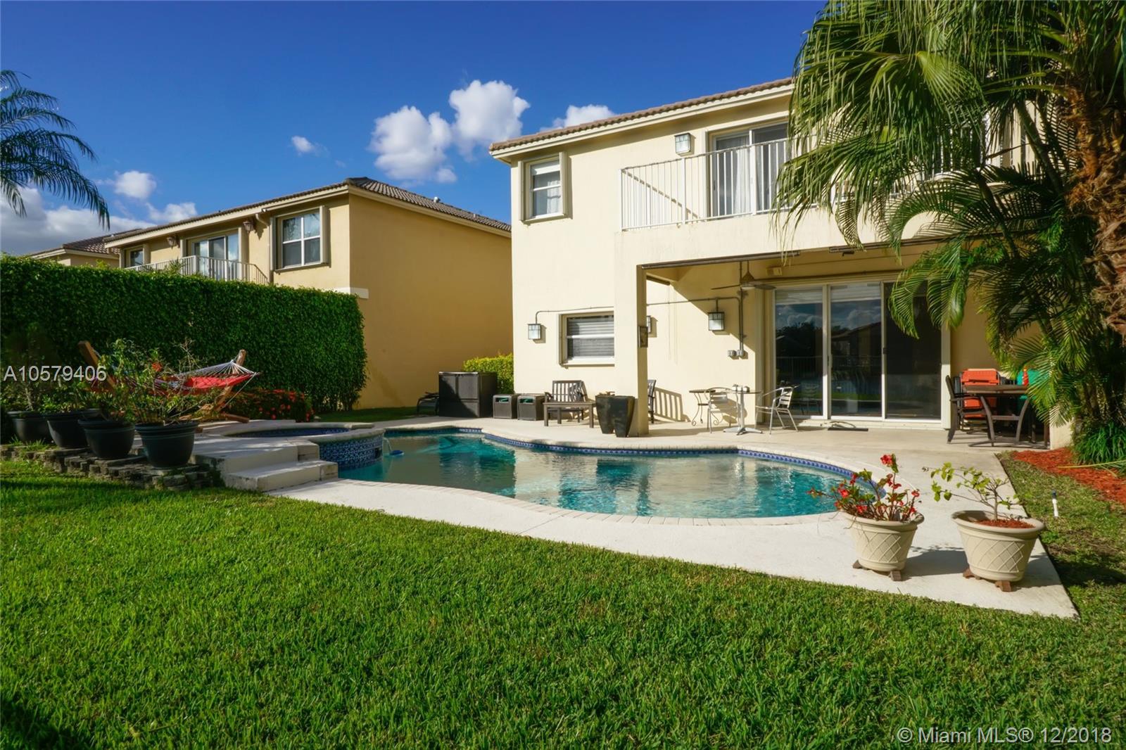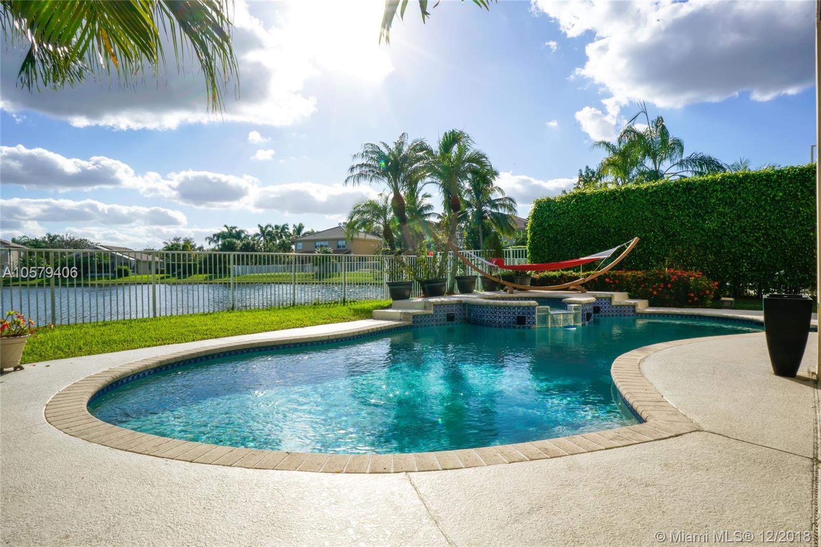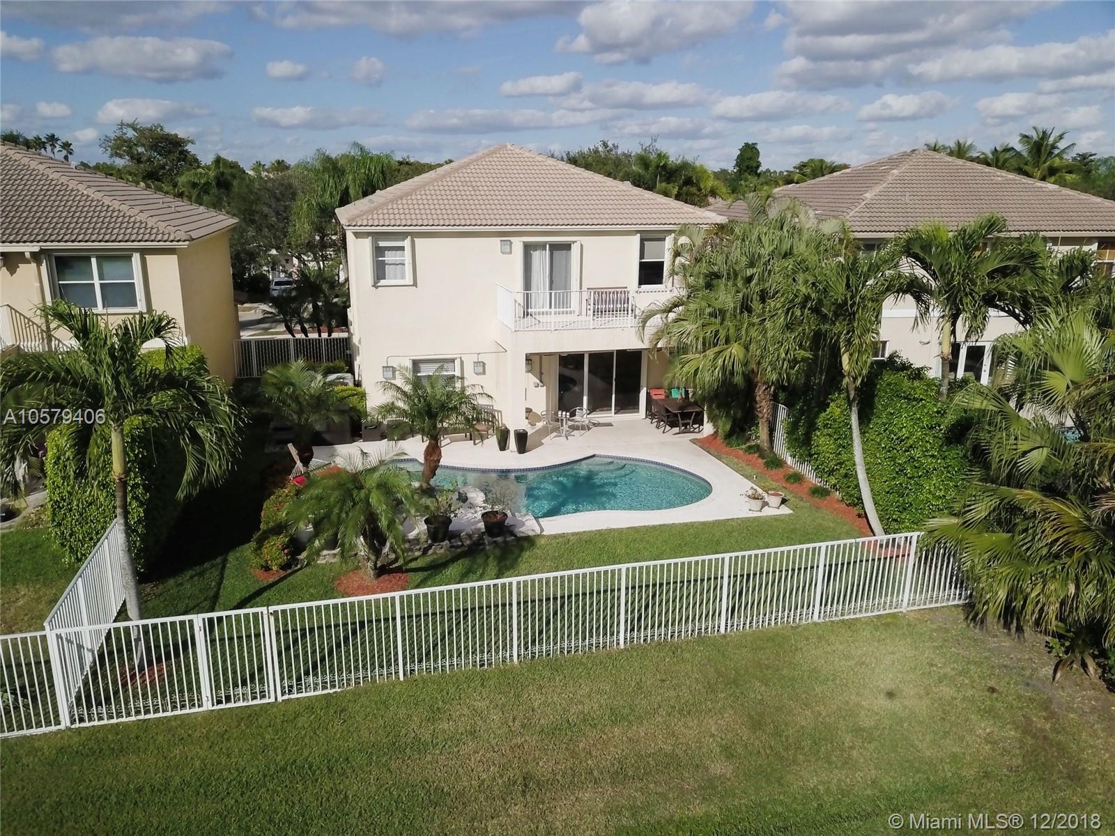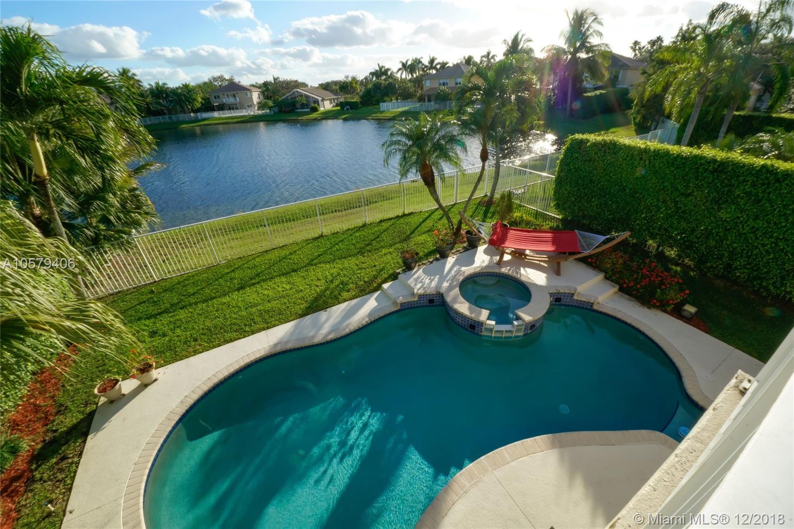 Welcome home to this beautiful 4 bed, 2.5 bath home in Emerald Estates, featuring free form pool & spa and gorgeous wide lake views. Marble floors in social areas, wood floors on stairs and in bedrooms. New wood staircase railings. All bedrooms upstairs. Second bathroom beautifully upgraded. Huge master suite with sitting room/study/office and huge walk-in closet. Upgraded LED lighting with additional high hats throughout. Updated kitchen with s/s appliances, granite countertops, wood cabinets and center island w/ wine fridge. Tankless water heater, accordion shutters on all windows.Tons of storage in garage with overhead storage system. All A-rated Weston schools. Close to shopping, highways. HOA fee covers lawn maintenance, cable TV, alarm monitoring and more. See attachments.