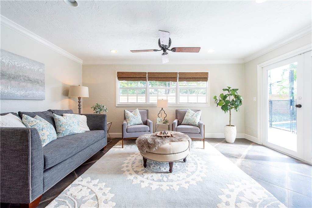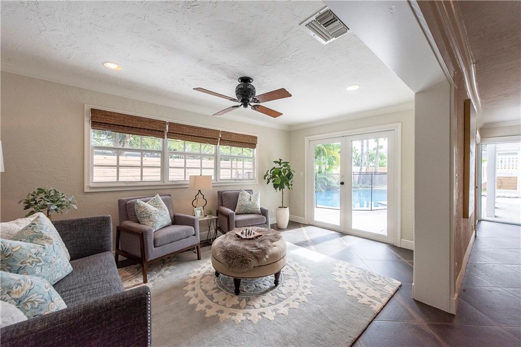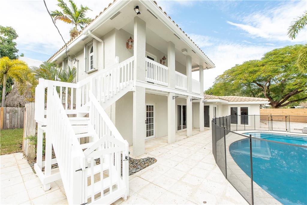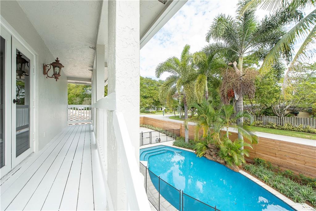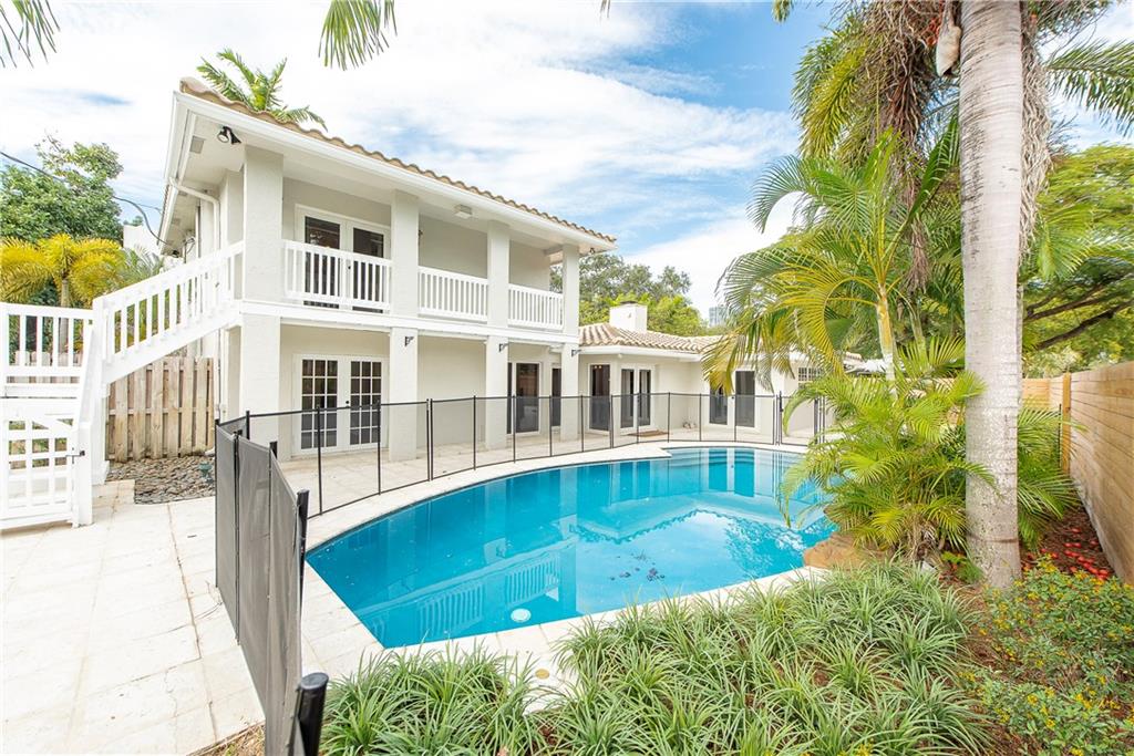 Oversized corner lot that shows like a model home. The open kitchen offers a vintage gas range, new white cabinetry and state of the art lighting. Impact windows, beautiful pool and a ton of outdoor usable space. 2 bedrooms downstairs with 2 bath, an office and a playroom. Master bedroom upstairs with a balcony overlooking the pool and outdoor stairs to the backyard.
