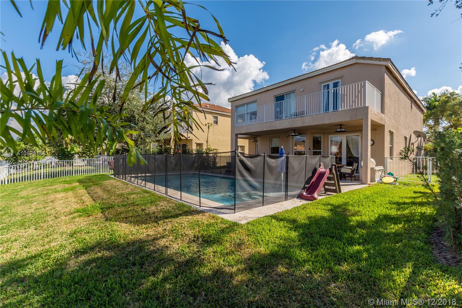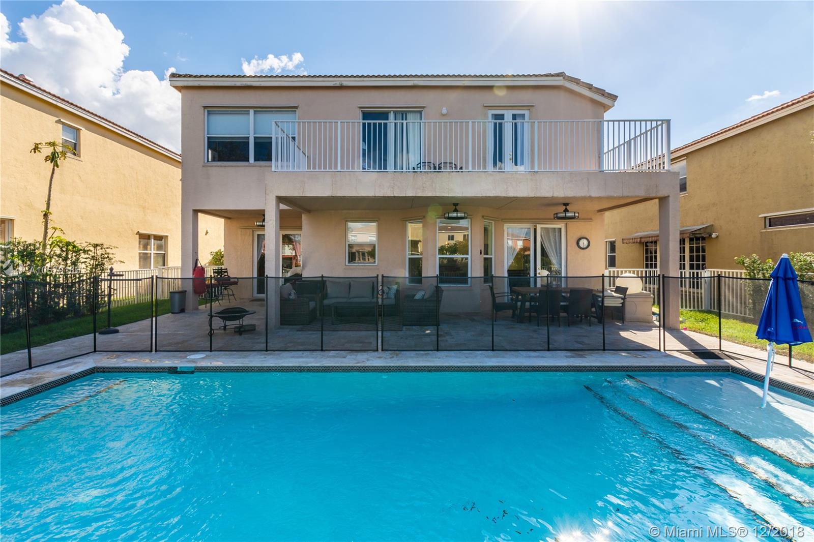 This captivating Vizcaya model will not last. 4 bedrooms, plus and office (easily convertible to a 5th bedroom) and 2.5 Bath rooms. So many upgrades! All ceilings are upgraded to smooth finish with recess lights and Tray finish on family areas. Kitchen upgraded to elegant wood cabinets, granite counter tops and top of the line stainless steel appliances.Wood style porcelain tiles on the first floor and wood floors on second floor and stairs. Relax and enjoy the brand new 30x15 salt water pool ( only 6 months old ) with the splendid lake-view. Located in the resort like community of Riviera Isles. You will love this Guarded Community's multiple amenities, gym, tennis and basketball courts, one of the best pools in west Miramar, and a 3.3 miles trail for walking, running and biking.