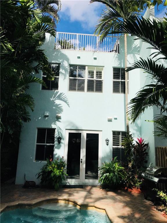 Stunning better-than-new, end-unit townhome part of a 6 unit complex with no HOA in downtown FTLs quiet, dog walking, serene, treed, HOT Tarpon River area, walk to Las Olas! Situated between multi-million $$$ mansions and Lewis Landing Park. Superior location to others on end street. On a deep lot, no grass with private pool, tropical foliage, Palms 100s years old Live Oaks! Original Realtor owner, updated in the last 2 years, high end finishes: marble floors, granite tops, 8' solid core doors, SS cooking; 10' ceilings on 1st, 9', 2nd; vaulted, 3rd. Plantation shutters, Key West vibe in! Watch yachts on New River from the front useable balconies. Tan and/or garden on the massive, private L-shaped roof deck. Furniture negotiable. Steel roof, bank vault construction saves $$ insurance!