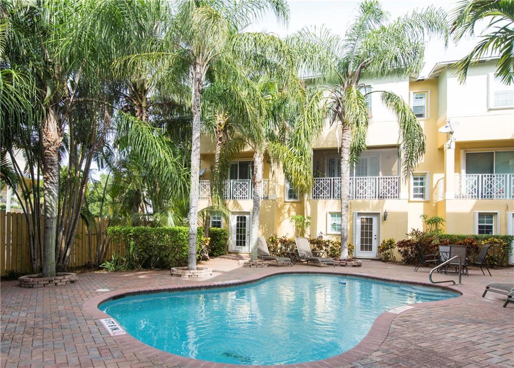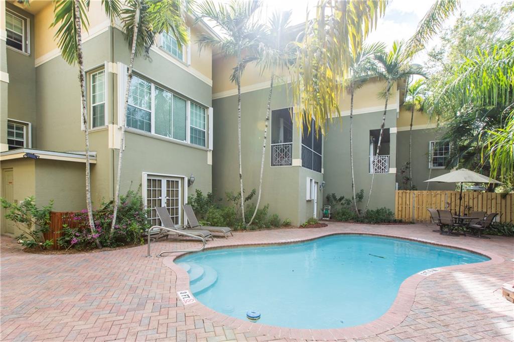 Welcome Home To Waverly Place. This is upscale Urban Living at its finest. This completely remodeled 3 story townhouse is turn key and ready for its new owners. This home boasts real cherry wood floors throughout the living areas, brand new AC (2018), Tankless Water Heater (2018) crown molding, custom mahogany plantation shutters, granite counter tops, stainless steel appliances, custom bathroom vanities, master bath has dual his and her sinks, and private patio area for entertaining outside. This 2 bedroom 2.5 bath and a den is spacious and has a 1 car garage. Beautiful community pool and walking distance to Downtown Las Olas. Easy access to the highway, airport, downtown, and the beach. HOA Includes water, sewer, trash, amenities, pest control, building exterior and roof.