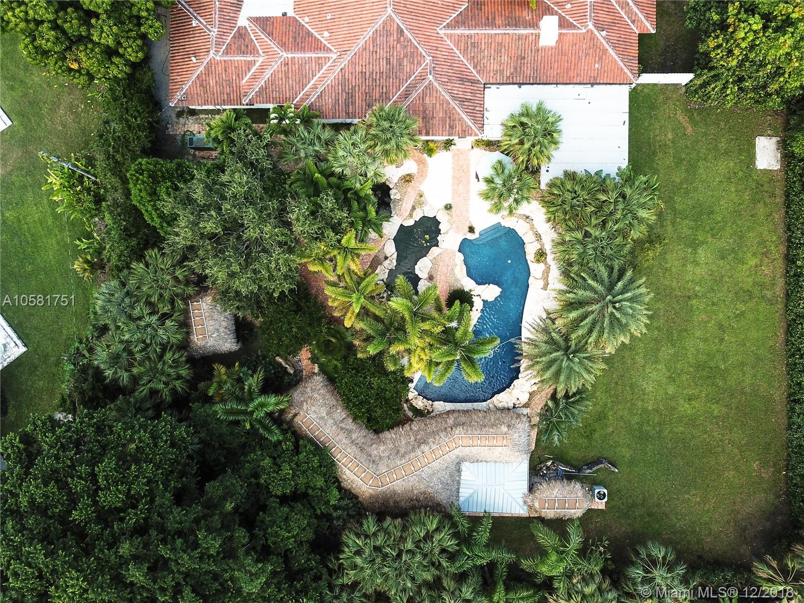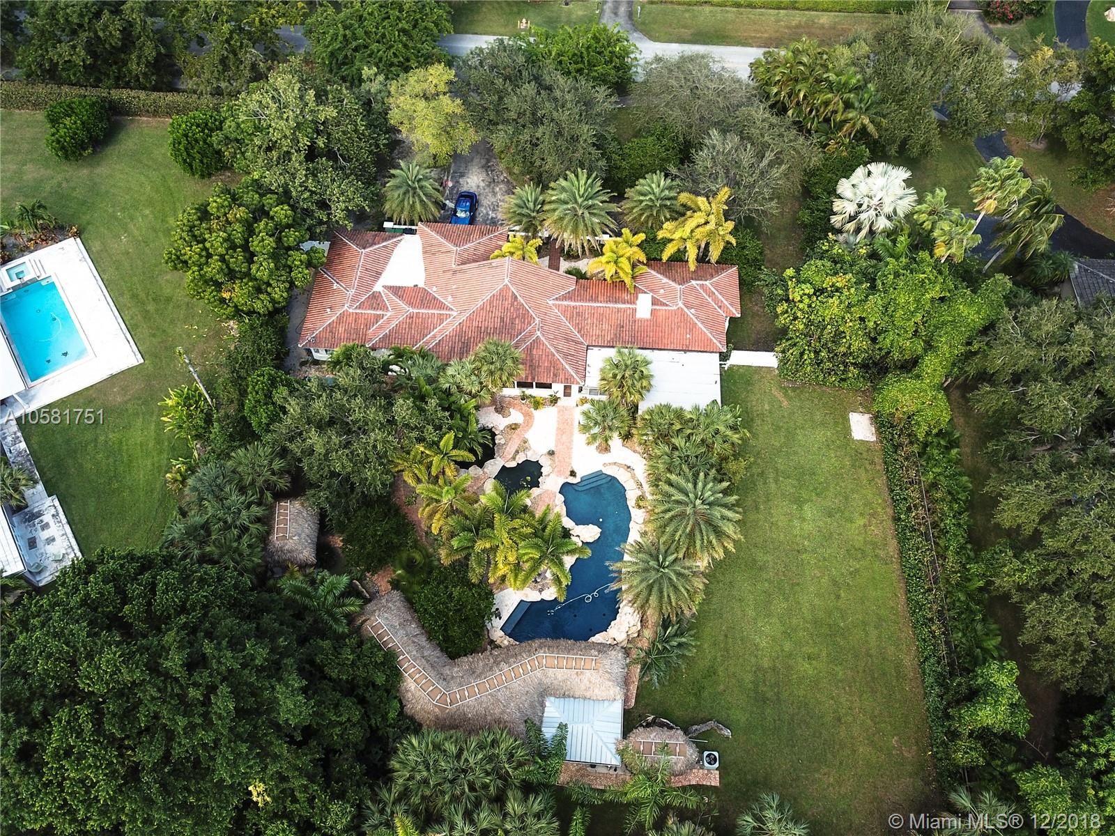 This charming updated 5 bedrooms, 5 baths Pinecrest home sits on a beautiful acre lot. The spectacular back yard has a resort feel to it. The tropical vegetation sets the tone - the oversized rock pool & water fall blends in an exotic atmosphere with an outdoor bar & tiki hut, a koi pond & an eco friendly chickee hut & more room for a tennis court! The home was fully updated with beautiful Californian oak wood floors throughout, impact windows, updated bathrooms & a new roof. The open spaces & bright light give the house a European vibe. The kitchen is equipped with top notch appliances, sub zero fridge, Wolf gas range, 2 Wolf dishwashers, 2 Wolf ovens & a Wolf microwave. The charming house is minutes from A+ rated International Private & Public schools, fine dining & shopping.