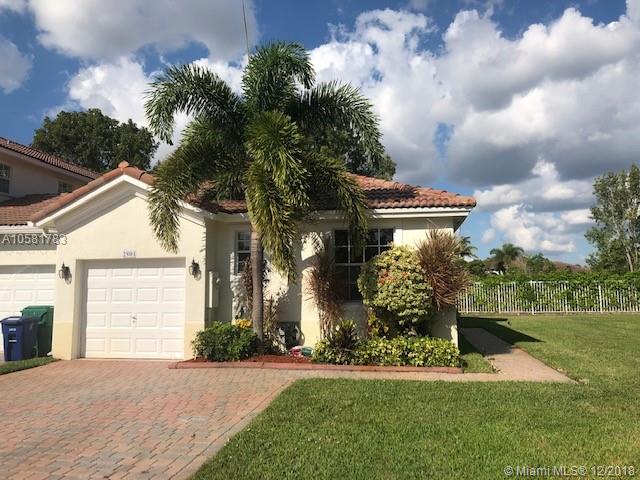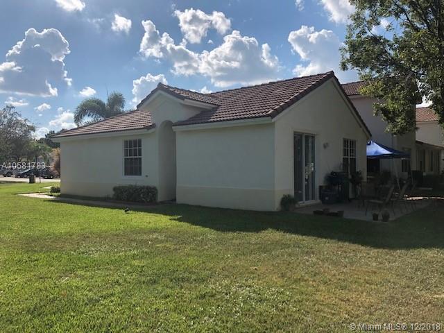 One-story 2/2 corner home sitting on oversized lot. Property features open concept, tiles throughout, large master suite with walk-in closet, dual sinks, large shower, and an open patio. Property is located in desirable Sunset Lakes with access to tennis and basketball courts, pools, playgrounds, gym, etc. Association includes basic cable, lawn, and alarm.
