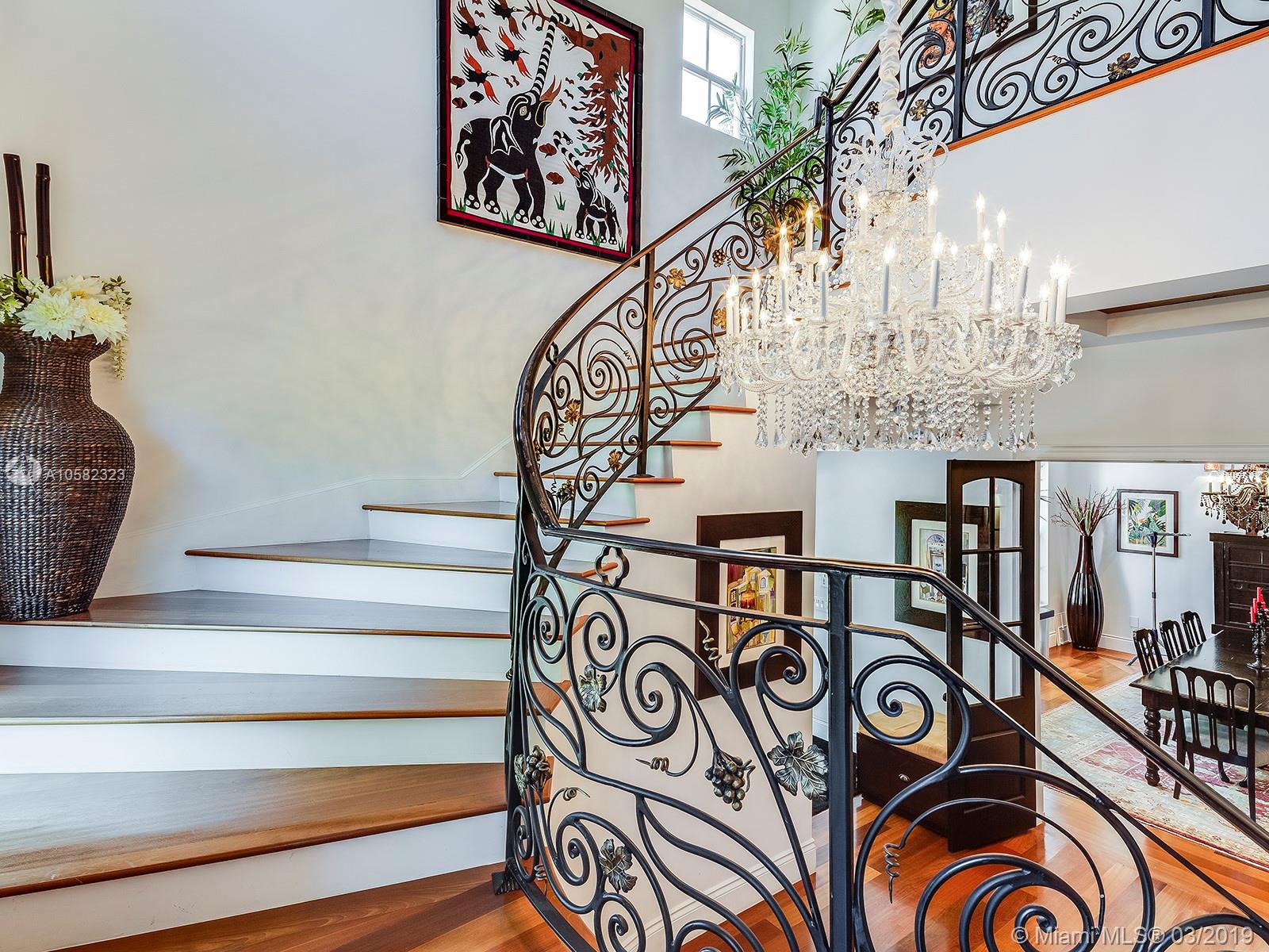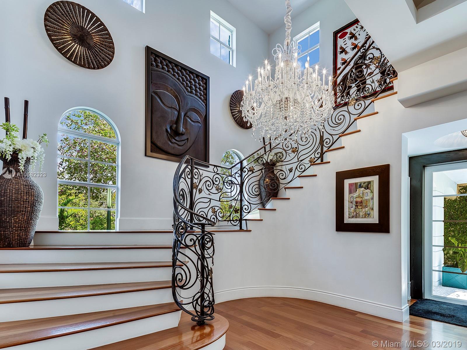 Custom built in 2008, this 3 structure Mediterranean Feng Shui inspired smart home features a sleek and modern kitchen, Brazilian cherry wood and Marble floors, 14' ceilings and an enchanting great room with wood burning fireplace. Perfect for family gatherings, the grand living and dining spaces sit as the heart of the home. Just off the grand spiral staircase is a large master bd/ba with 2 walk in closets, 2 large rooms with jack-n-jill bath and a second master w/en-suite. Connected by covered breezeways, 2 Separate Guest houses offer a 2 story gym/meditation room with a full cabana ba/sauna and a 2 car garage with 2 additional bedrooms and a full bath apt upstairs. The lush outdoor gathering spaces boast mature Oak trees and a salt water pool perfect for relaxing.