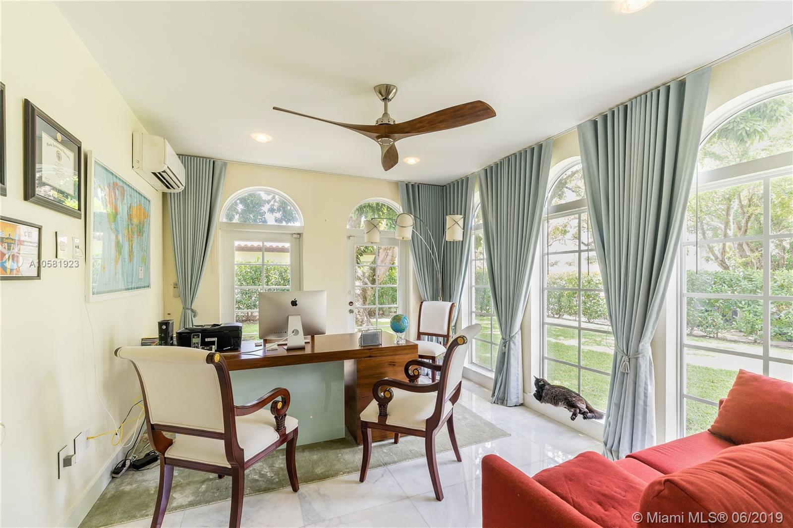 Authentic 1925 Old Spanish! 10,000 SF Lot! All major updates; roof, impact windows & doors, new kitchen & 5 new baths, lrg Familyroom with recessed ceilings, 2 new AC systems; all done without losing the charm of yesteryear! This 3Bdrm/4Ba+ Den/office + 1/1cottage. Living room is accented by a beautiful Fireplace! The new Kitchen has quartz countertops, top of line Stainless Steel appliances, hood & fan, double ovens, refrigerator, dishwasher & an under-mounted sink that will please the gourmet cook! The ample Master addition is accented by French Doors, marble floors, has great privacy, large marble Bath with bidet & large shower. The Den/Office has arched windows & beautiful views overlooking the lawn. Split floor plan that will please most Buyers!