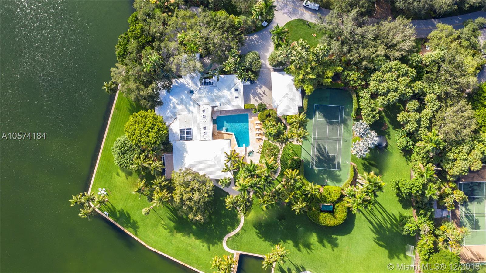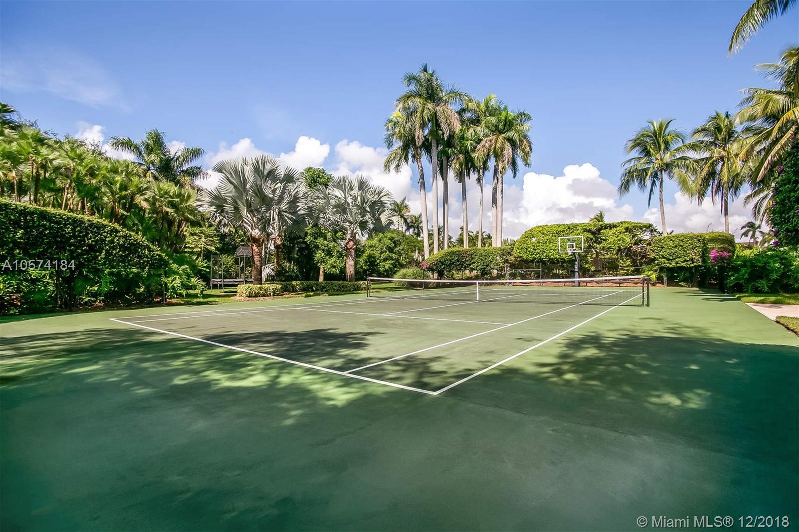 A once in a lifetime opportunity to purchase one of the largest parcels of land situated within the secure gates of Gables Estates. The property is over 3 acres with 750 feet of water frontage on a wide water basin with endless unobstructed views leading to the bay. This magnificent residence offers limitless areas for entertaining with infinite water views, lush gardens, a pool, grandfathered in tennis court and private beach. Room for up to 150’ yacht.