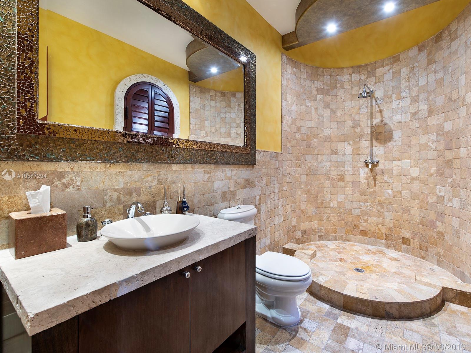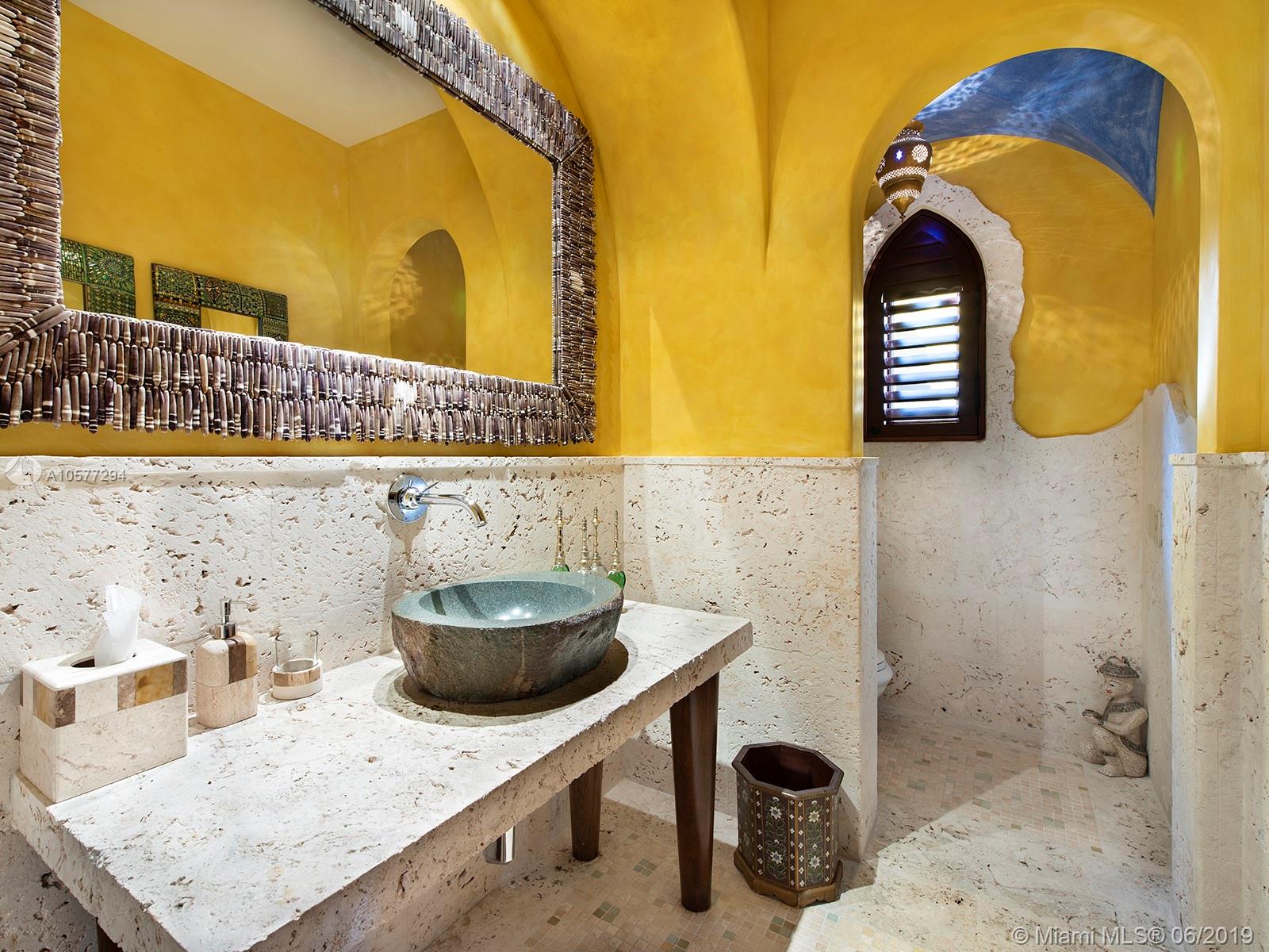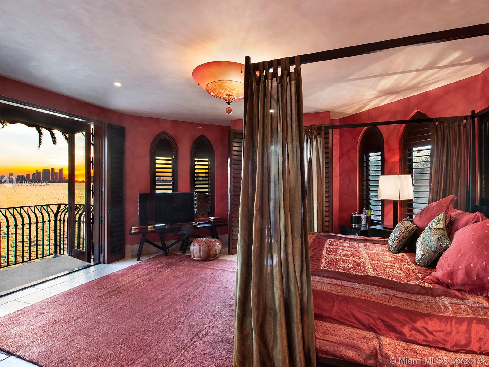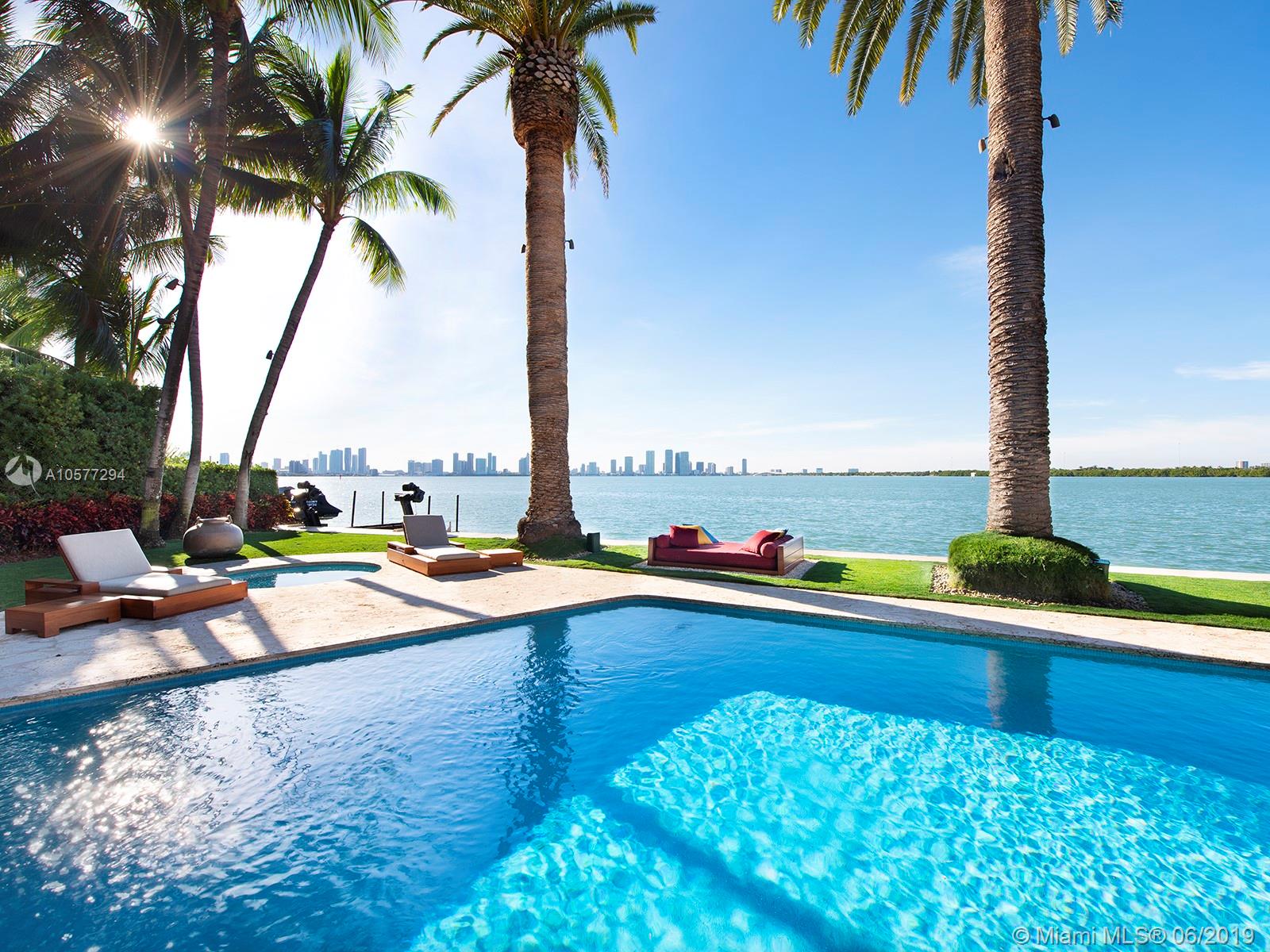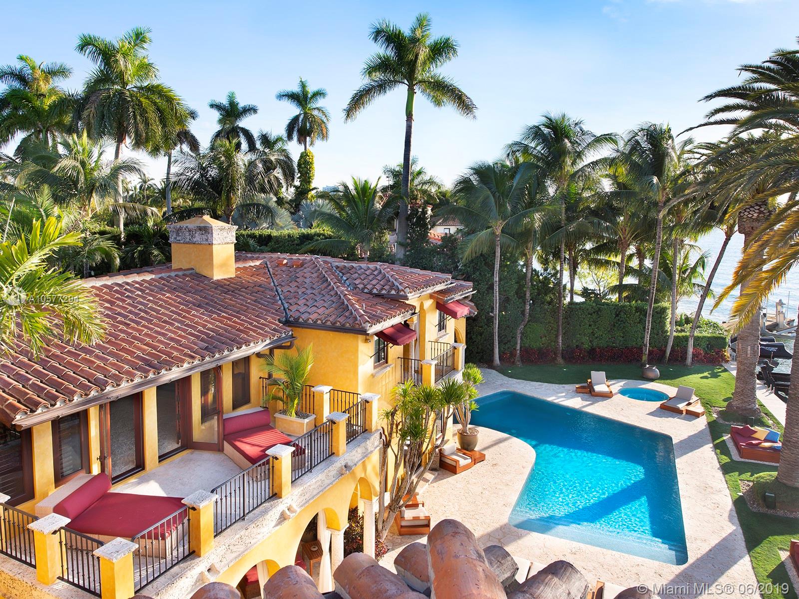 Enrique Iglesias former home Villa Jasmine, sits on the SW tip of prestigious gated community Sunset Island 1. Exotic waterfront estate offers direct Miami skyline & Biscayne Bay views. Impressive granite driveway lined by majestic Royal Palms, leading to a luxurious 7,622 SF home. Main house has an interior courtyard & fountain, soaring arched windows which provides indoor/outdoor Florida lifestyle. Spacious living areas, formal dining, large chef’s kitchen and unique onyx wet bar. Guesthouse w/ rooftop/Jacuzzi and 150’ screen cinema. Large backyard w/ pool, gazebo & summer kitchen. 22,093 SF Lot w/ dock, w/ 150 ft of prime water-frontage, 22,000 lb boatlift & 3-car garage. A true luxury estate designed to enjoy the dramatic sunsets and views of the ever-growing dazzling Miami skyline.