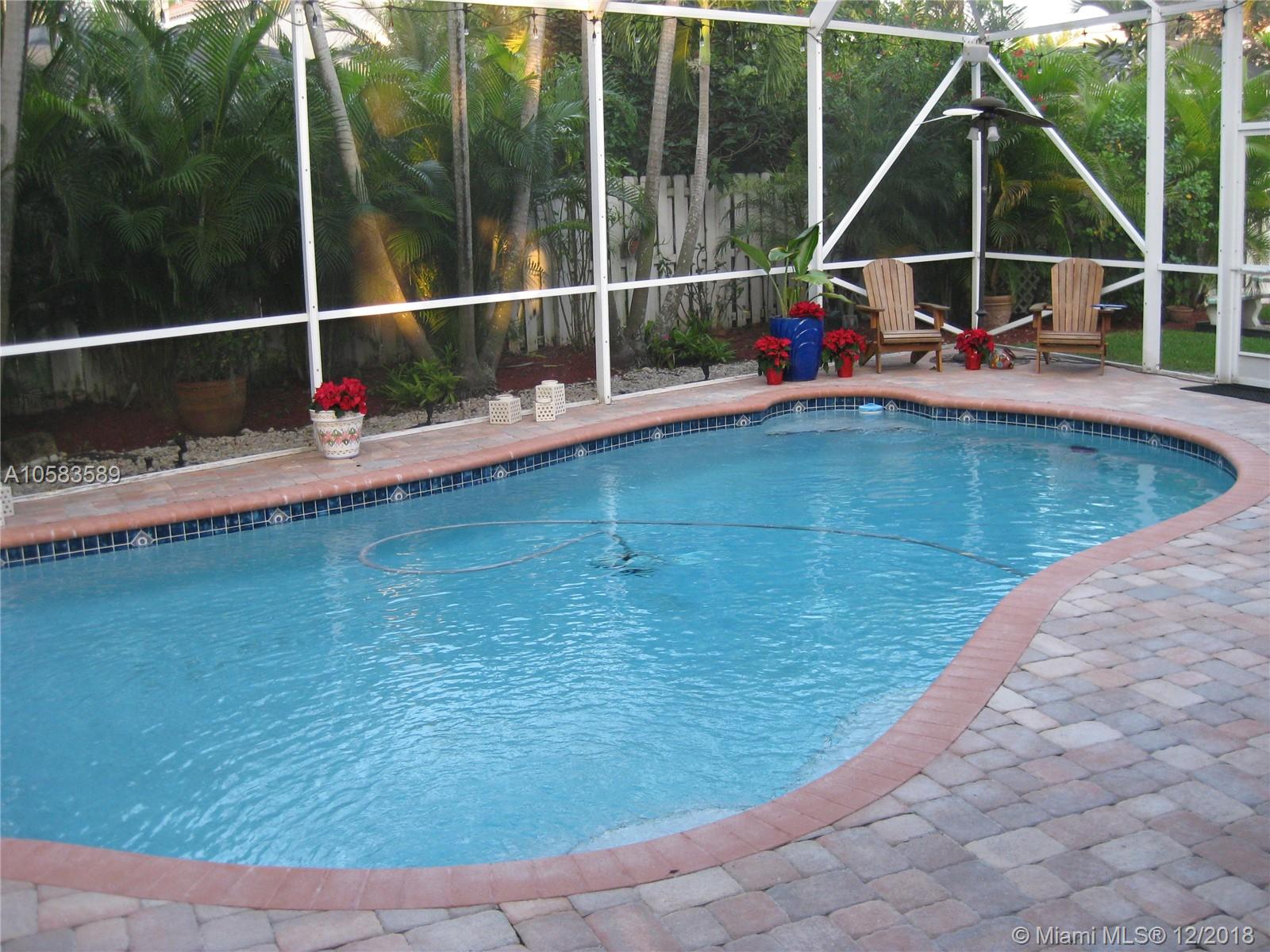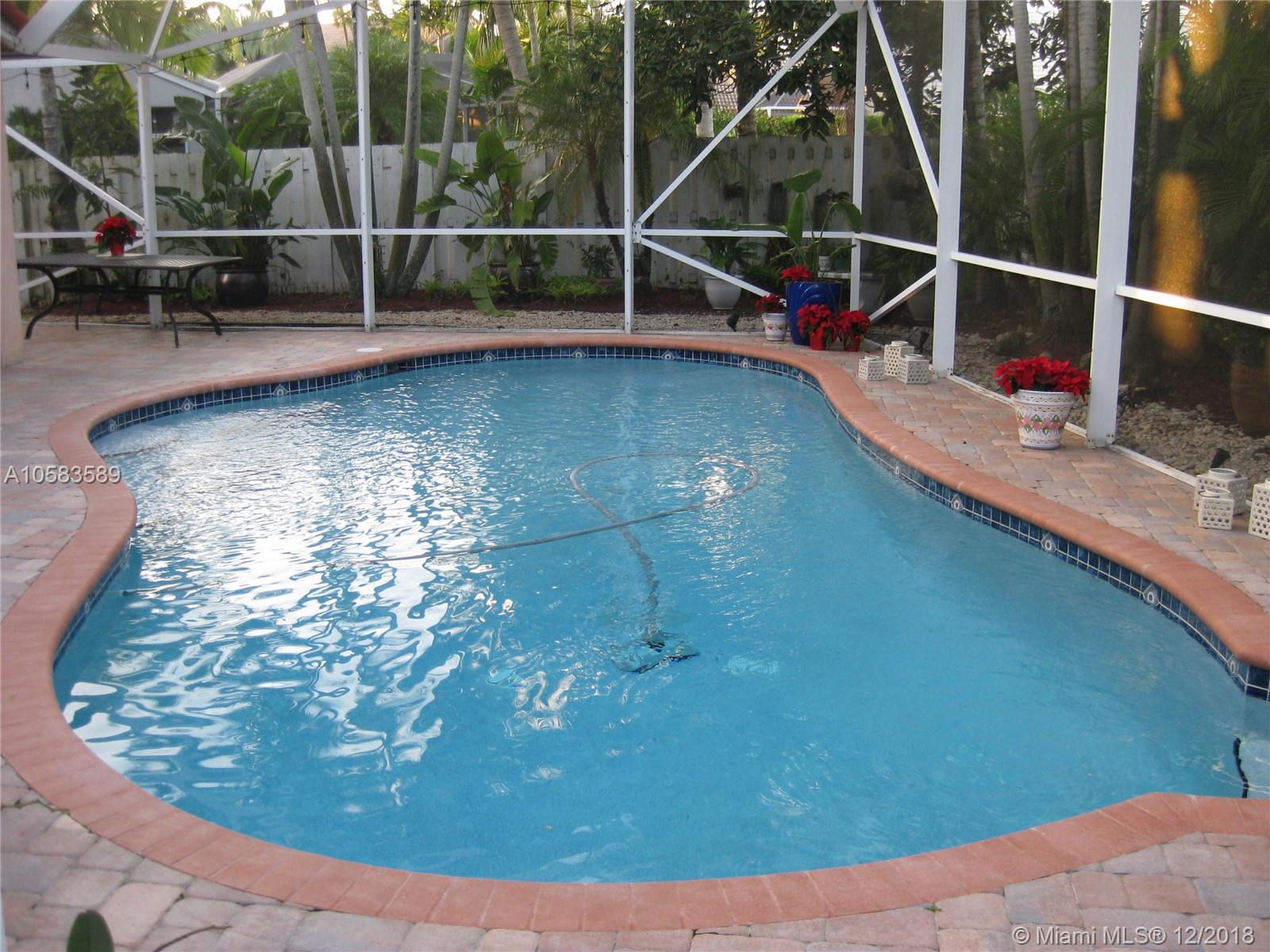 Ready to move in! Beautiful 4 bed/2.5 bath home with a heated pool located on a private cul-de-sac in the guard gated community of the Falls in Weston Recently remodeled kitchen, bathrooms, and floors. Hand finished cherry and maple cabinets, granite and marble countertops, 24x24 porcelain tiles, frameless shower doors, new high-end GE Café appliances, LED high-hat lighting throughout. Heated pool with large screened in patio, great for entertaining! Built in closets, custom window coverings, garage storage, and a large fenced in back yard. A+ public schools and community park within walking distance! A great place to raise a family!