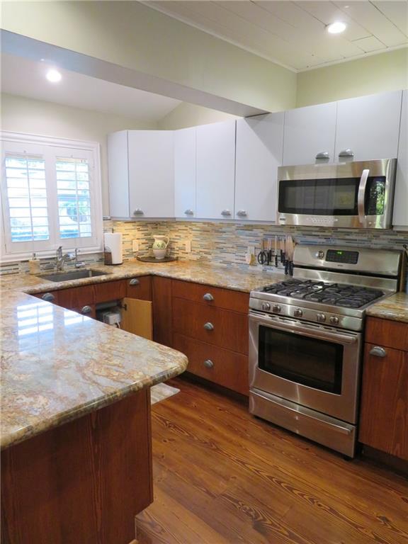 Completely furnished 2 bed-2bath home. Remodeled kitchen,beautiful granite&decorative backsplash,S/S appliances,gas stove for the gourmet cook. Living/dining area with warm Dade County pine paneling,built-in bookcase/desk/storage. Sizable Master Suite,light&bright,French door to back deck&HotTub.MasterBath has onyx sink& custom seaglass mural above jacuzzi tub. 2nd bedroom has Murphy beds.Ample closets&storage.Relax on backdeck where you will enjoy a mosquito free environment, retractable awning and private hottub.Generator will run fridge,lights and one A/C. Backyard has with room for resort size pool and cement pad,perfect for storing cars,RV's or boats.Mature mango tree provides an abundance of fruit. This home is convenient to beach,highways,airport,shopping, casino.Quiet neighborhood.