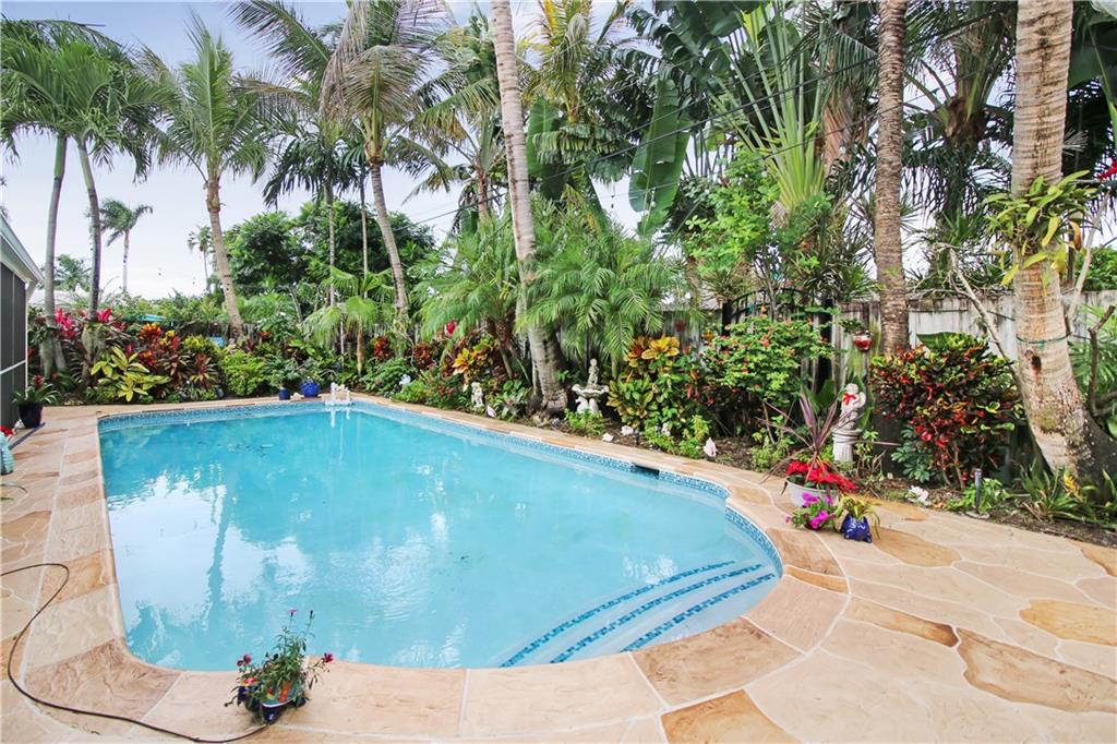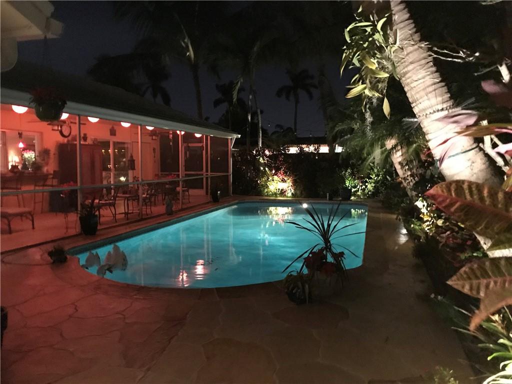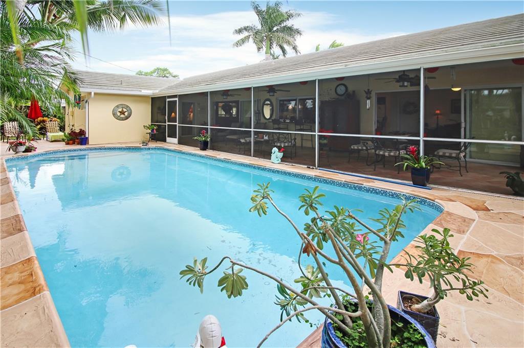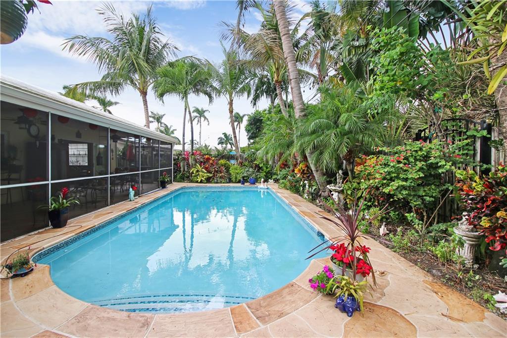 Your tropical slice of paradise has been found in the desirable and prestigious Coral Ridge Isles! (No HOA). Expansive screened in lanai stretches across the whole home and features stackable sliding doors allowing for the maximum exposure to your outdoor oasis. Oversized swimming pool recently resurfaced, glass tile accents, new pump installed and deck area redone. Beautiful landscaping and garden area completely surround this home. This 3 bedroom home has real wood Brazilian cherry in the bedrooms. Remodeled kitchen with dark cabinetry and beautiful granite. Comfortable family room located off of the kitchen as well as a formal dining and living room. Impact windows and sliders thru out the home. True 2 car garage.Driveway has pavers giving that instant curb appeal!Come and fall in love!