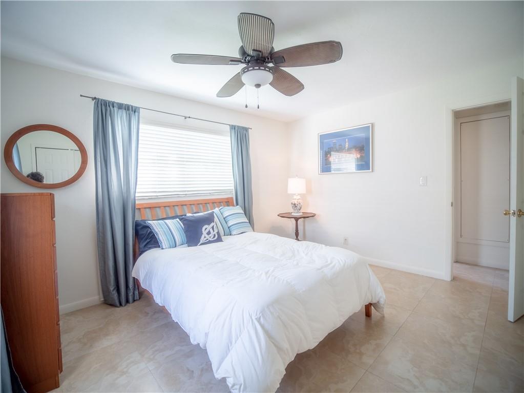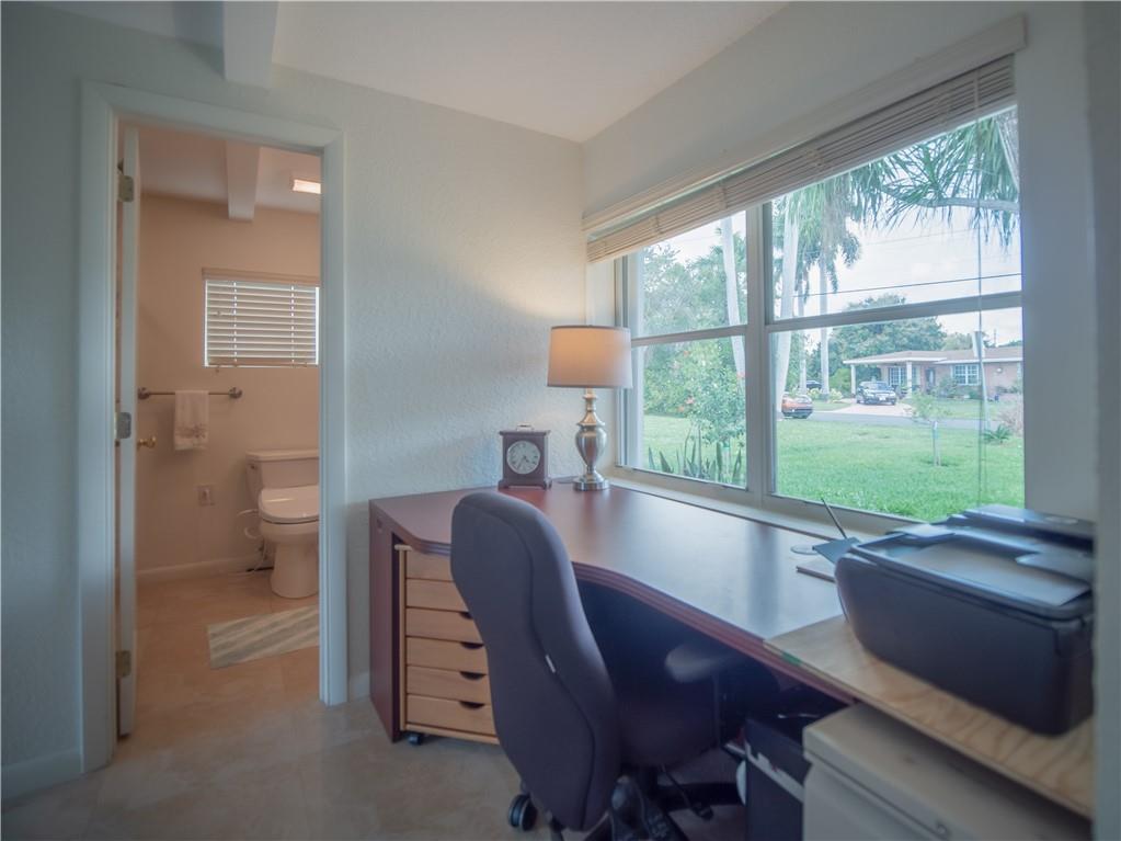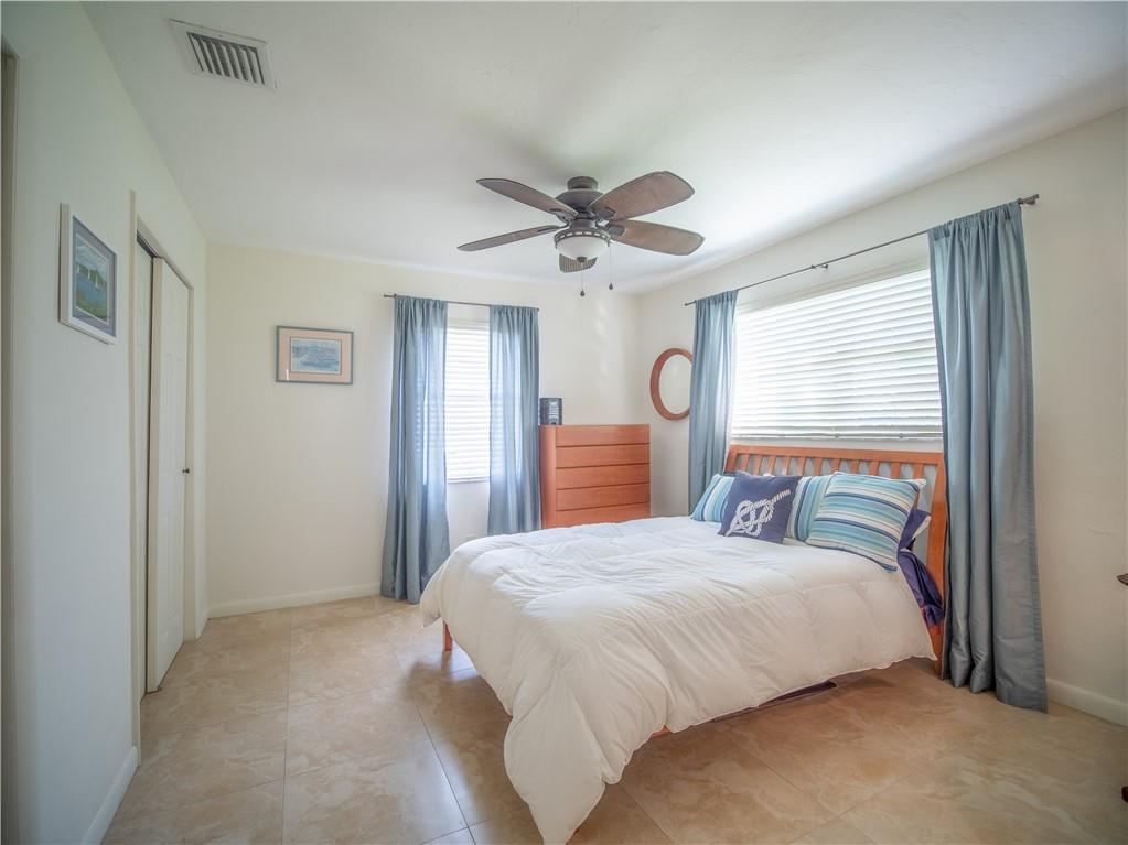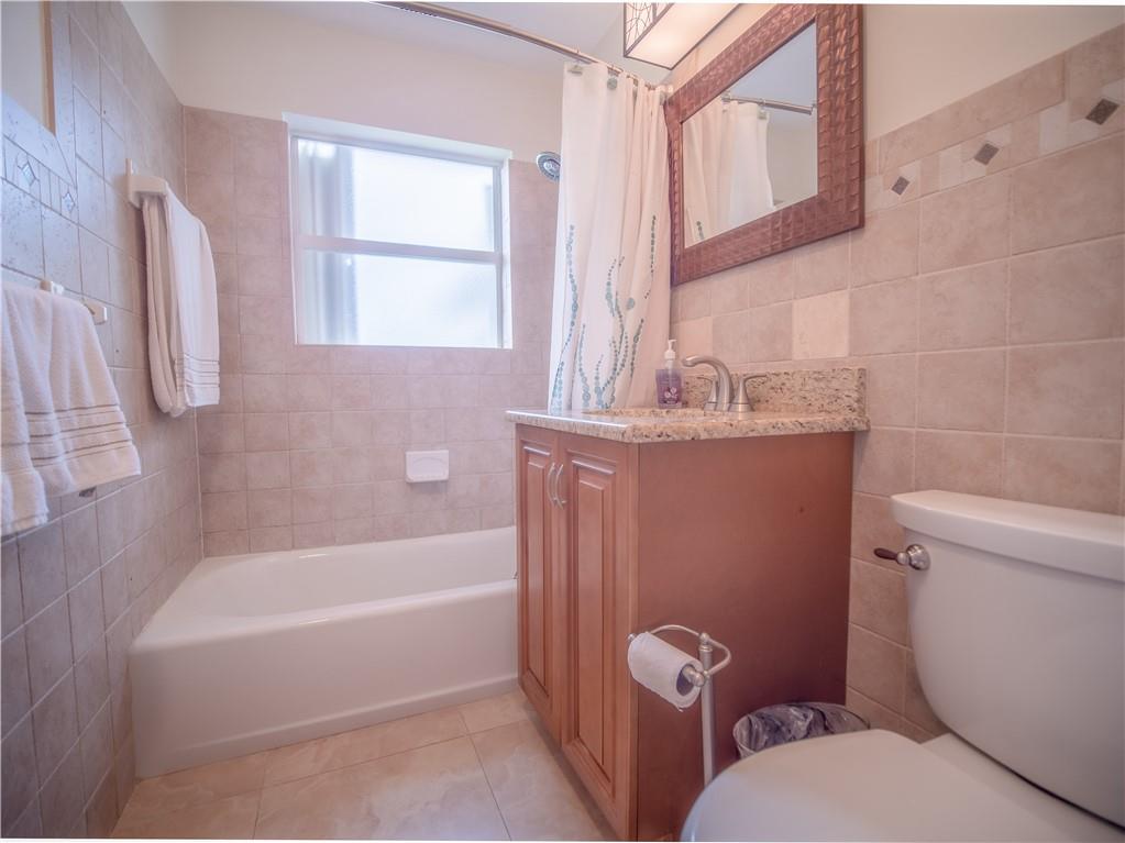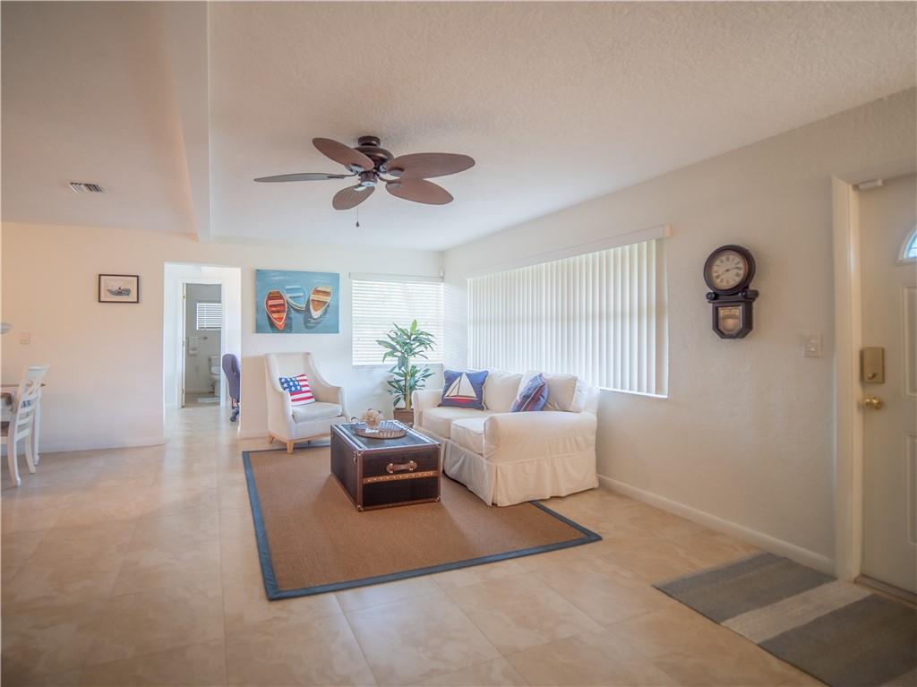 Updated, East of Federal home that's in move-in condition. 20" tile throughout. Stainless steel appliances, granite counters, and top quality cabinetry. Gas hot water heater and range. Security system, hurricane shutters, and non potable water system for your four zone sprinkler system. Full sized stacked washer & dryer. Large outside storage shed. Don't miss showing this well maintained property. One bedroom being used as an office. No HOA. 1 mile to the Beach & close to shops and restaurants.