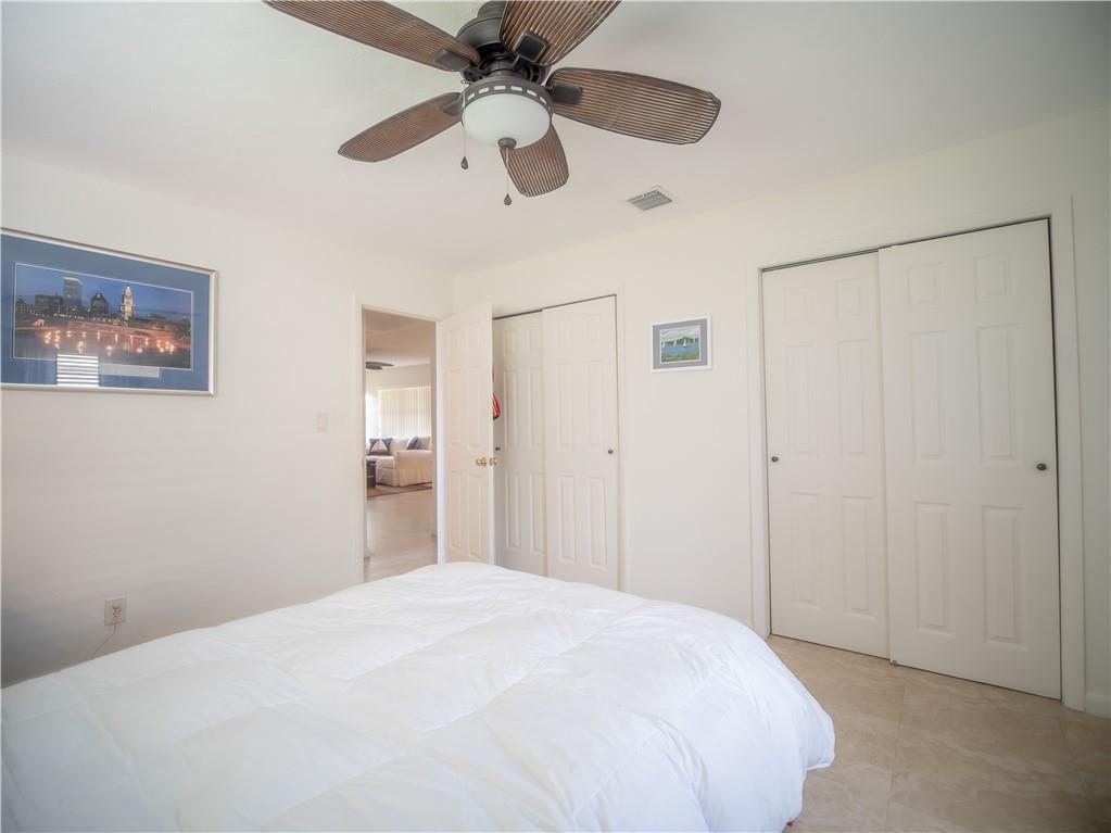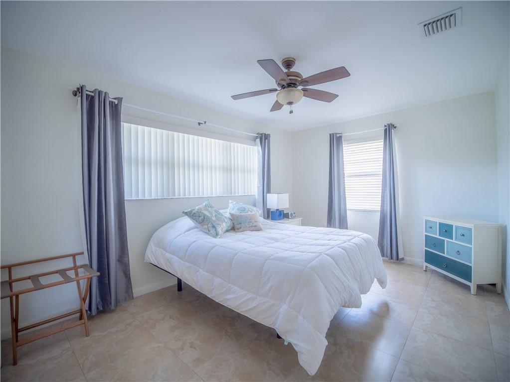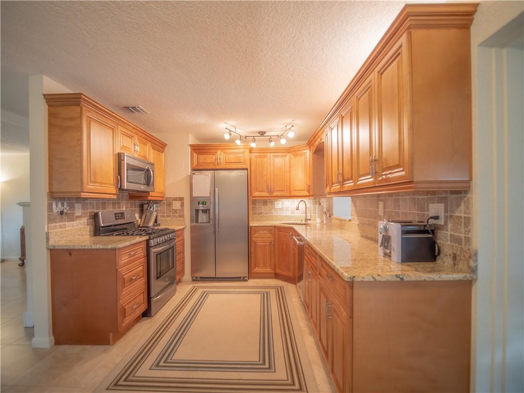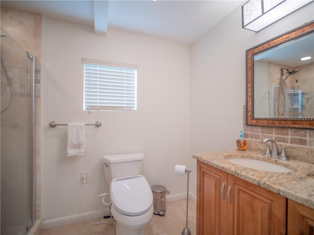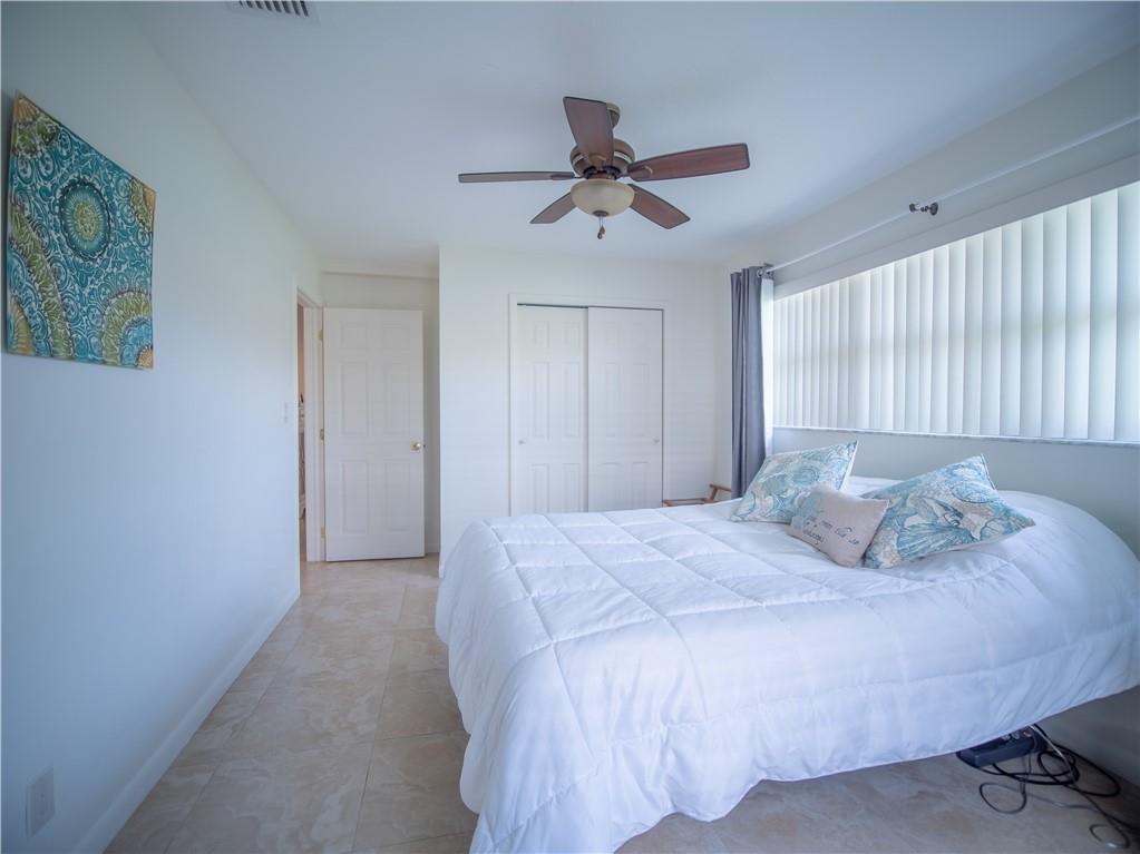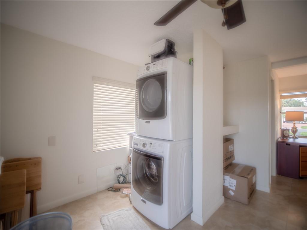Updated, East of Federal home that's in move-in condition. 20" tile throughout. Stainless steel appliances, granite counters, and top quality cabinetry. Gas hot water heater and range. Security system, hurricane shutters, and non potable water system for your four zone sprinkler system. Full sized stacked washer & dryer. Large outside storage shed. Don't miss showing this well maintained property. One bedroom being used as an office. No HOA. 1 mile to the Beach & close to shops and restaurants.