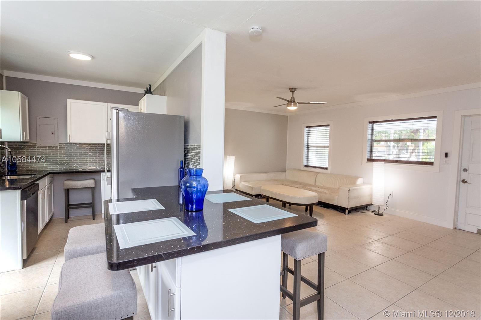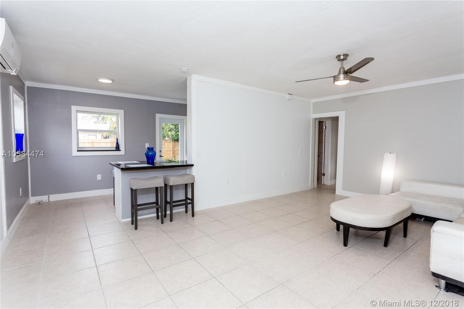 Beautiful 2/1 home totally renovated and updated kitchen with brand new stainless steel appliances, backsplash, breakfast bar, new washer & dryer, 2 mini split AC units, new bathroom, ceiling fans, carport with extra parking, screened in porch, large fenced backyard, new lighting. Close to I-95 and walk to Starbucks. Extra large living room can be converted to a 3/1 as shown on tax roll.