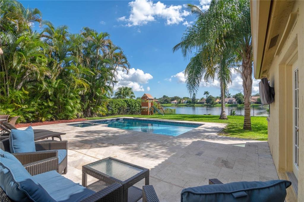 MAJESTIC LAKE AND POOL VIEWS GREET YOU FROM EVERY ROOM OF THIS MAGNIFICENT PROPERTY IN HIGHLY SOUGHT AFTER FOREST RIDGE* THIS LARGE 3400+ SQUARE FOOT HOME IS ON A DOUBLE SIZED LOT, 4 BEDROOMS AND 3.5 BATHS PLUS A LARGE LOFT THAT CAN EASILY BE CONVERTED TO A 5TH BEDROOM*THIS HOME IS MOVE IN READY PERFECTION! TRAVERTINE MARBLE FLOORS IN LIVING ROOM* COMPETELY UPDATED THRUOUT INCLUDING A 20K MASTER BATHROOM REMODEL* NEW ROOF* ALMOST NEW WATER HEATER, REFRIGERATOR, MICROWAVE, DISHWASHER * THE BACKYARD IS OUTRAGEOUS!! THIS OASIS INCLUDES NEW TRAVERTINE PATIO* HEATED SALT WATER POOL AND SPA WITH PREMIUM POOL EQUIPMENT BUILT IN 2016 ( ALL CONTROLLED BY YOUR MOBILE PHONE!!) A KIDDIE HOUSE* OUTSIDE TV* LANDSCAPE LIGHTING*HURRICANE GLASS/SHUTTERS AND GARAGE DOOR* AND OF COURSE THE A+ RATED SCHOOLS!!