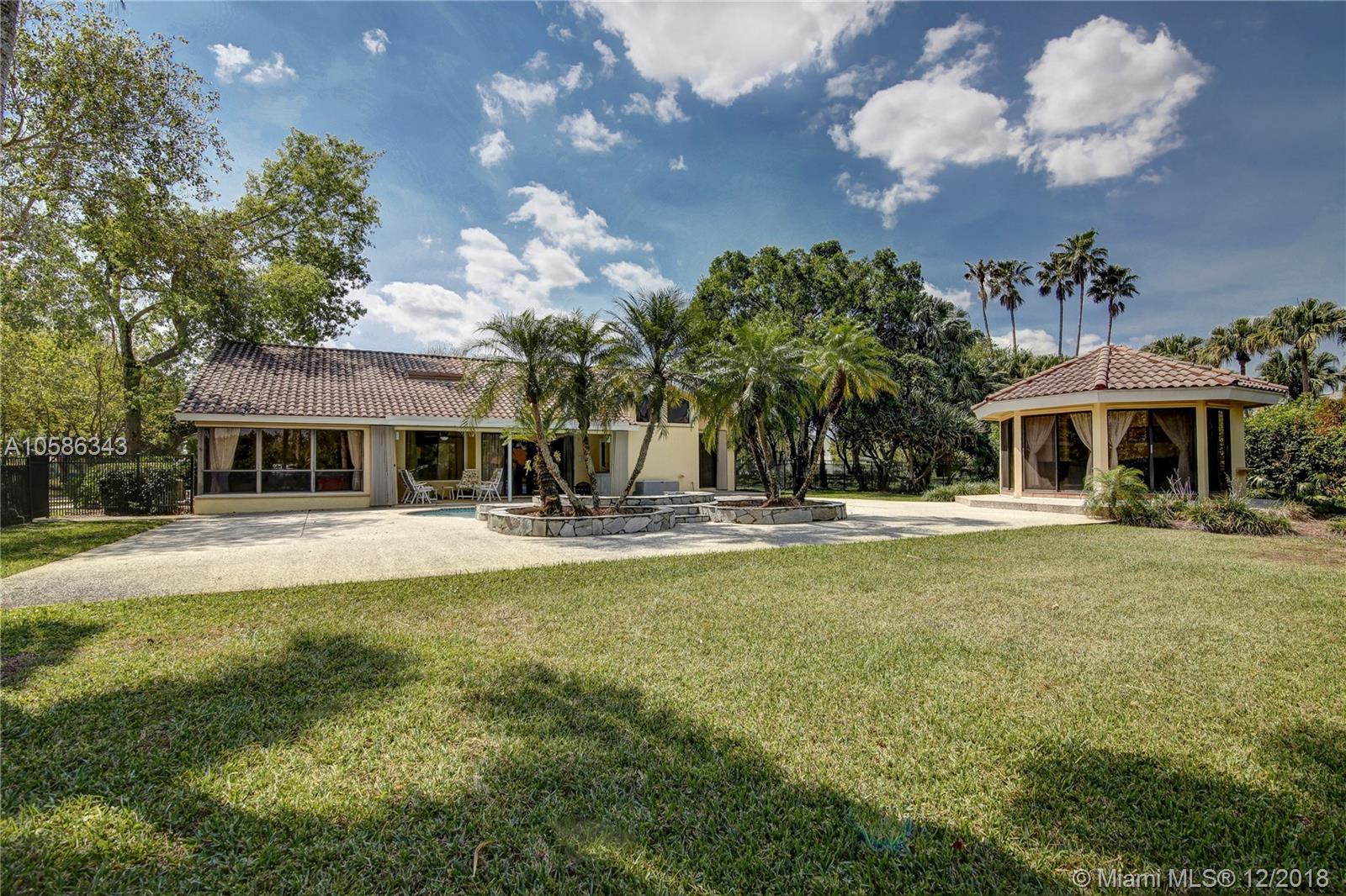 Don't miss out on this opportunity!!! Lowest priced home in the prestigious gated community of Windmill Ranch Estates! Charming 5 bedroom, 2 1/2 bath home PLUS separate 1 bedroom, 1 bath guest suite placed on 1.59 acre corner, lakefront lot. Many features include: Beautiful kitchen with stainless steel appliances, light & bright breakfast area, family room with wet bar, vaulted ceilings, master bedroom with his & hers closets, master bath with dual sinks and separate tub & shower. Enjoy the relaxing views of the water from the covered patio, pool & spa - all with great room for entertaining! Fantastic land value!!!