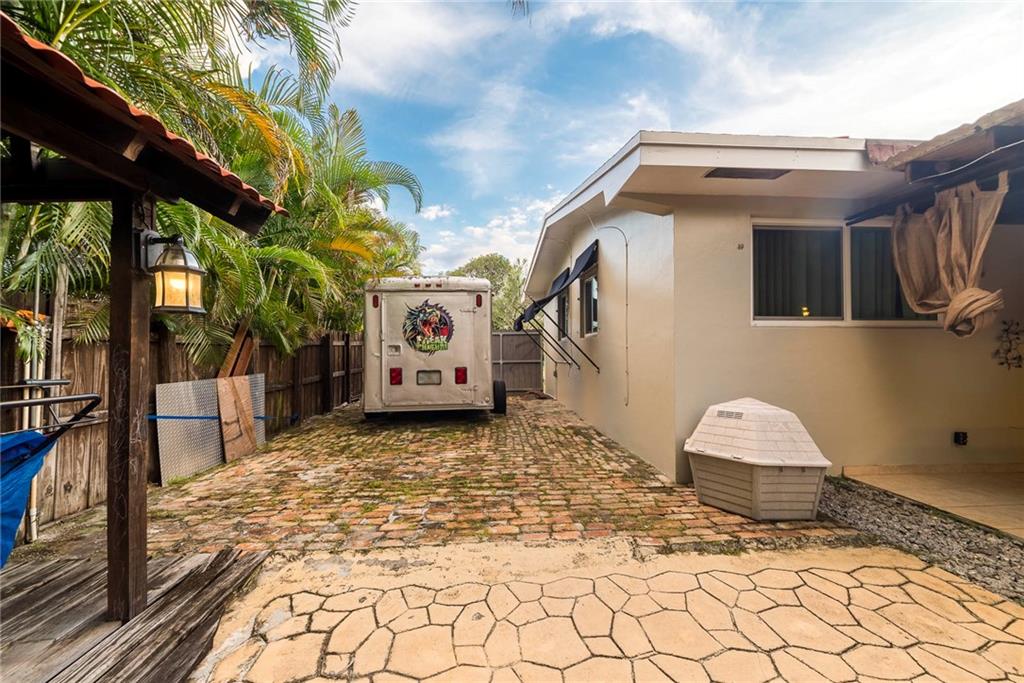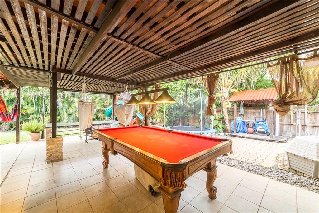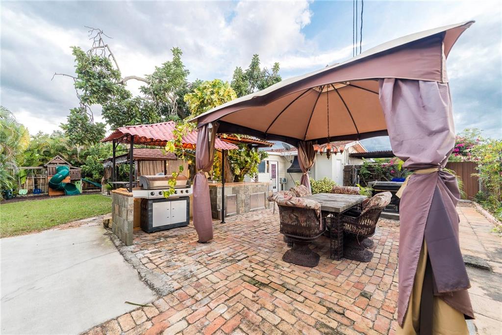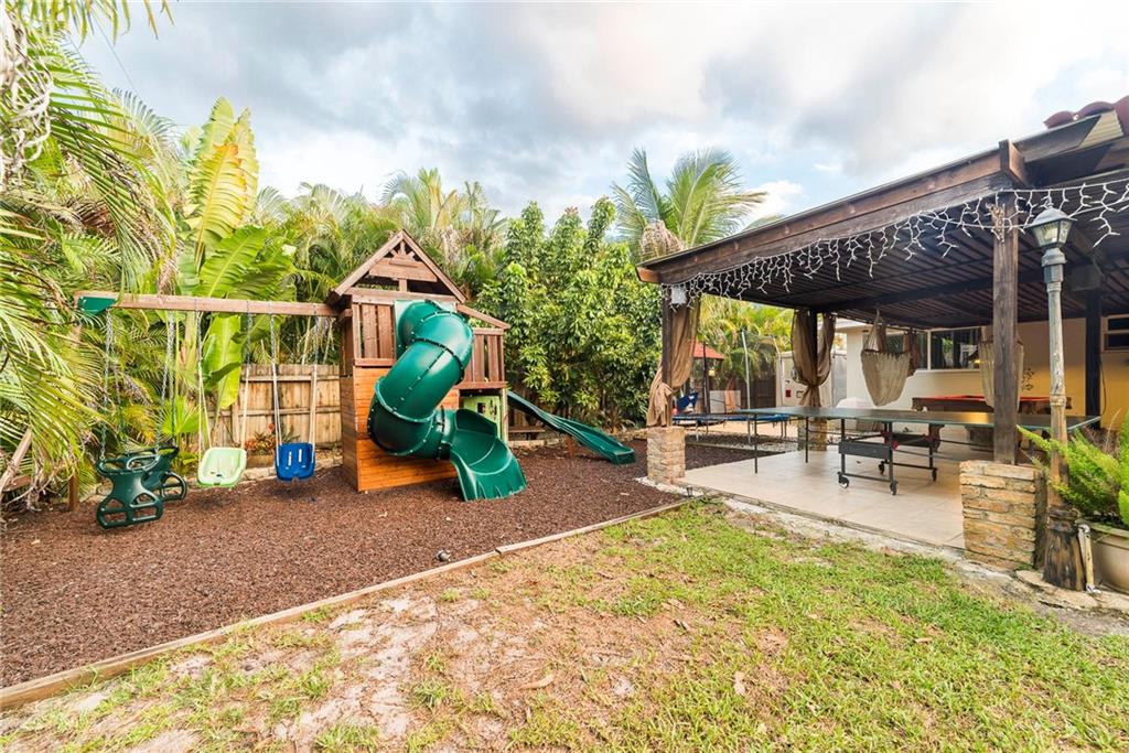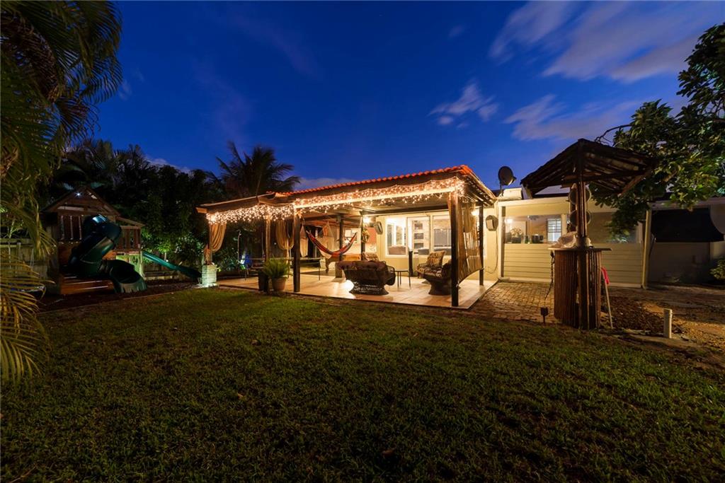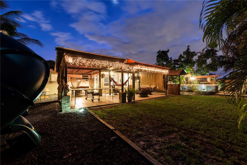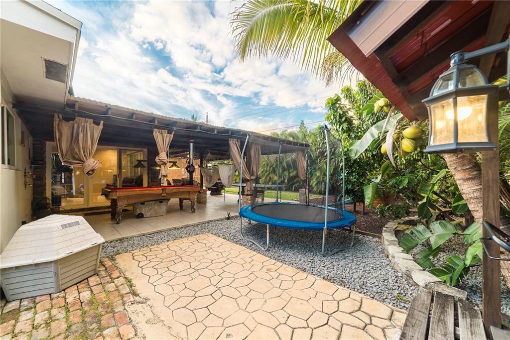 Great move in ready home! This home is full of updates and features. 3 bedroom 2 bath with a bonus room. Kitchen and bathrooms updated. Tile throughout, blue tooth surround sound throughout the home, security system, Rain Soft water filtration system, hurricane impact windows, and newer roof. If you love to entertain this backyard is your spot. Outdoor kitchen with running water, lighting throughout, outdoor retractable movie screen and outdoor surround sound. Backyard surrounded with fruit trees, coconut trees and complete irrigation system. You've got to see it to believe it!
