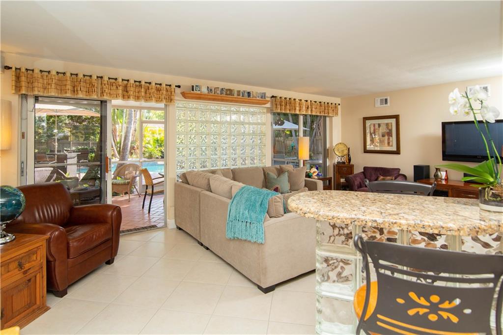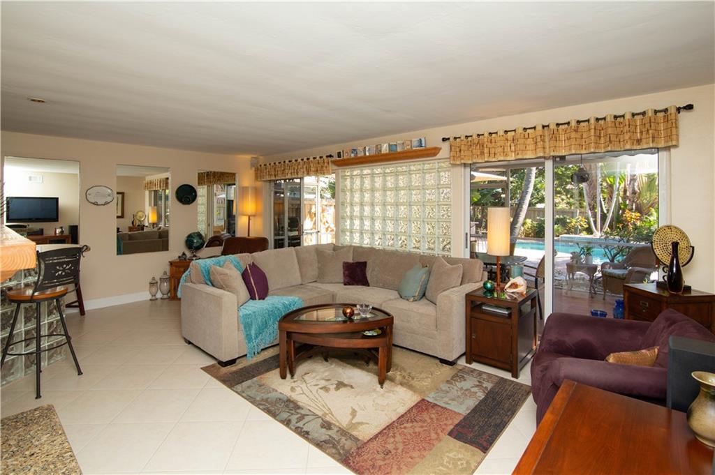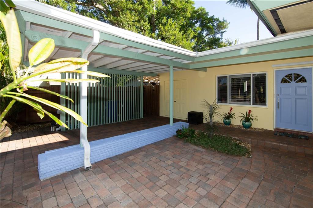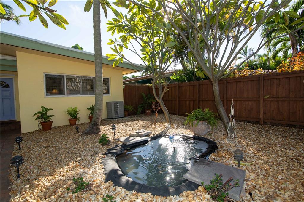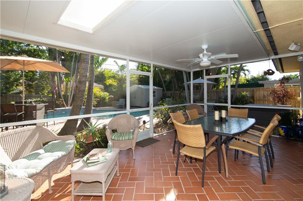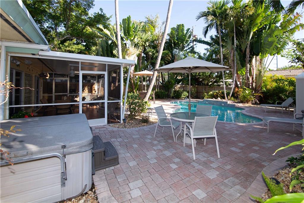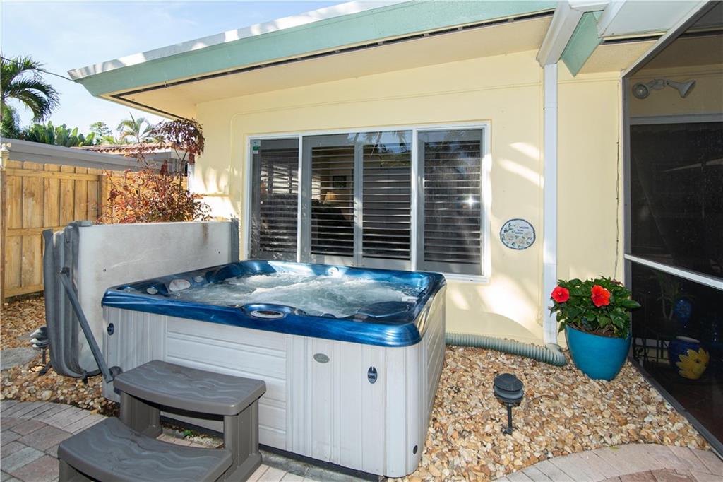 You will fall in love with this well appointed home! Property features: granite counter-tops in kitchen, solid wood cabinets, stainless steel appliances, breakfast bar, electric/gas stove with double ovens, porcelain tile floors, and kitchen window. Great room has abundant natural light, wood burning fireplace with custom tile-work and mantle with views to the lush garden area and pool. Entertain in the wonderful backyard living space with an 11 X 20 screened in patio with skylights, ceiling fan and surround sound. Garden area also has a sink and shower, jacuzzi tub, and heated salt water pool! Just a short distance from shopping, restaurants, night-life, and the beaches. And lastly, the roof is being replaced on the home for the new buyer.